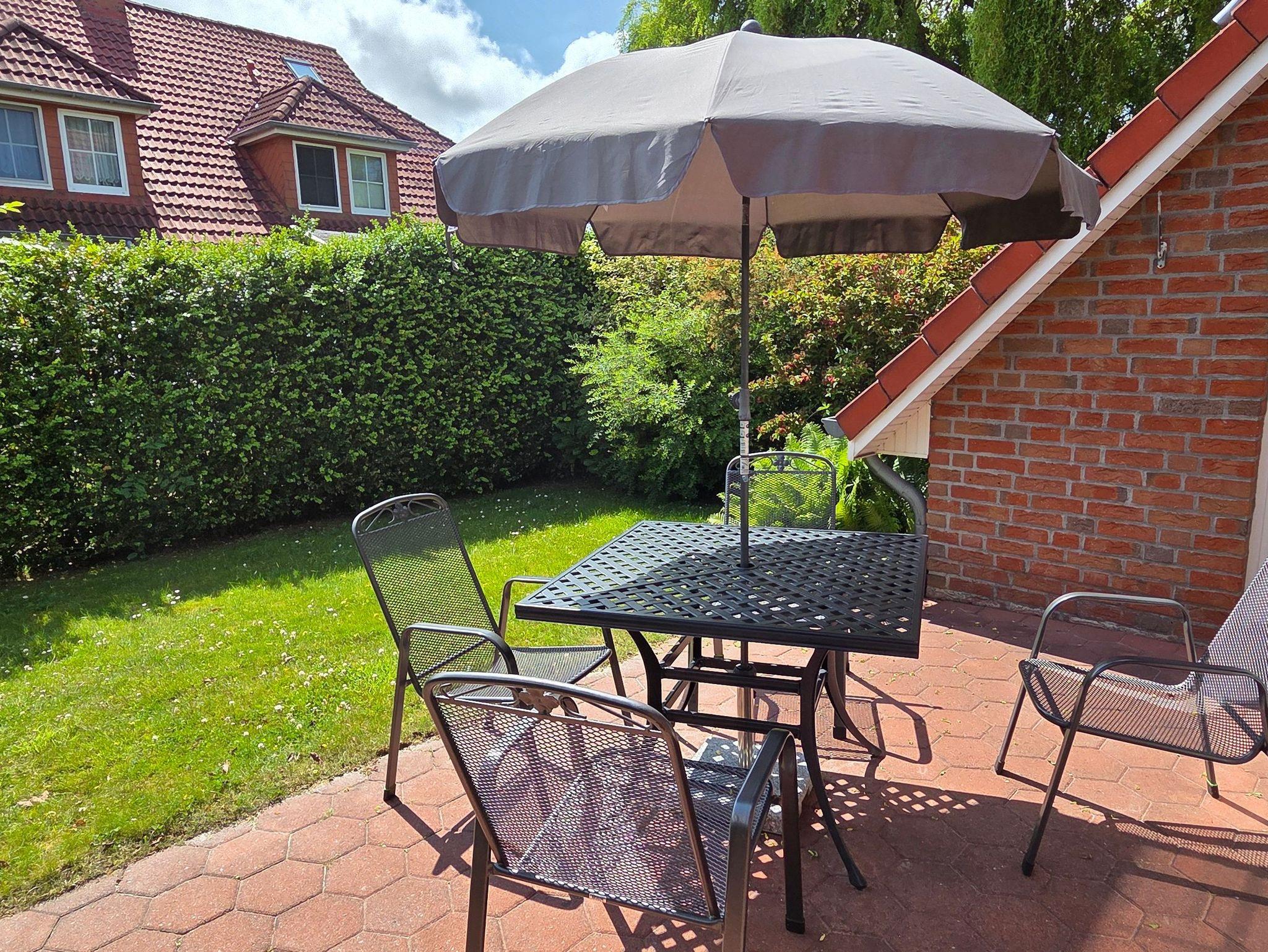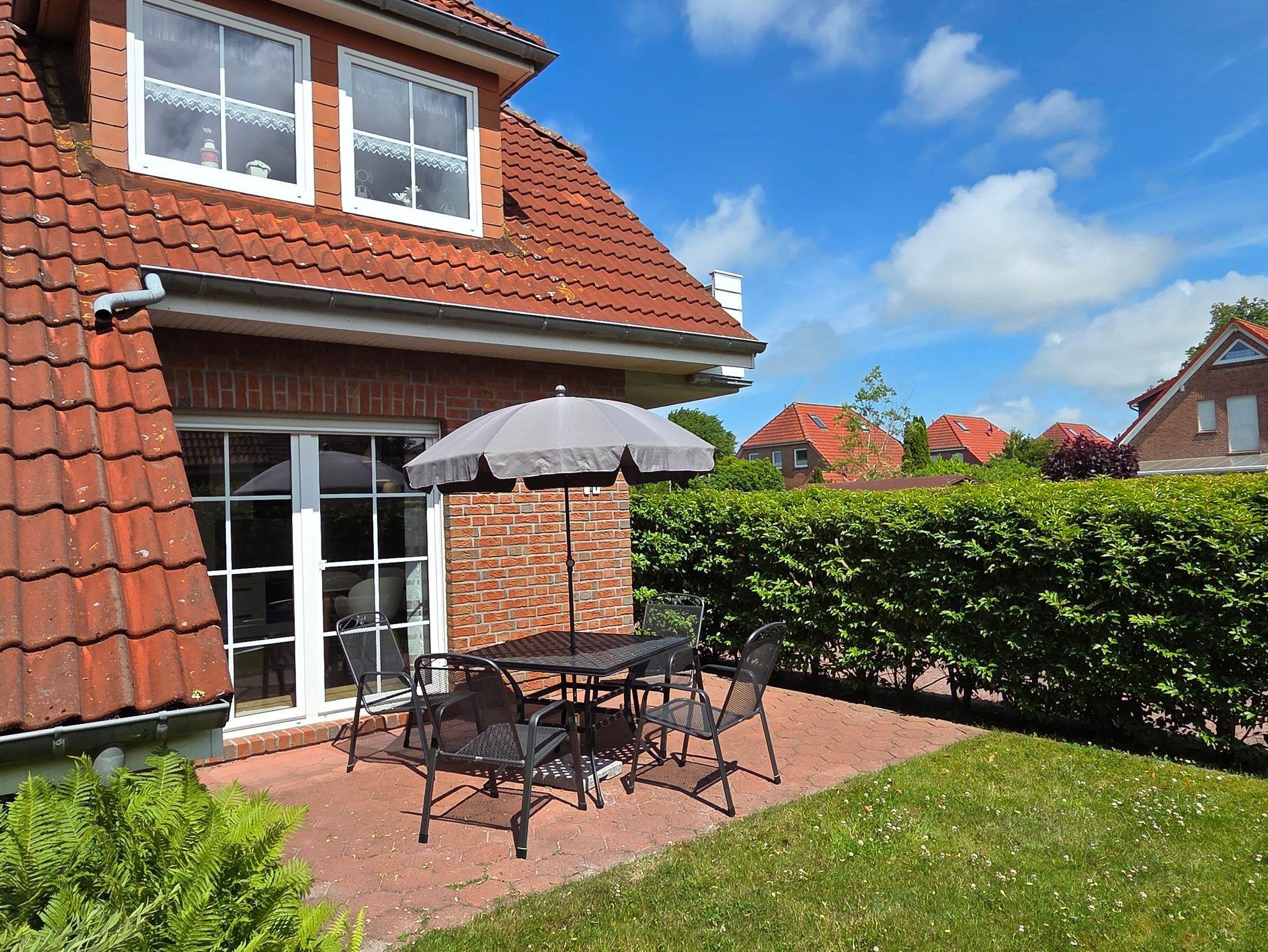Moderne Erdgeschosswohnung mit Terrasse und Garten im ruhigen Zentrum von Carolinensiel, ideal für Erholung und Aktivurlaub.