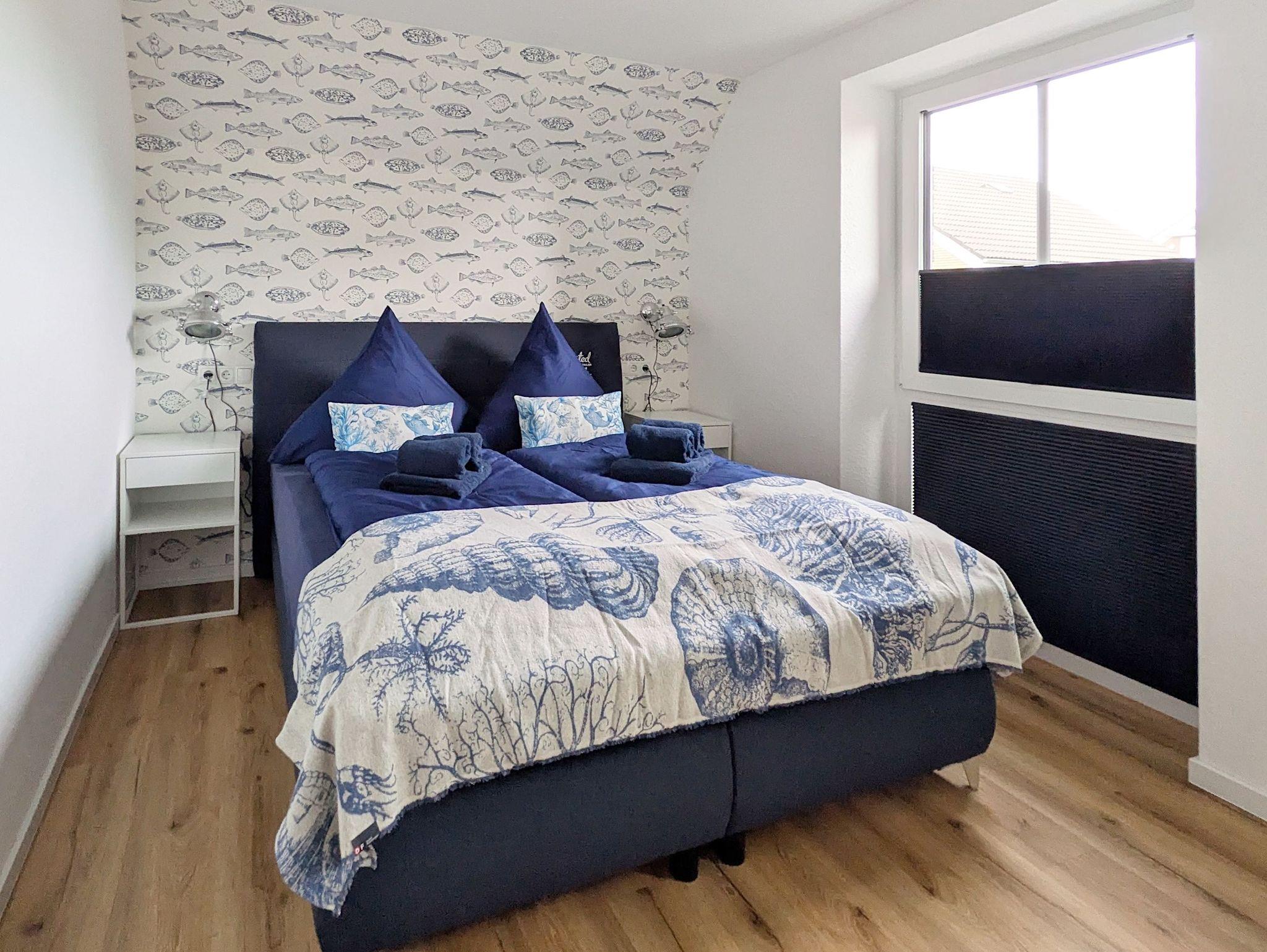 Das großzügige Ferienhaus Albertshus bietet auf drei Ebenen Platz für bis zu 8 Personen und vereint gehobenen Komfort mit Wohlfühlatmosphäre. Vier Schlafzimmer mit Smart-TV und Verdunkelungsmöglichkeit ? drei davon mit hochwertigen Boxspringbetten, eines mit Etagenbett mit extrabreiter Liegefläche unten (120cm) ? sorgen für erholsamen Schlaf. Das Erdgeschoss-Schlafzimmer mit barrierearmem Duschbad gegenüber ist besonders für Gäste mit eingeschränkter Mobilität geeignet. Ein weiteres Duschbad befindet sich im Obergeschoss.
