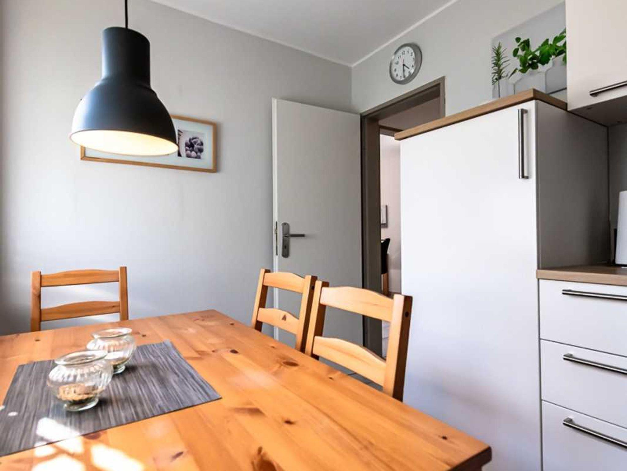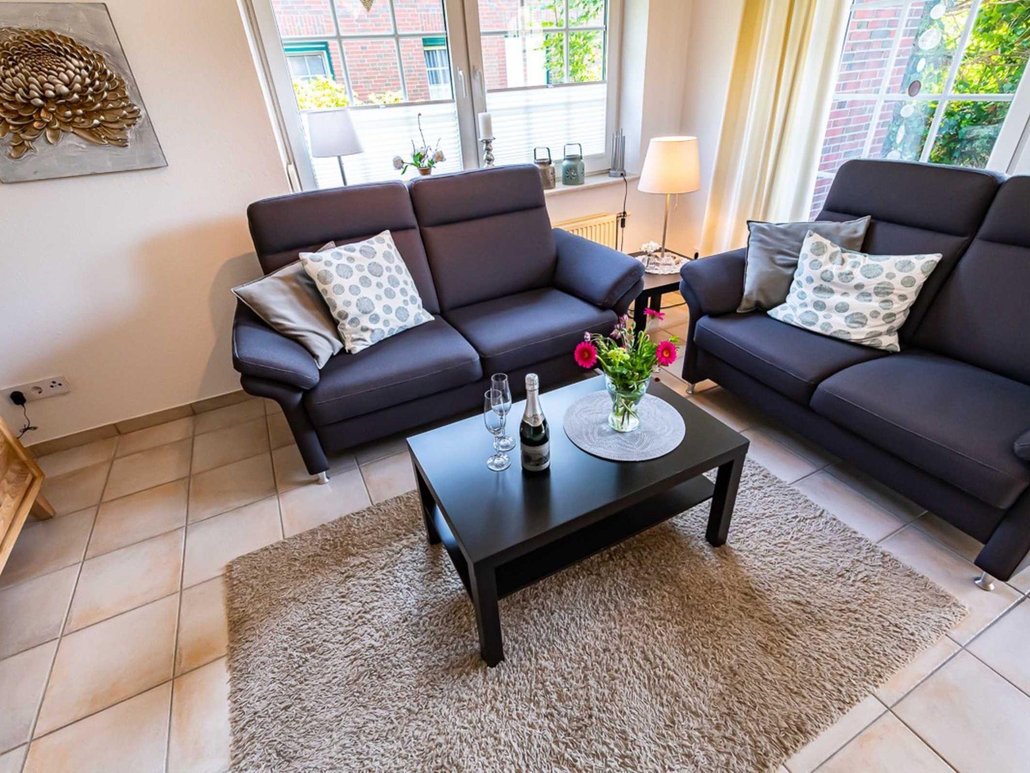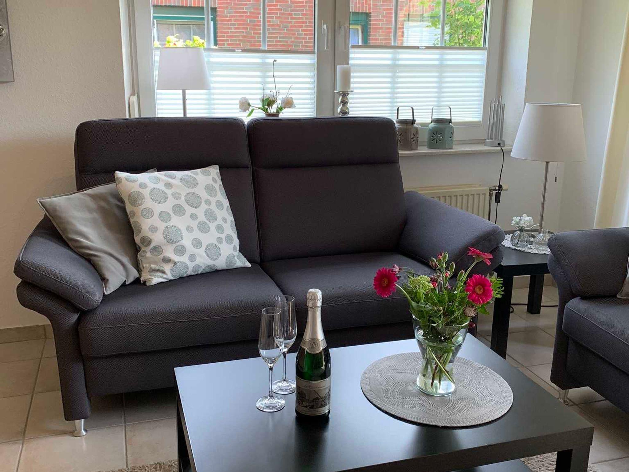 Die helle EG-Wohnung (60qm) mit WLAN bietet bequem Platz für 2-4 Personen und lädt zum Nordseeurlaub ein. Durch das Wohnzimmer mit Essplatz gelangen Sie auf unsere Terrasse und den Garten. (Gartenmöbel und -liegen vorhanden). Die separate Küche verfügt über Spülmaschine, Kaffee- und Senseopadmaschine, Kühlschrank mit Gefrierfach, Herd mit Backofen, Wasserkocher, Toaster etc.. Ein Schlafzimmer ist ausgestattet mit einem Doppelbett (1,80 x 2,00 Meter, 2 Matratzen)das andere Schlafzimmer ist ausgestattet mit einem Etagenbett. Das Bad verfügt über Dusche und WC. (Haartrockner vorhanden)
