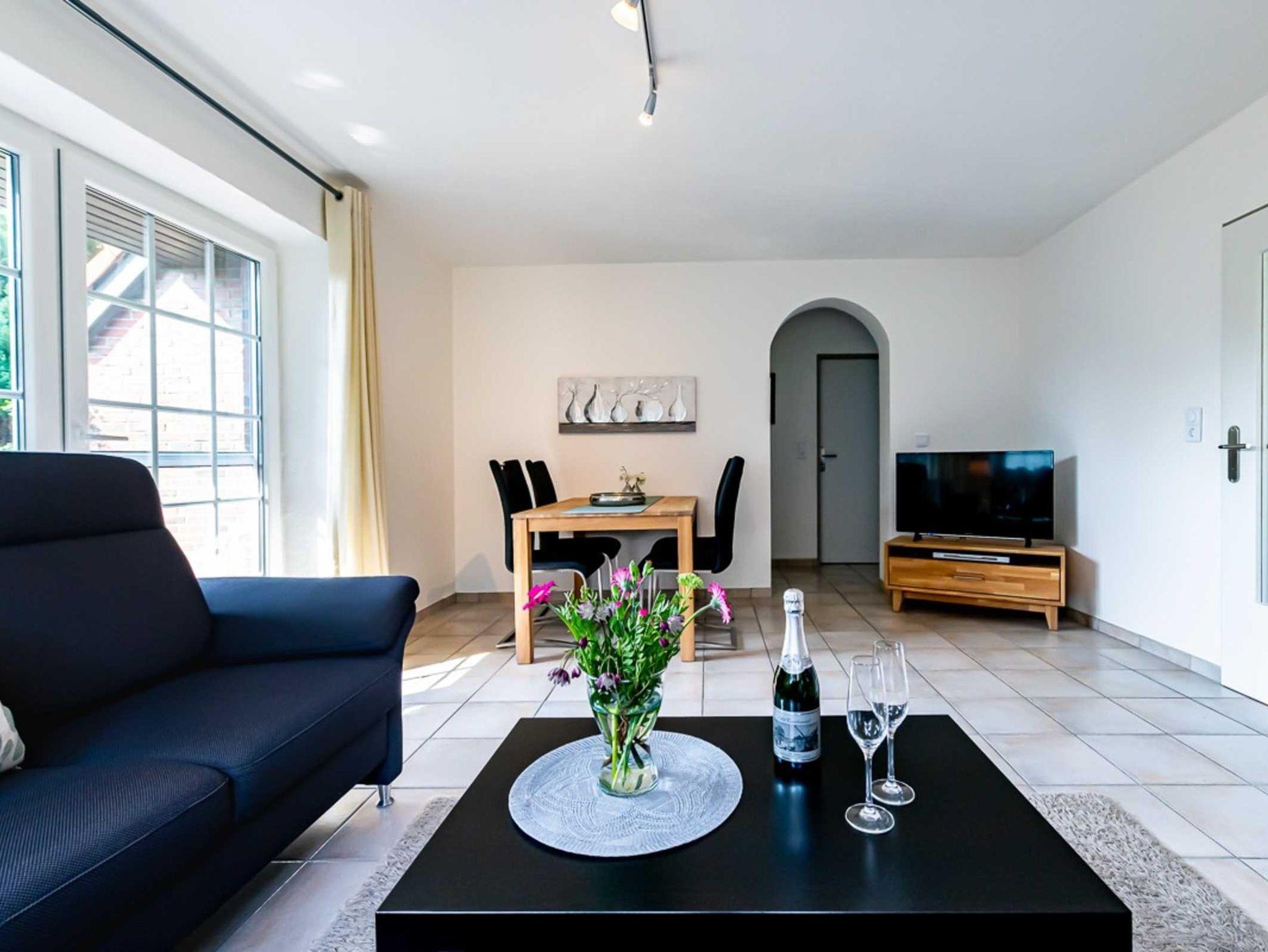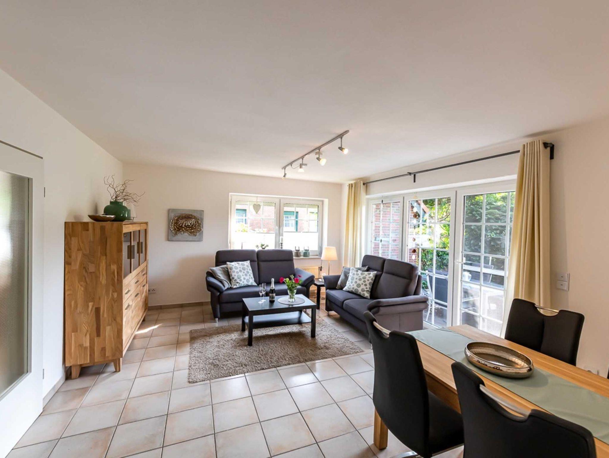 Helle Erdgeschosswohnung mit WLAN, Terrasse und Garten in Carolinensiel-Harlesiel, ideal für Nordseeurlaub.