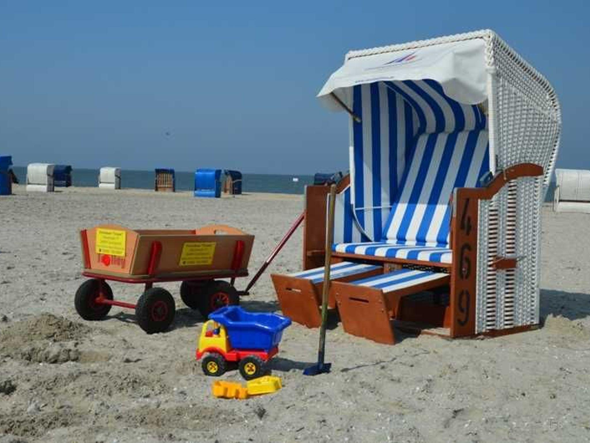 Das Ferienhaus verfügt über eine kinderfreundliche Ausstattung wie Hochstuhl, Kinderbett, Kinderbücher, Treppenschutzgitter, Bollerwagen mit Sandspielzeug.