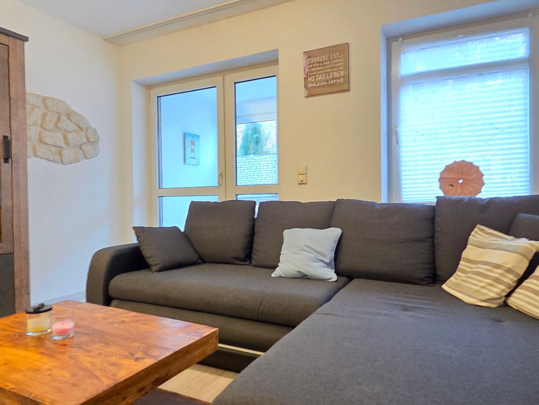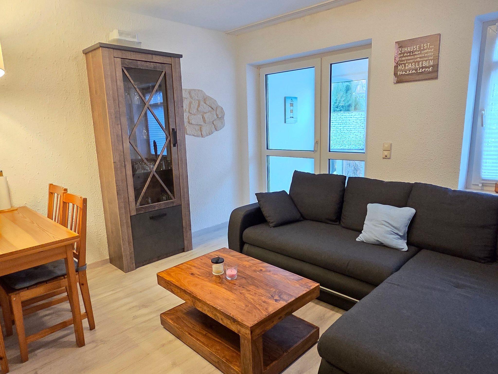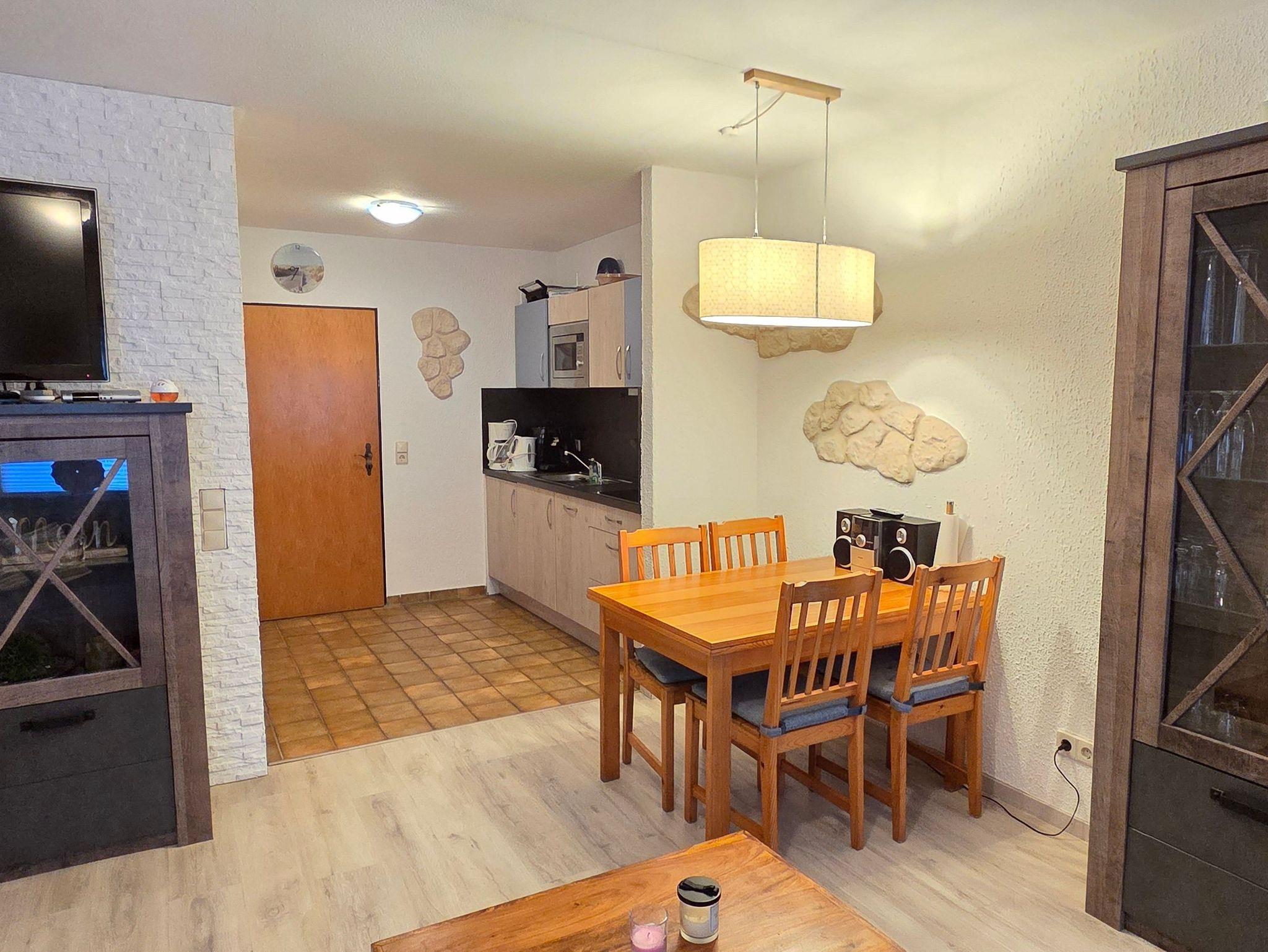 Diese etwa 55m² große Erdgeschosswohnung ist freundlich und ansprechend eingerichtet. Sie verfügt über ein Wohnzimmer mit Esstisch und eine im Frühjahr 2019 neu integrierte Wohnküche (inkl. Mikrowelle mit Backfunktion). Durch einen kleinen Wintergarten gelangen Sie auf die Terrasse. Außerdem befinden sich zwei separate Schlafzimmer (1x 1 Doppelbett inkl. TV / 1x 2 Einzelbetten) sowie ein Duschbad in der Wohnung. Alle Räume sind mit Fliesen bzw. Laminat ausgestattet. WLAN steht Ihnen kostenfrei zur Verfügung.