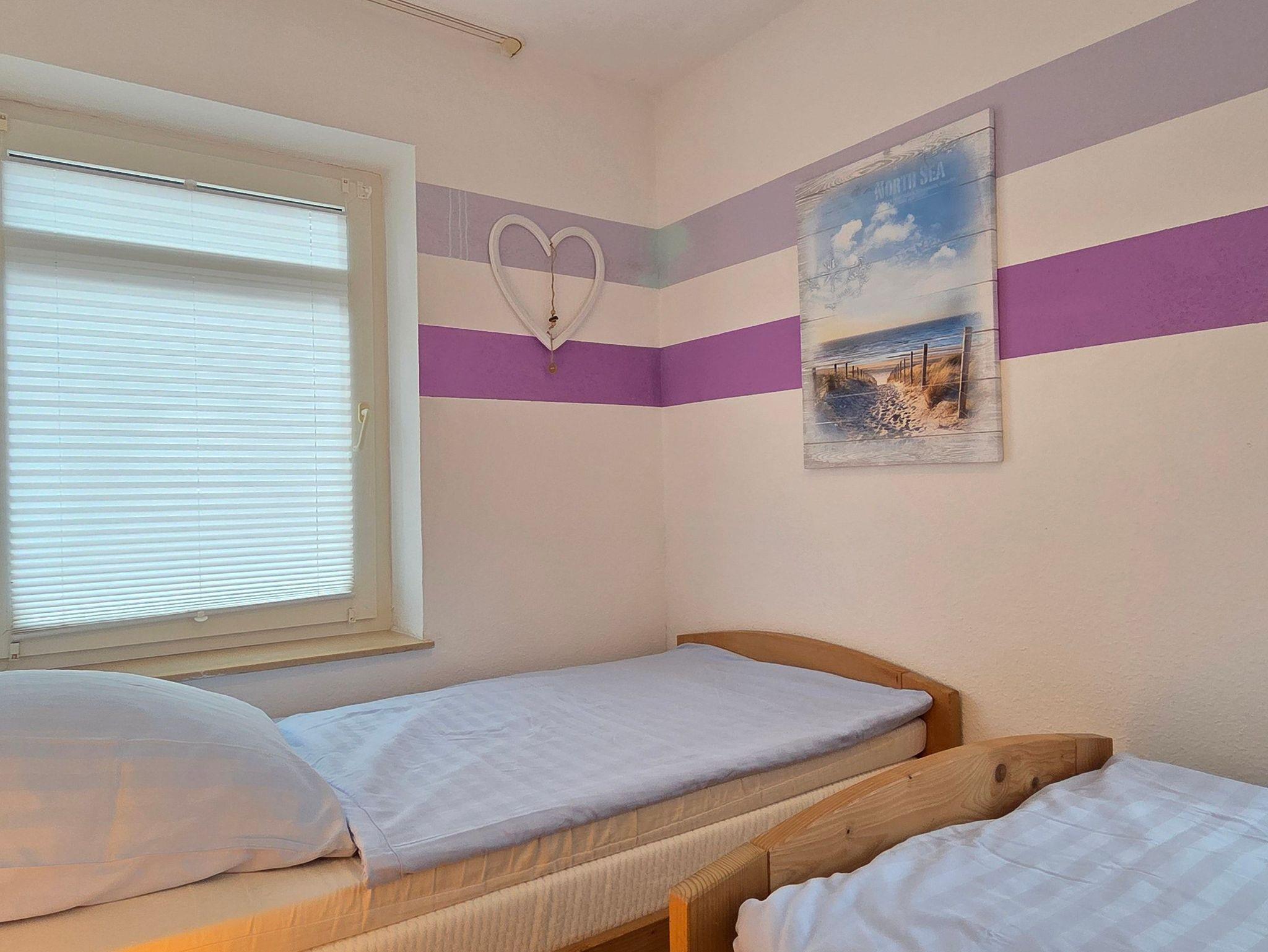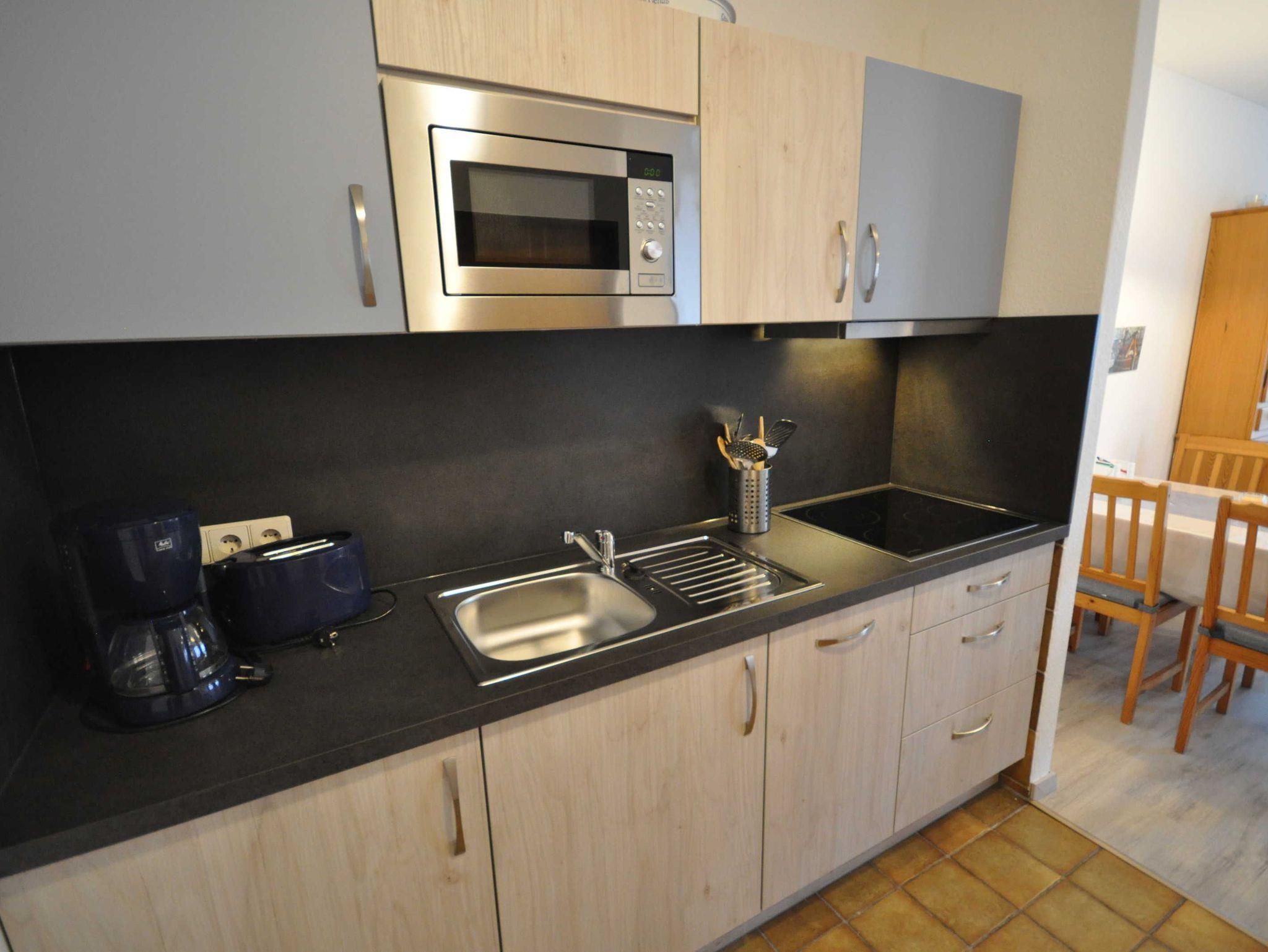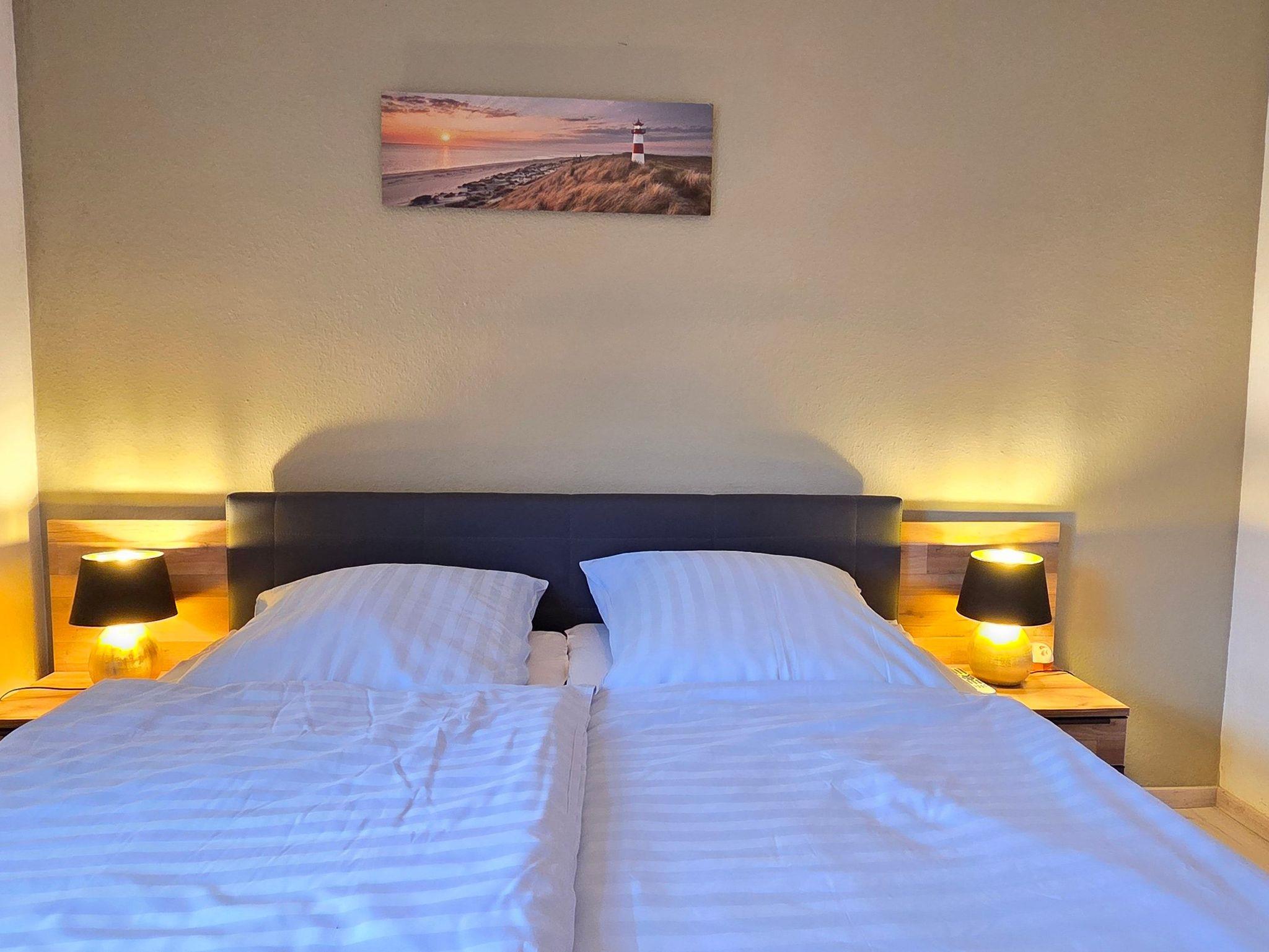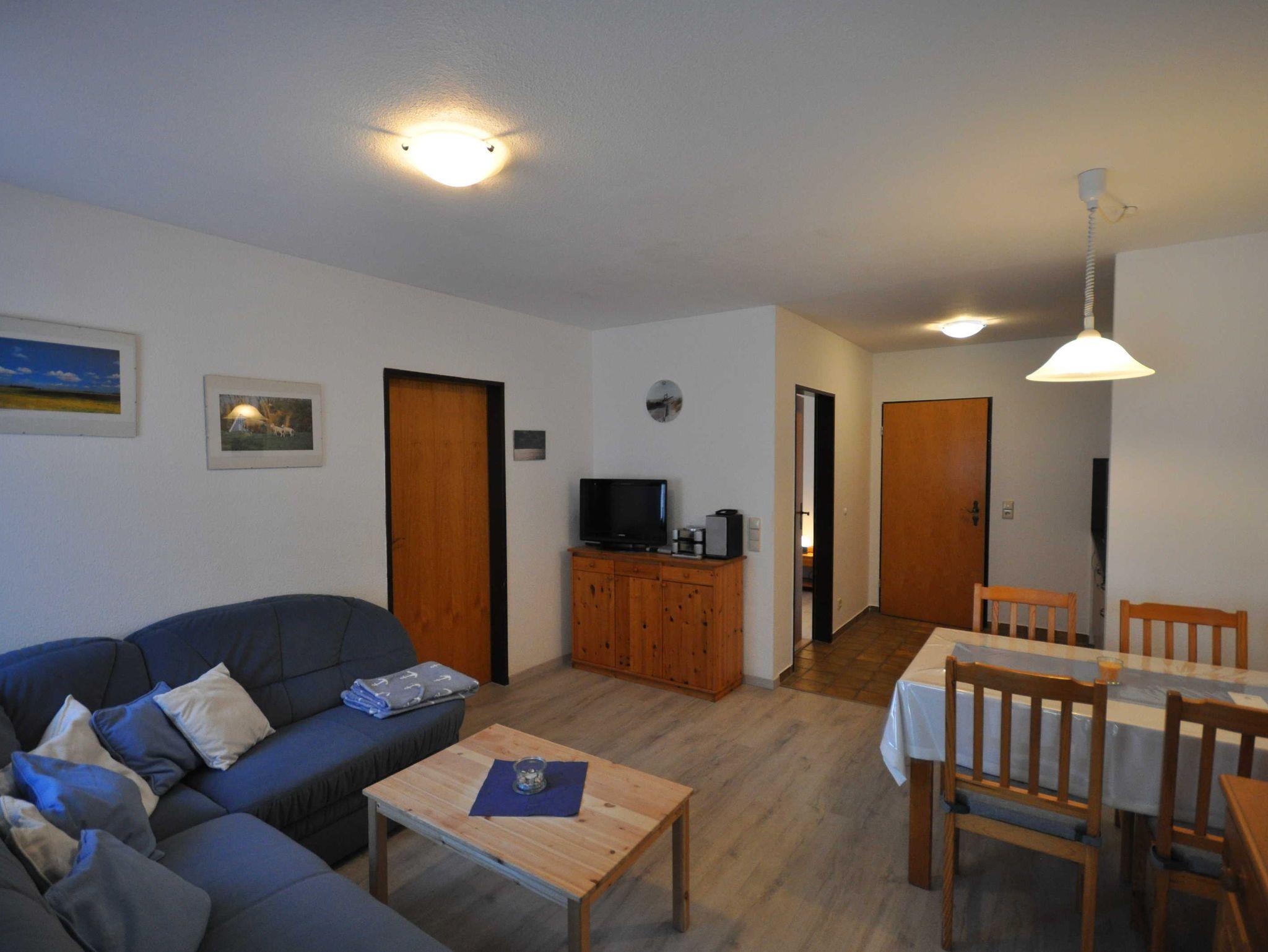 Diese etwa 55m² große Erdgeschosswohnung ist freundlich und ansprechend eingerichtet. Sie verfügt über ein Wohnzimmer mit Esstisch und eine im Frühjahr 2019 neu integrierte Wohnküche (inkl. Mikrowelle mit Backfunktion). Durch einen kleinen Wintergarten gelangen Sie auf die Terrasse. Außerdem befinden sich zwei separate Schlafzimmer (1x 1 Doppelbett inkl. TV / 1x 2 Einzelbetten) sowie ein Duschbad in der Wohnung. Alle Räume sind mit Fliesen bzw. Laminat ausgestattet. WLAN steht Ihnen kostenfrei zur Verfügung.