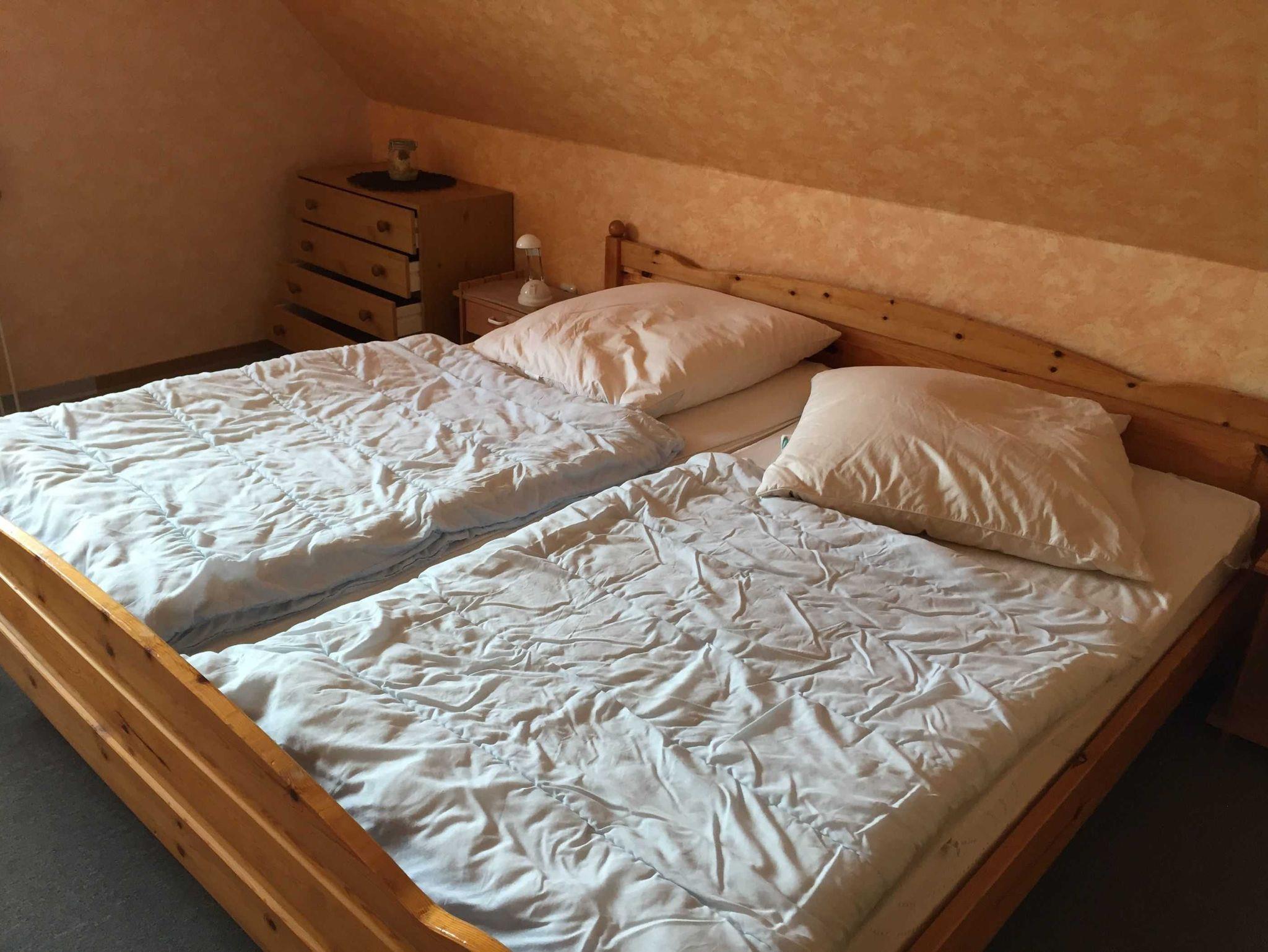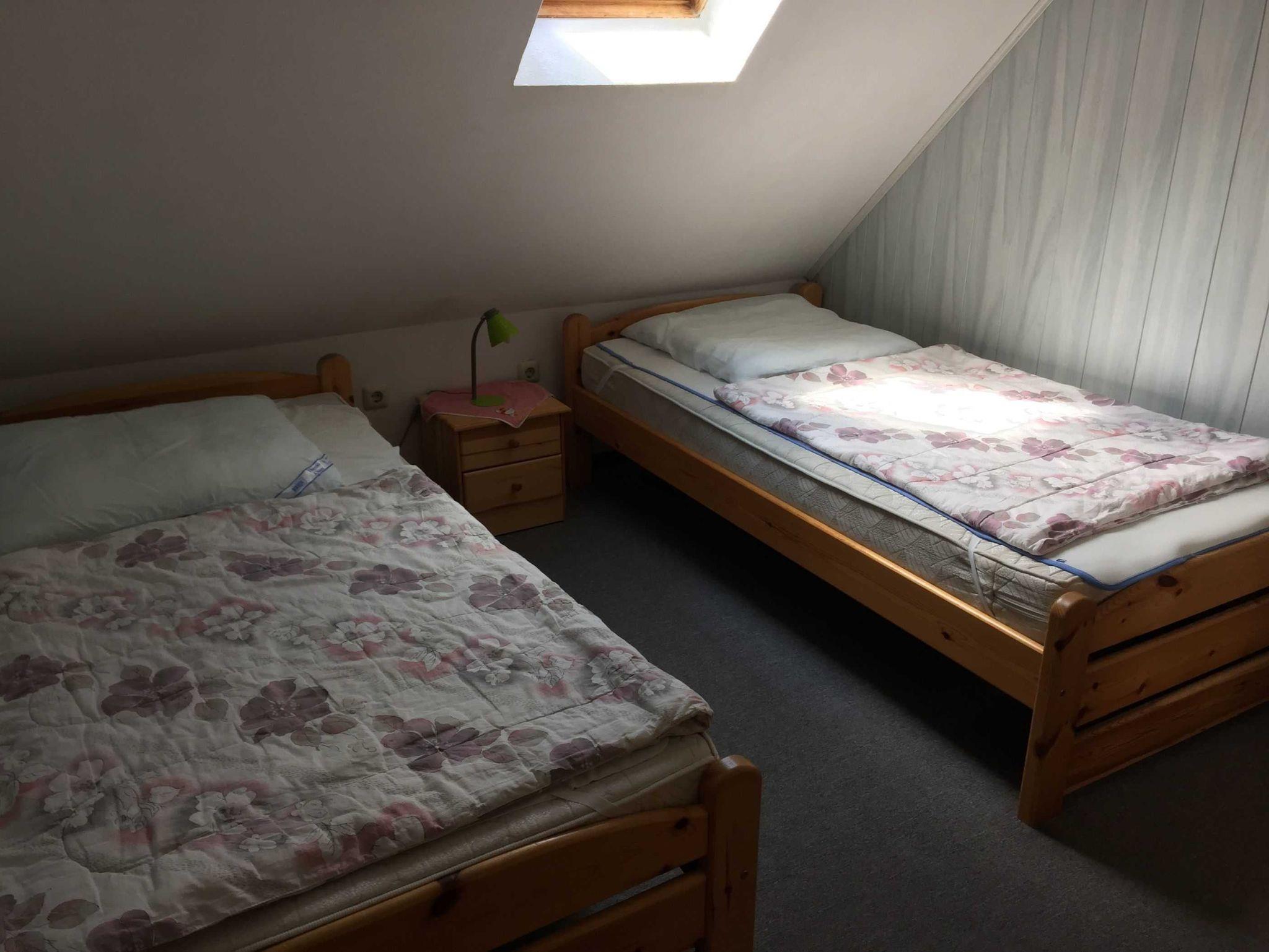 Gemütliche 60qm Nichtraucherwohnung im Obergeschoss für bis zu 4 Personen, separater Eingang, Wohnzimmer mit voll eingerichteter Küchenzeile, großer Balkon zur Südseite, 1 Schlafzimmer mit Doppelbett (2m), 1 Schlafzimmer mit 2 Einzelbetten, Waschmaschine, Übernachtungspreise .Mindestbuchung 5 Nächte.