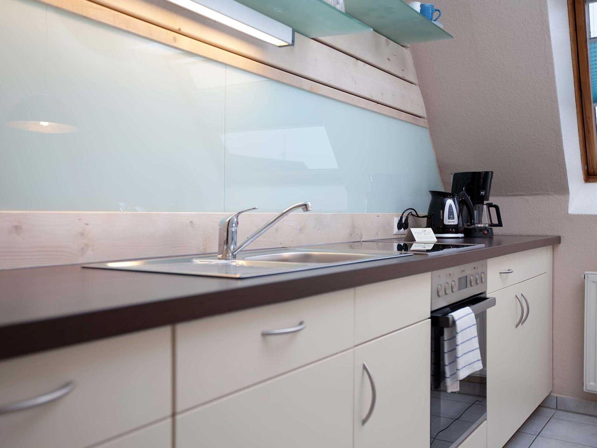 Vier geschmackvoll und modern eingerichtete Ferienwohnungen für zwei Personen mit Terrasse (Erdgeschoss-Wohnungen) bzw. Balkon (Wohnungen im 1. Obergeschoss). Alle Ferienwohnungen mit moderner, komplett ausgestatteter Küche, Wohnzimmer mit gemütlicher Sitzgarnitur, HDTV-Flachbildschirm (Radio und Weckfunktion), sowie Essplatz. Bad mit Dusche/WC und Föhn. Kostenloser W-LAN-Zugang und PKW-Stellplatz. Je Wohnung 1 Haustier können Sie gerne mitbringen (+30,-EUR Haustierreinigung).