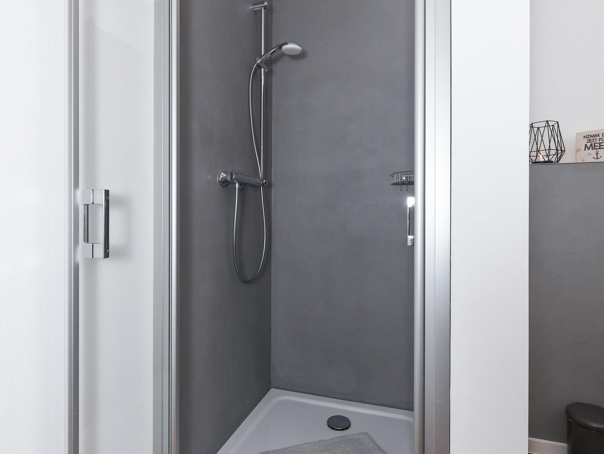 zweites Badezimmer mit Dusche, Waschtisch und WC
