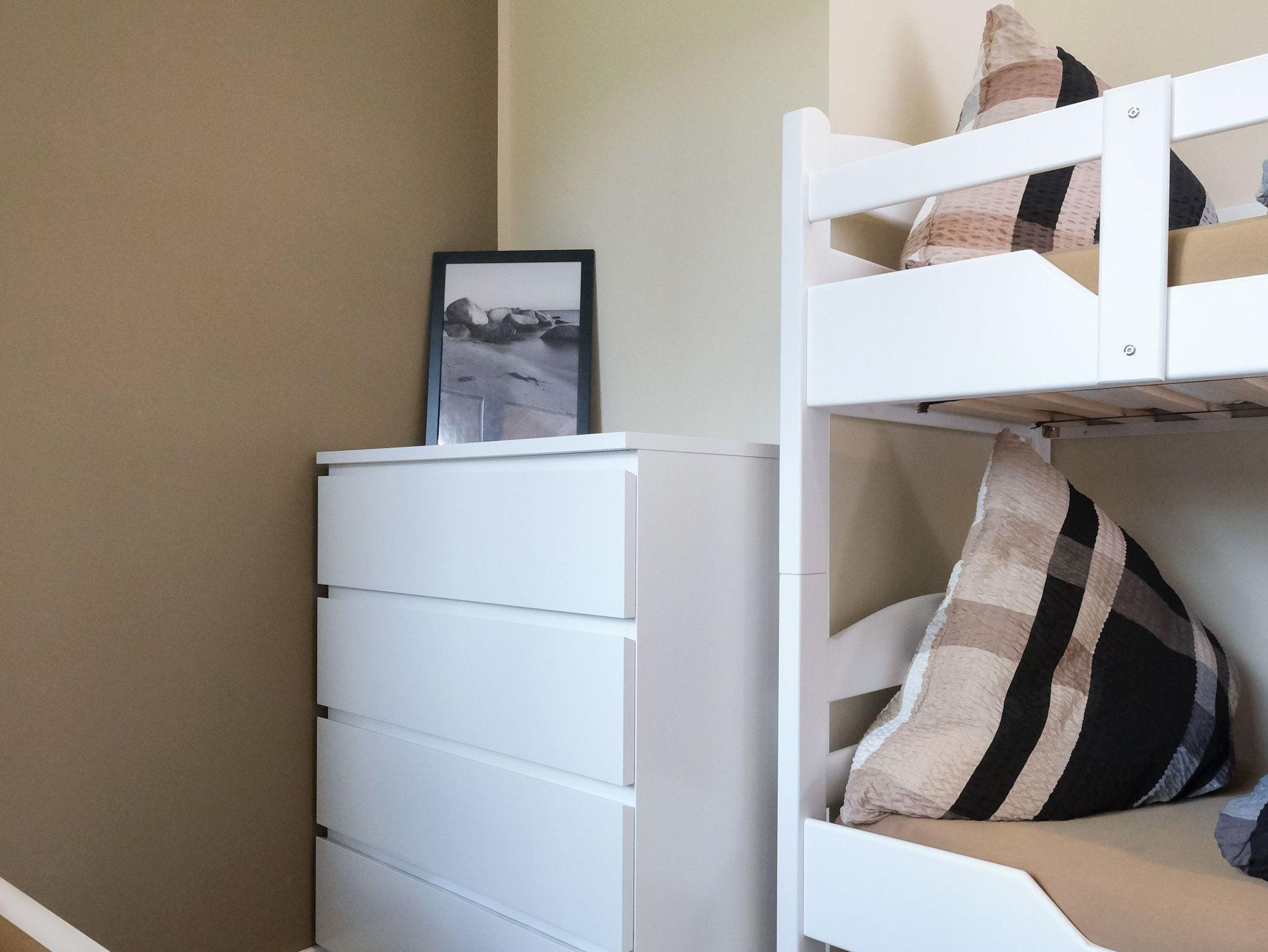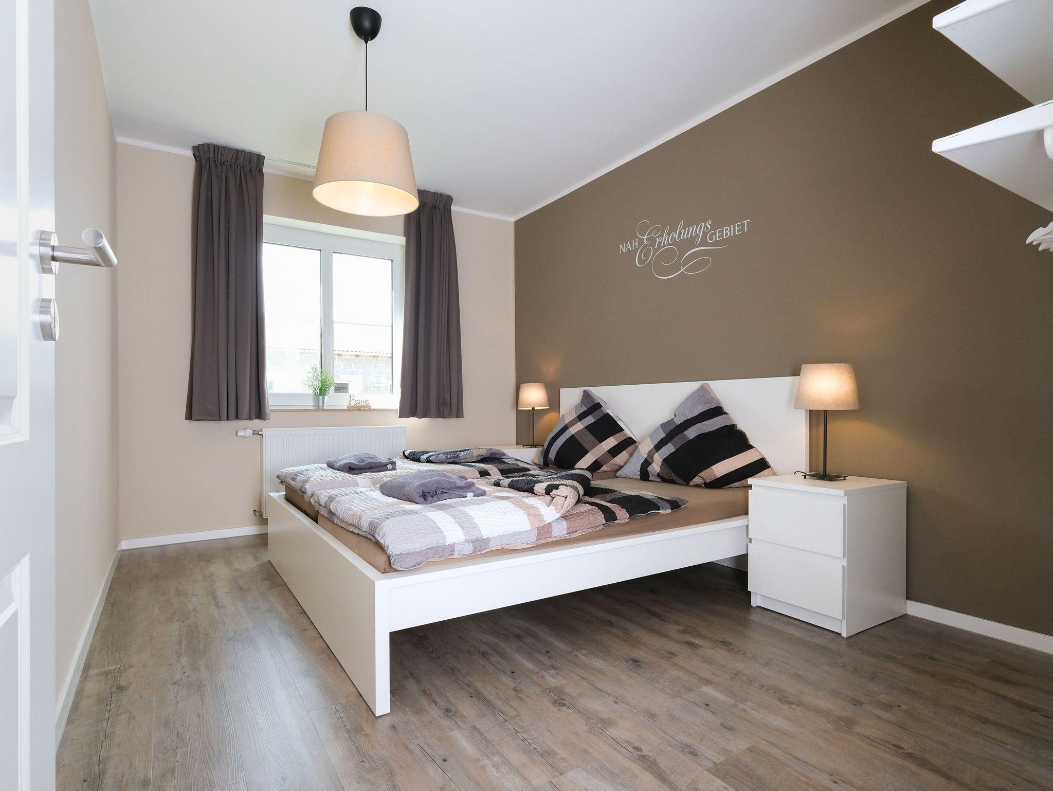 Das Elternschlafzimmer ist großzügig geschnitten und bietet Ihnen einen direkten Blick in den Garten. Es ist mit einem Doppelbett (180x200) mit offenem Fußende ausgestattet. Im zweiten Schlafzimmer steht Ihnen ein Einzelbett und ein Etagenbett (je 90x200) zur Verfügung. Damit ist das Schlafzimmer für 2 Erwachsene oder 3 Kinder optimal ausgelegt. Beide Schlafzimmer verfügen über einen Wandschrank und Verdunklungsmöglichkeiten.