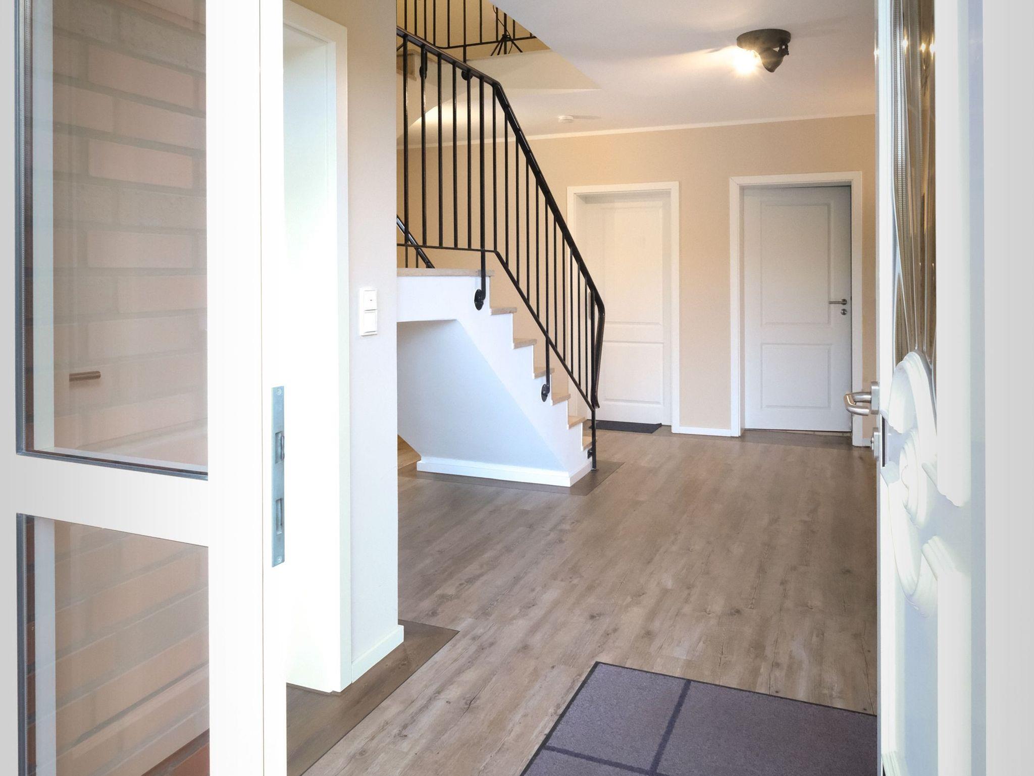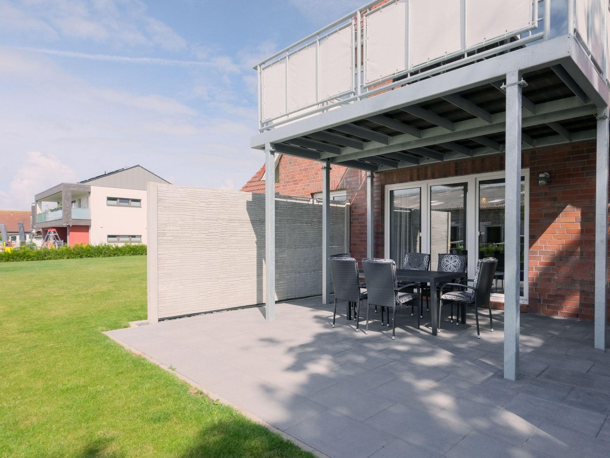Modernes Friesenhuus Carolinensiel mit großer Sonnenterrasse, Garten und zentraler Lage zwischen Ortskern und Strand.