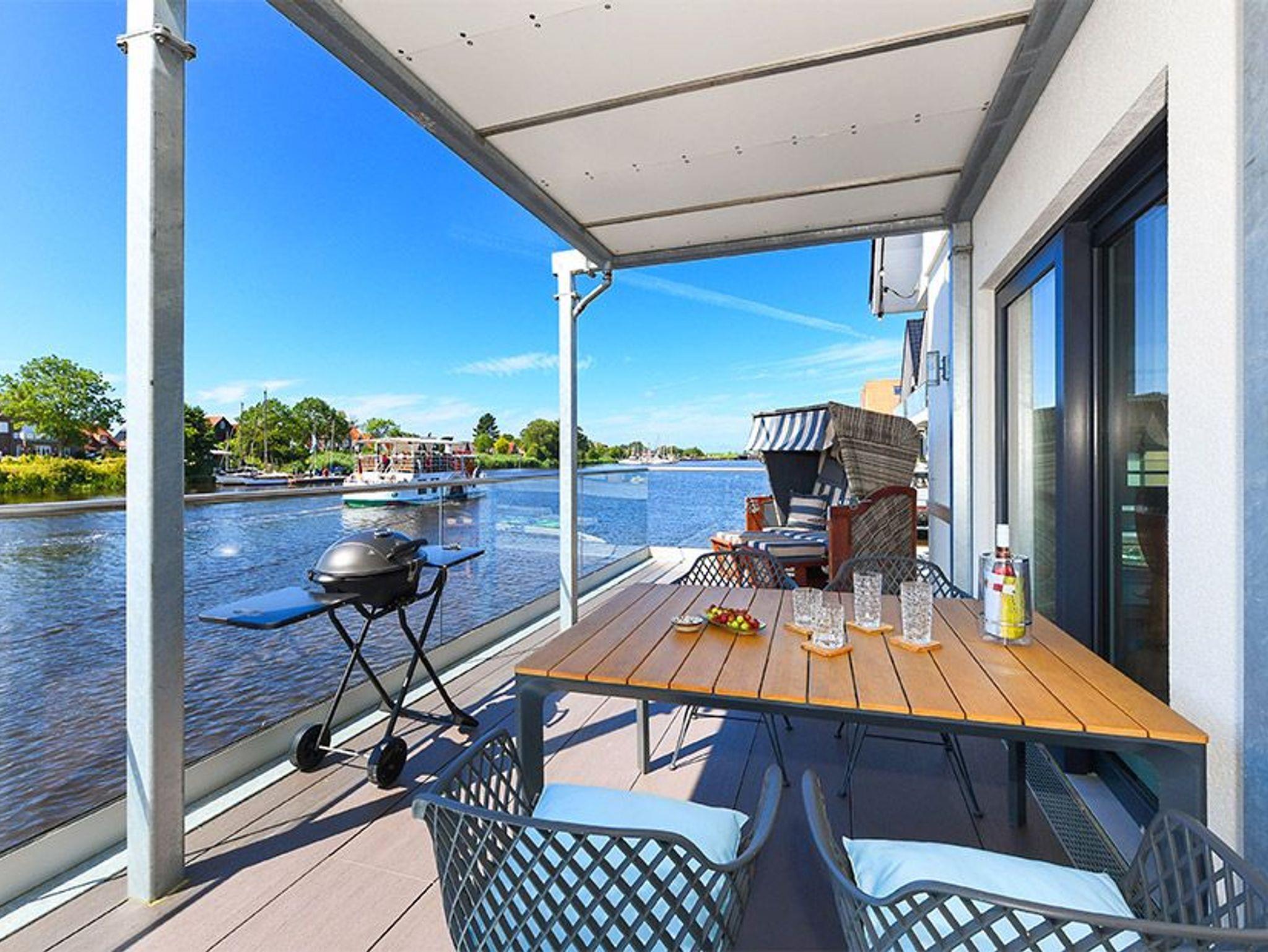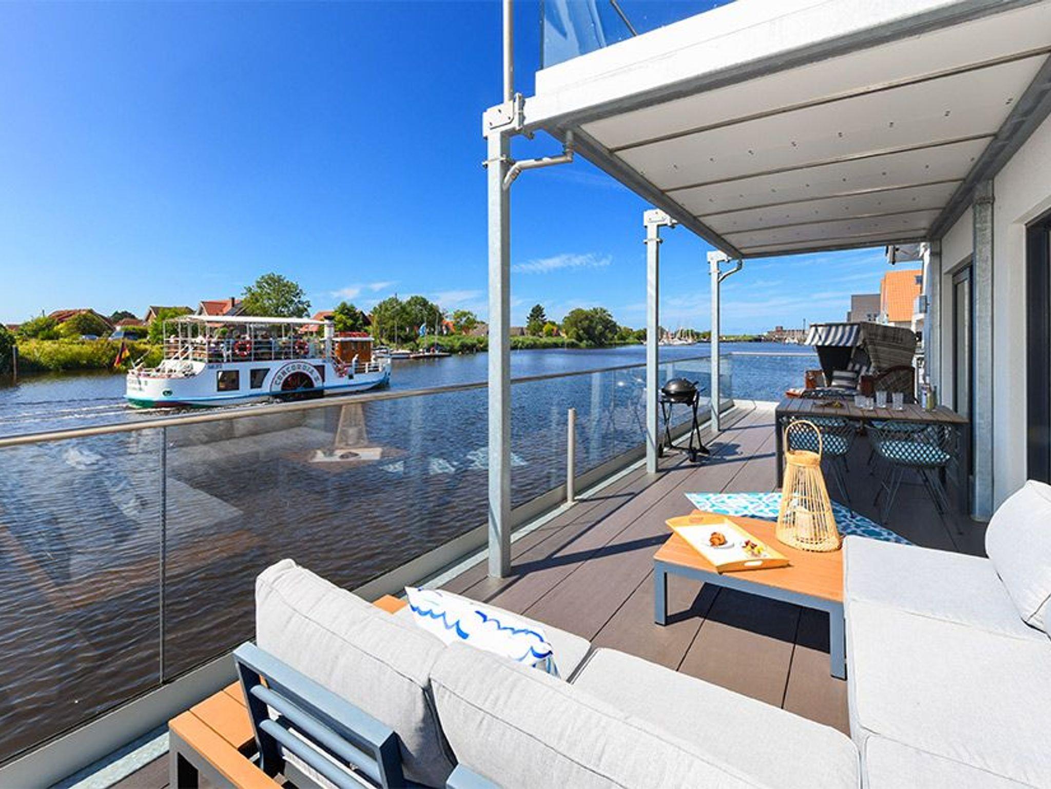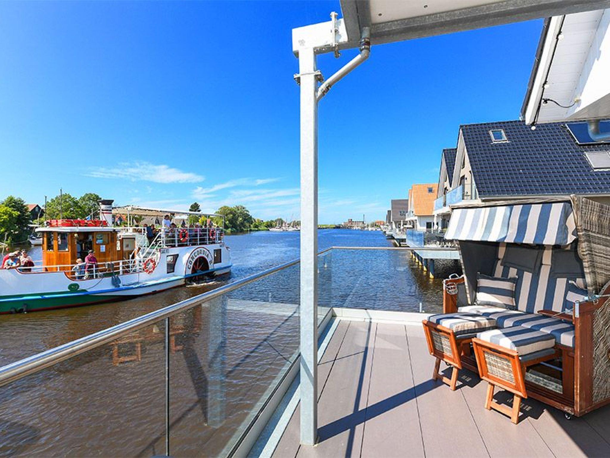 Unseren Gästen bietet sich durch die weit in die Harle hineingebaute Plattform ein einzigartiger Panoramablick von der Friedrichsschleuse bis zum Yachthafen von Harlesiel. Die beiden stilvoll eingerichteten Ferienwohnungen ebbe & flut sind jeweils für bis zu 4 Personen geeignet. Sie zeichnen sich durch ihre besonders großzügige Raumaufteilung aus. Die Erdgeschosswohnung ebbe ist barrierefrei und bietet auf 97 m² höchsten Wohnkomfort. Nach Westen eröffnet sich eine 35 m² große, teilweise überdachte Terrasse. Die Wohnung flut befindet sich im oberen Geschoss und bietet den Gästen 89 m² Wohlfühlfläche. Der großzügige, nach Westen angelegte Balkon verspricht einen einzigartigen Ausblick.