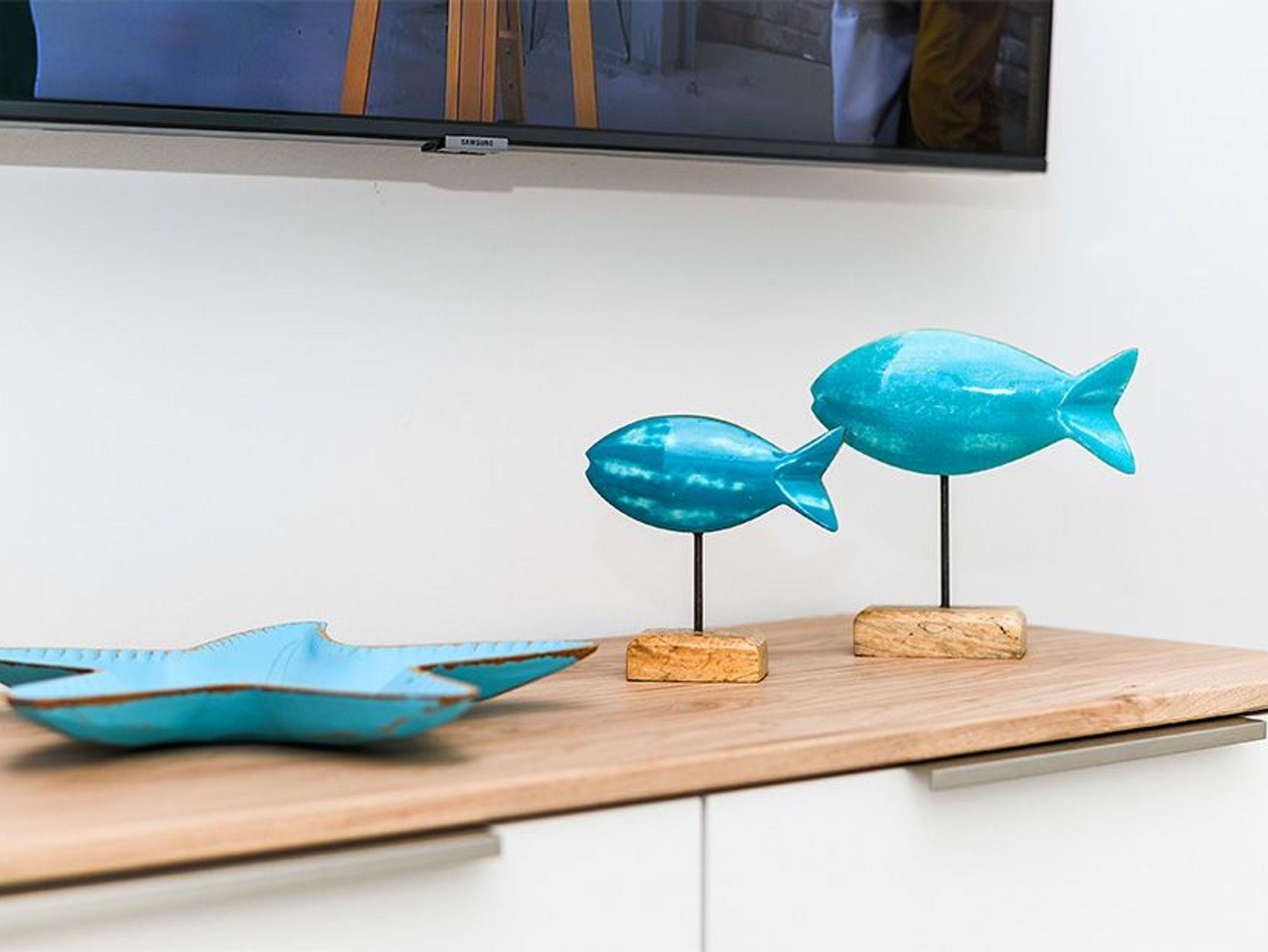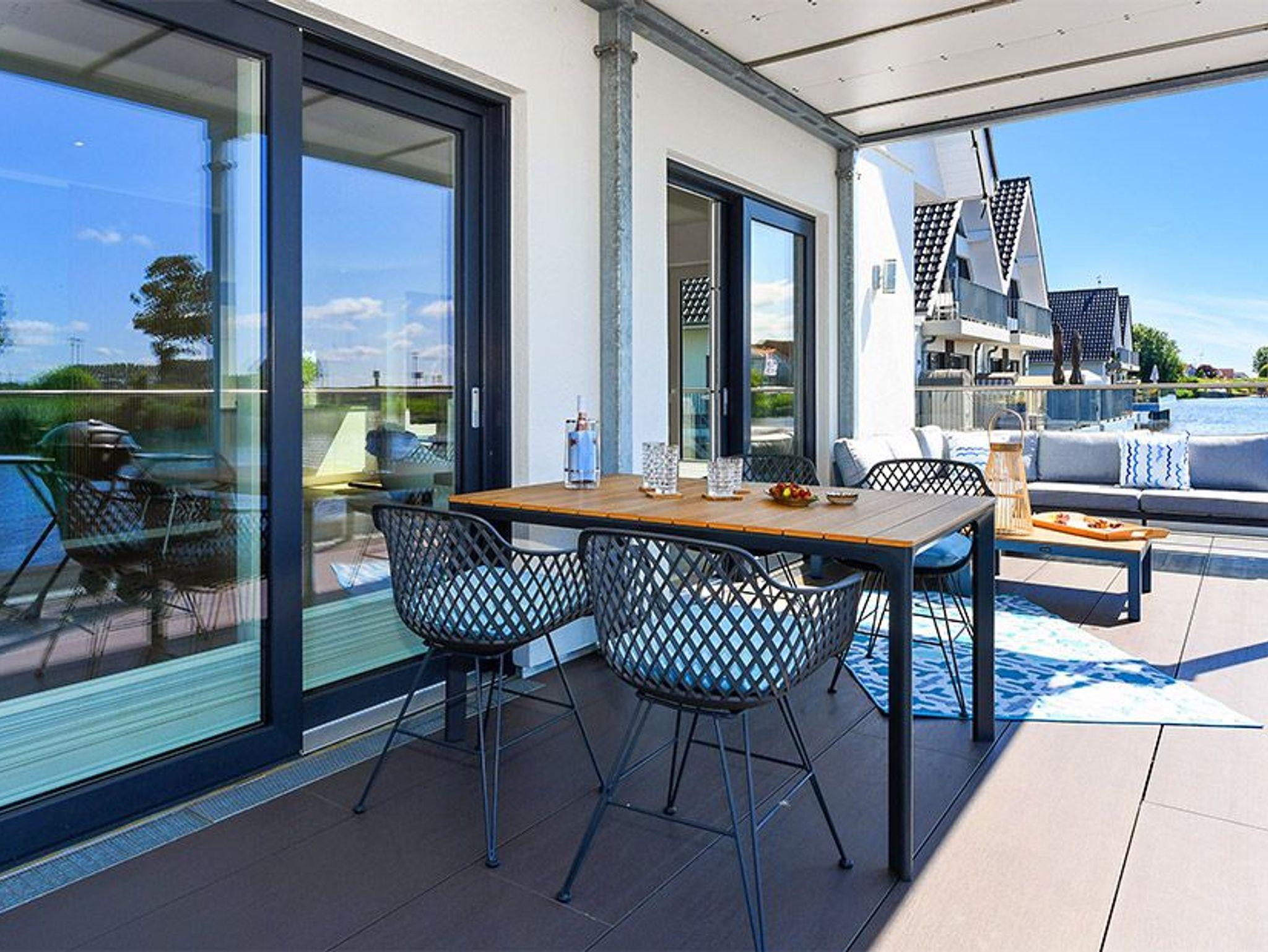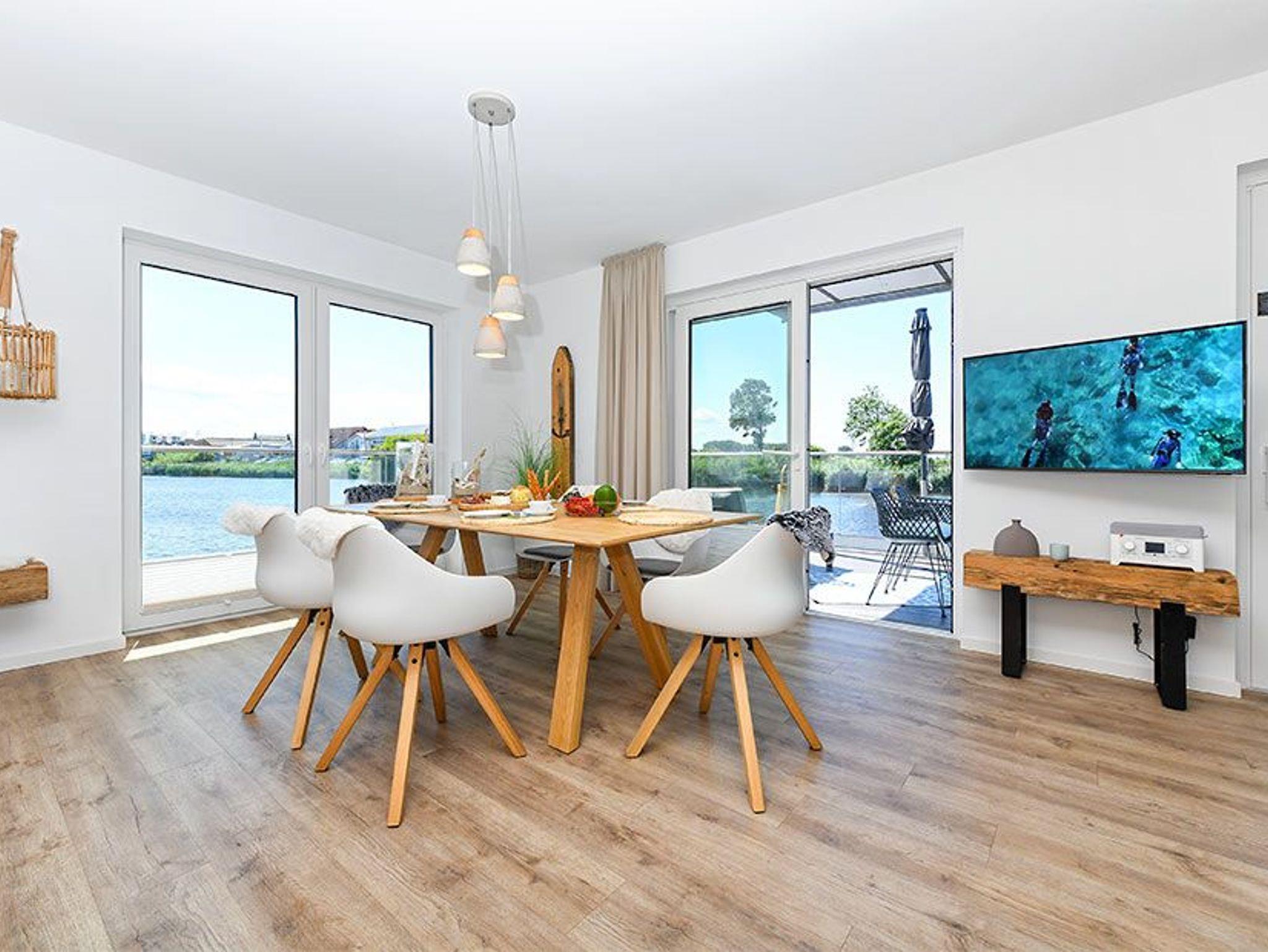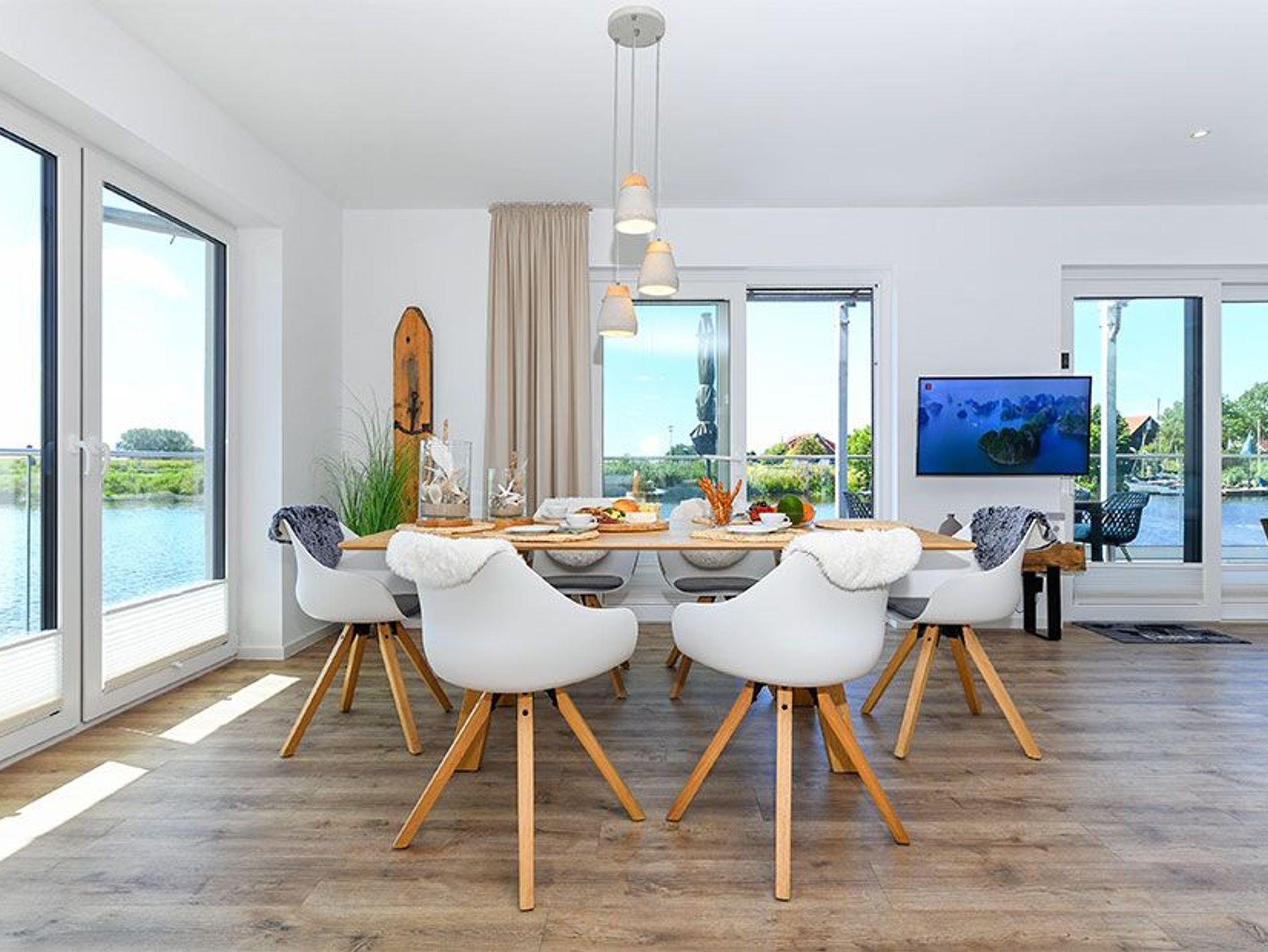 Unseren Gästen bietet sich durch die weit in die Harle hineingebaute Plattform ein einzigartiger Panoramablick von der Friedrichsschleuse bis zum Yachthafen von Harlesiel. Die beiden stilvoll eingerichteten Ferienwohnungen ebbe & flut sind jeweils für bis zu 4 Personen geeignet. Sie zeichnen sich durch ihre besonders großzügige Raumaufteilung aus. Die Erdgeschosswohnung ebbe ist barrierefrei und bietet auf 97 m² höchsten Wohnkomfort. Nach Westen eröffnet sich eine 35 m² große, teilweise überdachte Terrasse. Die Wohnung flut befindet sich im oberen Geschoss und bietet den Gästen 89 m² Wohlfühlfläche. Der großzügige, nach Westen angelegte Balkon verspricht einen einzigartigen Ausblick.