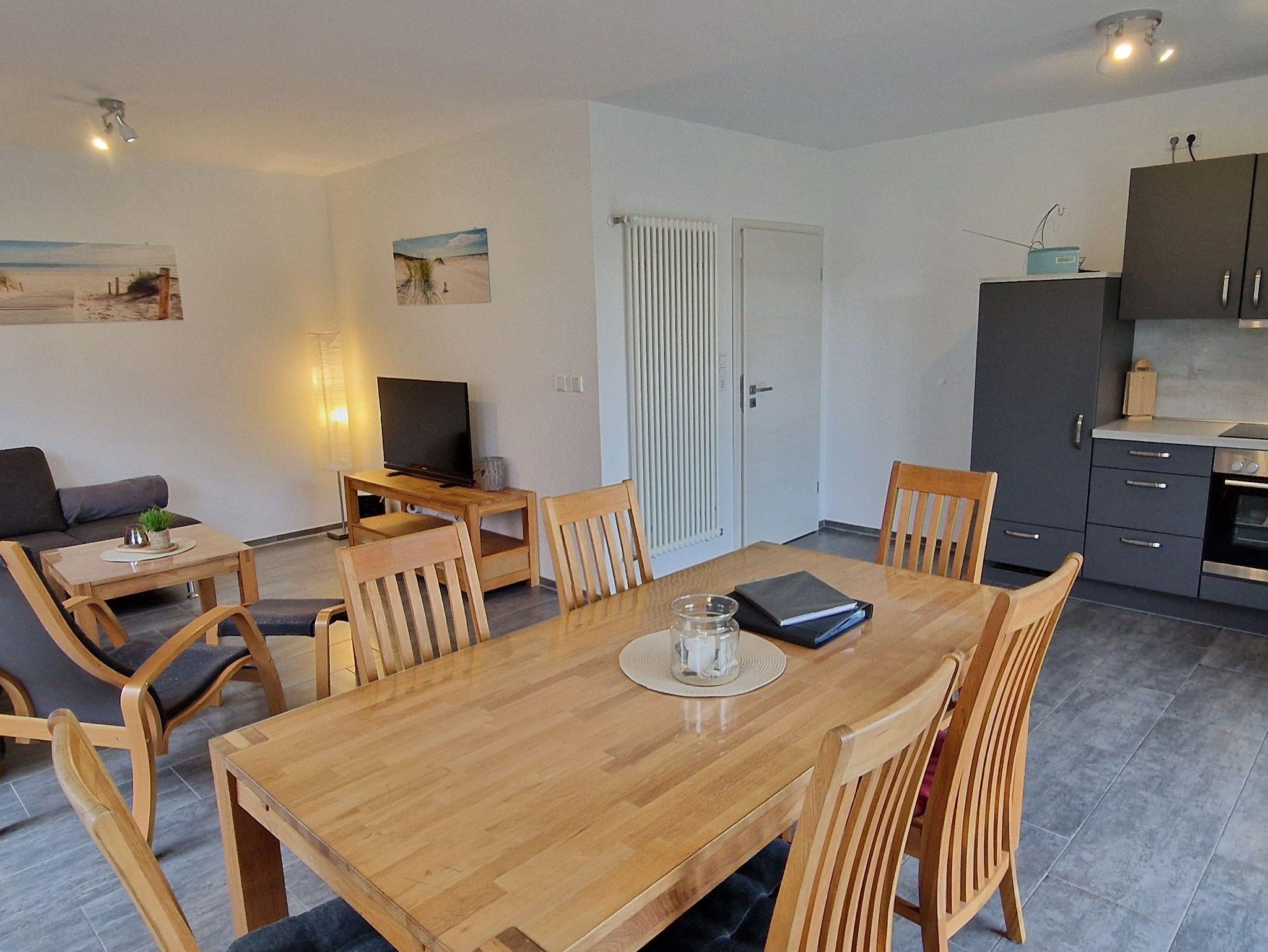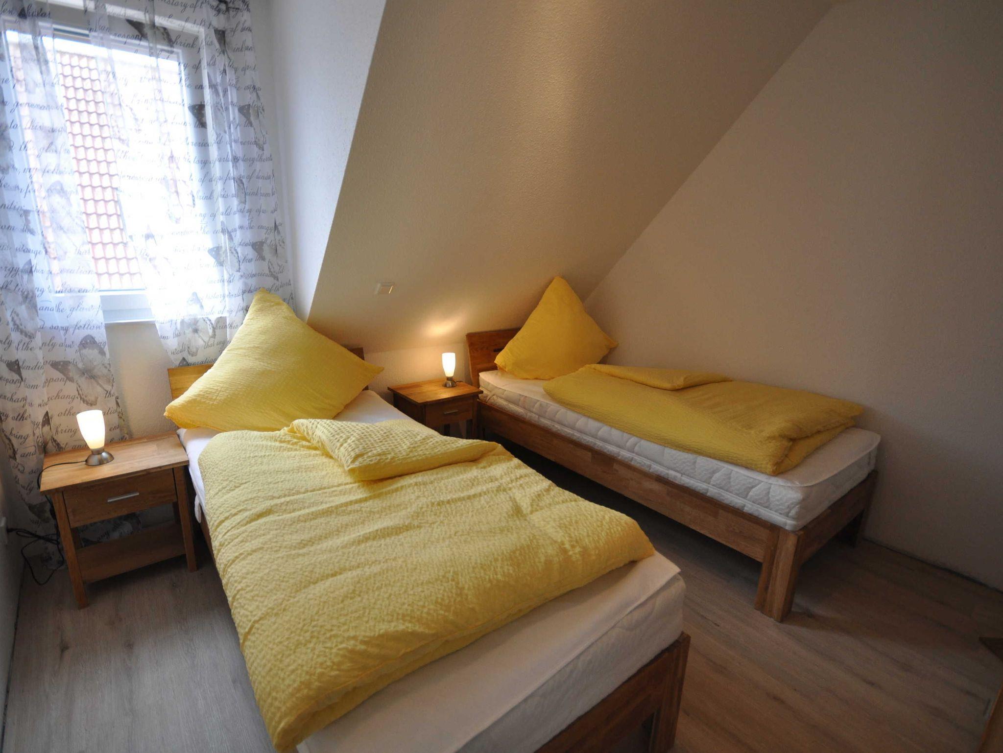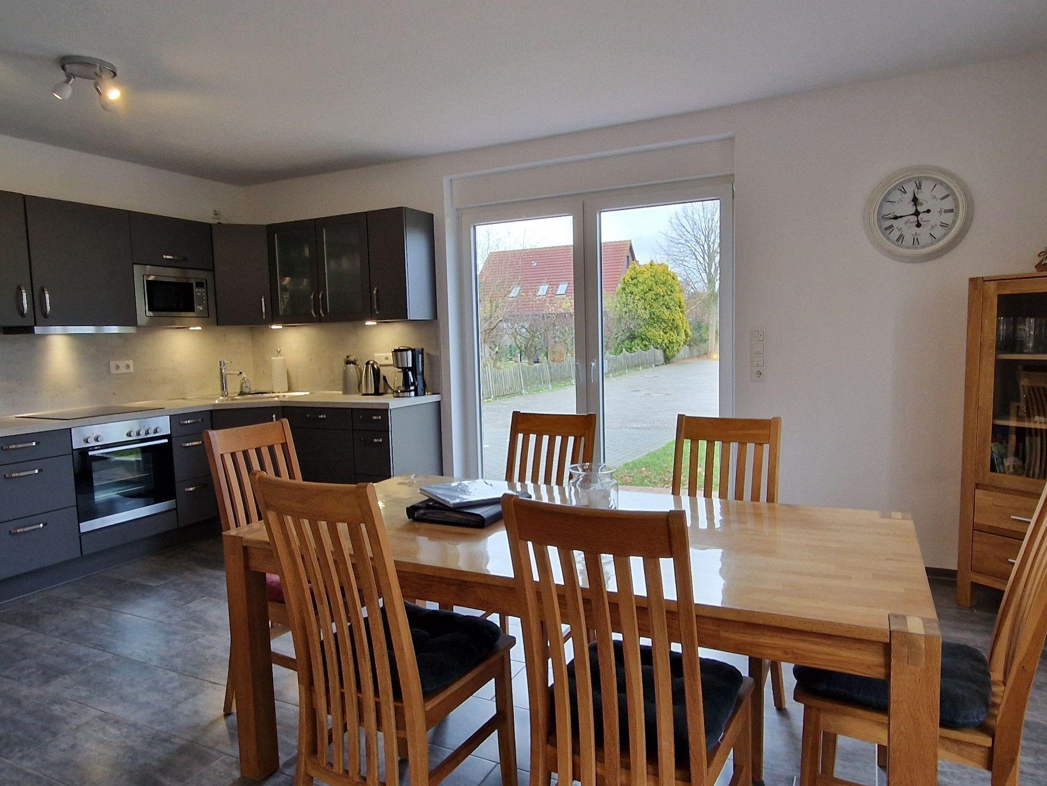 Diese neuwertige Doppelhaushälfte bietet Ihnen höchsten Komfort. Im Erdgeschoss befinden sind ein großzügiger und freundlicher Bereich für Kochen, Essen und Wohnen, sowie ein Badezimmer mit bodengleicher Dusche. Das Obergeschoss verfügt über drei Schlafzimmer mit Fliegenschutz an den Fenstern (1x Doppelbett, 1x 1,40m-Bett, 1x2 Einzelbetten) und ein großzügiges 2. Bad mit Badewanne und bodengleicher Dusche. Alle Fenster sind mit Rollläden, die Böden mit Fliesen bzw. Laminat ausgestattet. WLAN steht Ihnen kostenlos zur Verfügung. Eine hochwertige Ausführung und attraktive Ausstrahlung sorgen für entsprechende Wohnqualität.