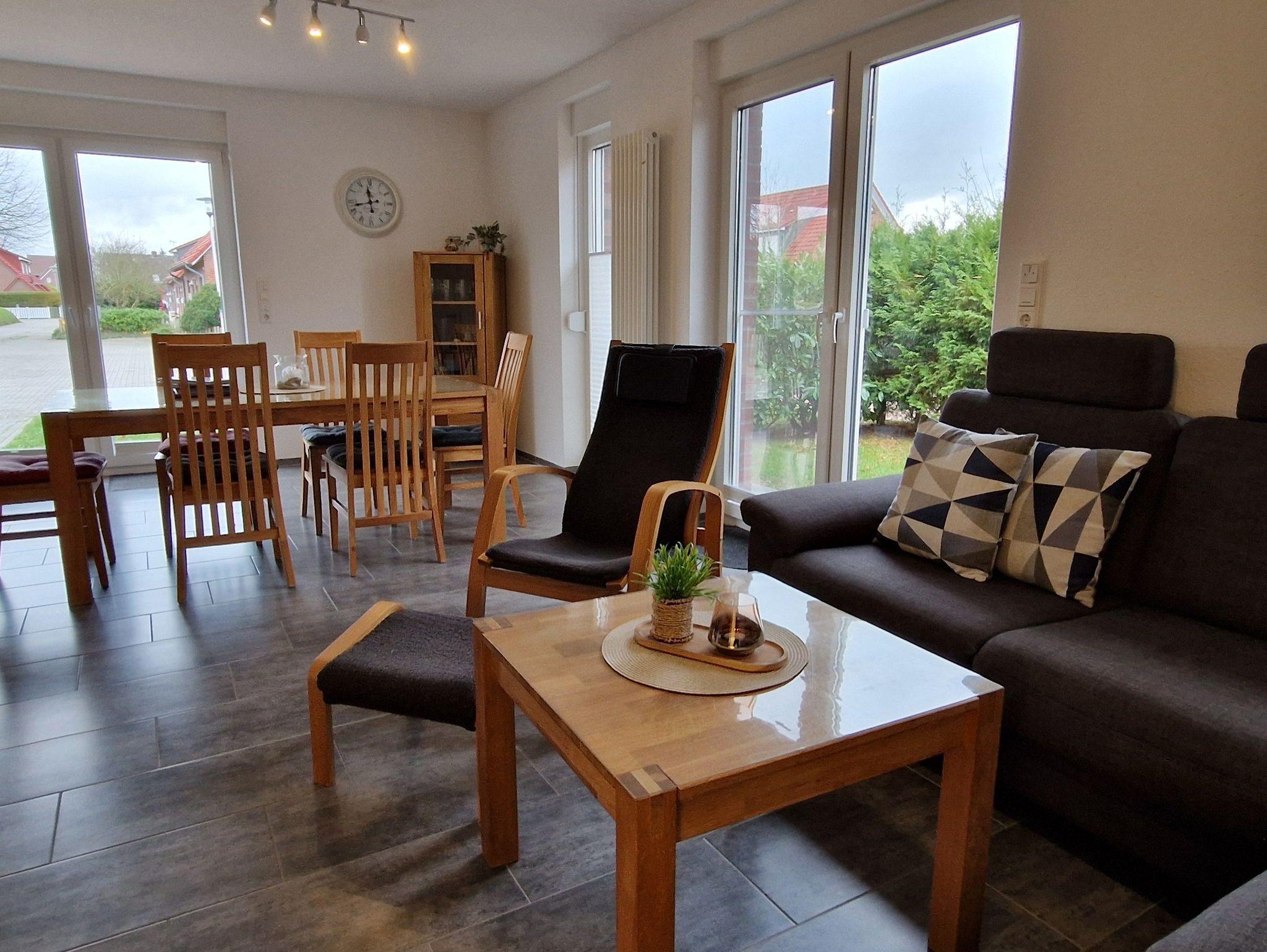 Moderne Doppelhaushälfte mit Garten, Strandkorb und Nähe zum historischen Museumshafen in Carolinensiel.
