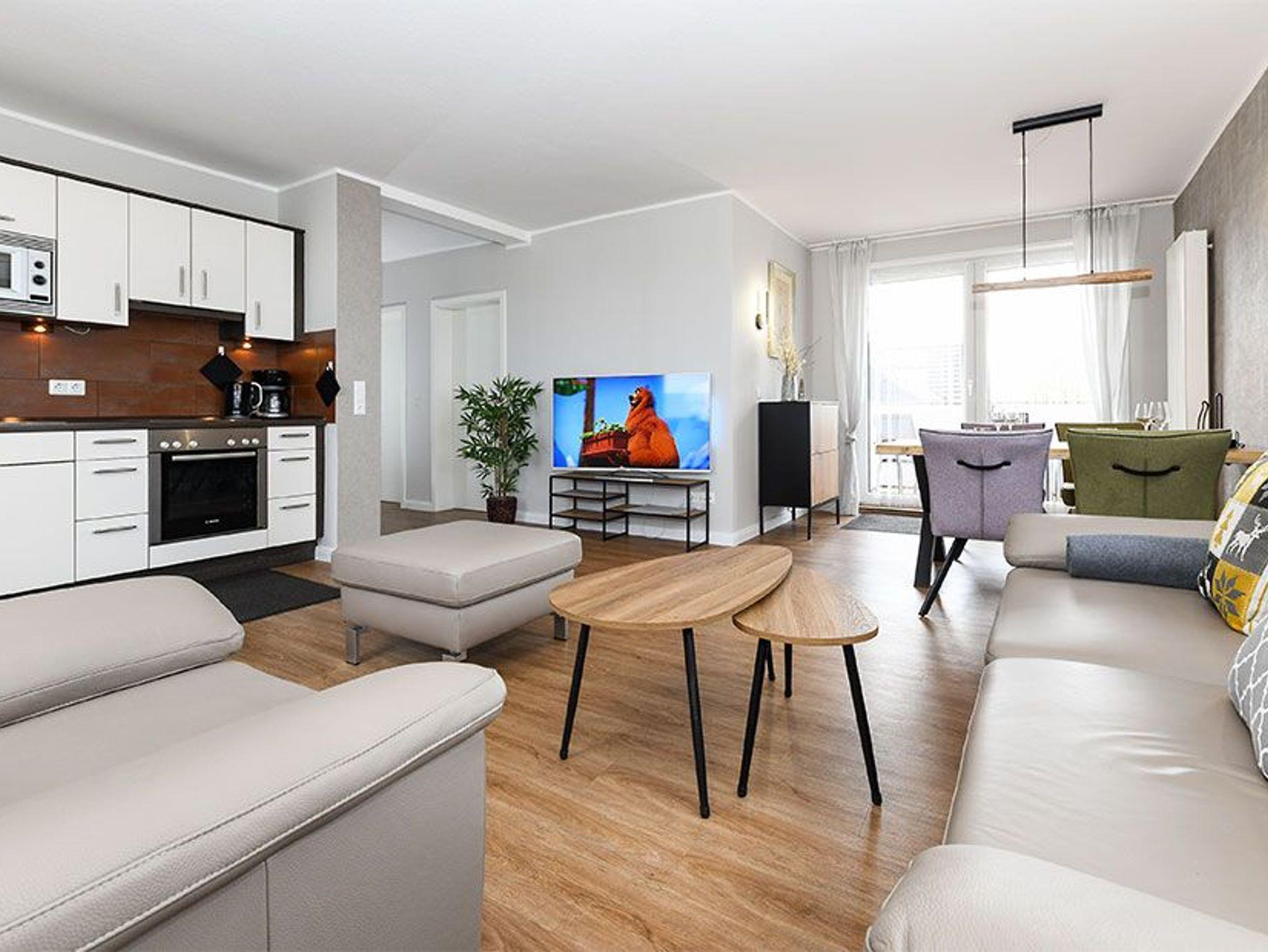Die Ferienwohnung Deichkrone ist für zwei bis vier Personen mit zusätzlichem Kleinkind geschmackvoll für Sie eingerichtet und modern ausgestattet, zum Beispiel ist Mikrowelle und Geschirrspülmaschine vorhanden, eine Waschmaschine und ein Wäschetrockner stehen zum Benutzen für alle Gäste zur Verfügung. Die Wohnung verfügt über einen sonnigen Balkon.