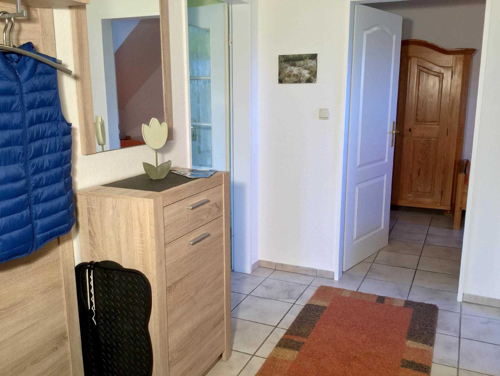 Komfortable und geschmackvoll eingerichtete Oberwohnung von ca. 58 qm Größe mit Südbalkon. Bis 4 Personen buchbar. Die Wohnung ist folgendermaßen ausgestattet: Wohnzimmer mit Polstergarnitur, Essecke, Sat-HDTV, DVD, Internetradio, kostenloses WLAN. Elternschlafzimmer mit Doppelbett, Kinderzimmer mit 2 Einzelbetten, separate Küche, Bad mit Dusche/WC, Gäste-WC, Flur. Parkplatz. Fliegengitter in den Wohn- und Schlafräumen, sowie Küche und Bad. Diese Wohnung ist allergikergeeignet. Nichtraucher! Bettwäsche und Handtücher-Erstausstattung inklusive.
