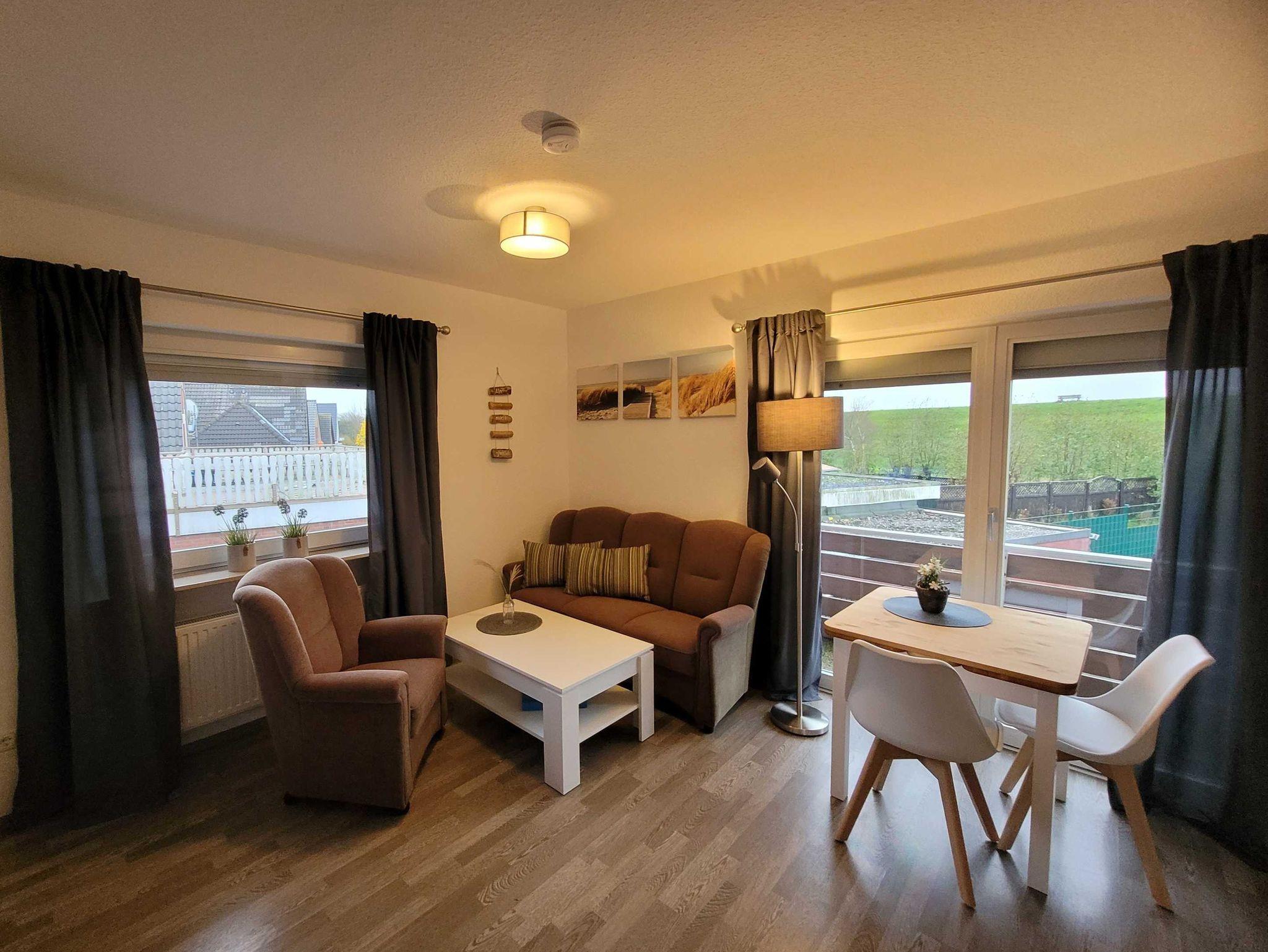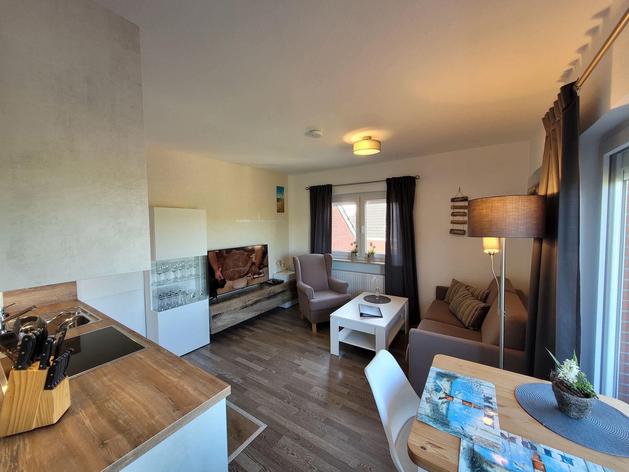 Gemütliche Ferienwohnung am Yachthafen Carolinensiel, 5 Gehminuten zum Strand mit Garten und Deichblick.