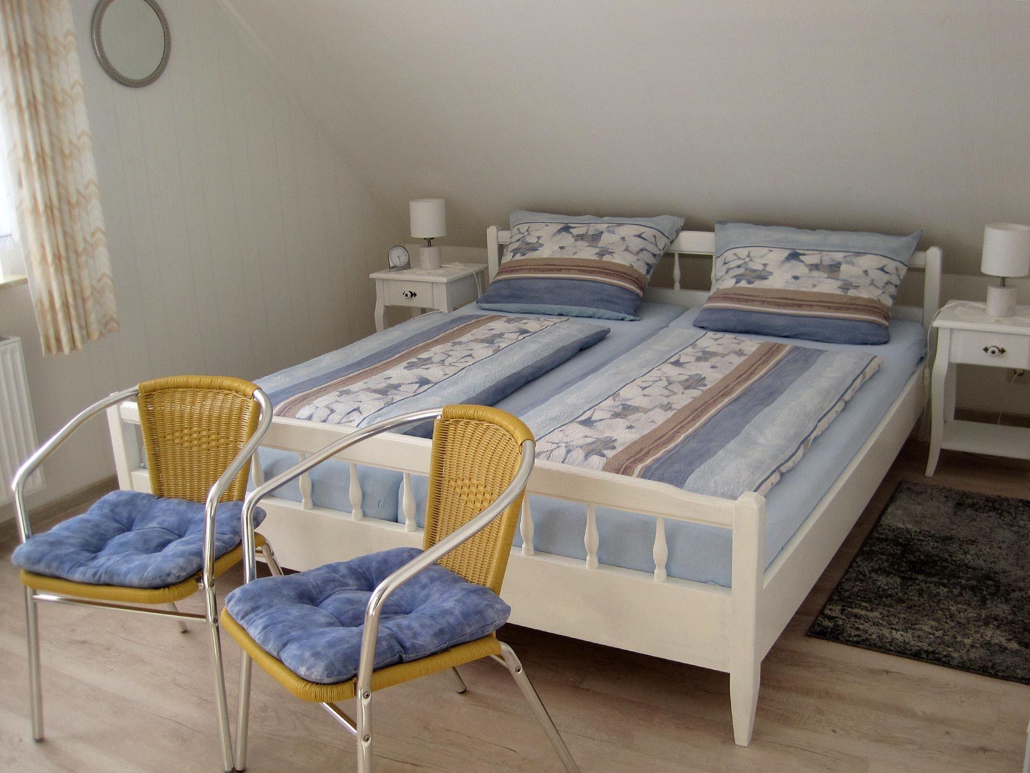 Wir vermieten im Obergeschoss unseres Hauses zwei Ferienwohnungen für bis zu 4 Personen. Beide Wohnungen verfügen über eine Küchenzeile, Wohn-/Essbereich, zwei Schlafräume (1x Doppelbett, 1x Einzelbetten) und einen Balkon. Fahrräder können unentgeltlich geliehen werden. Ein PKW-Stellplatz befindet sich direkt am Haus. Haustiere sind in unseren Wohnungen nicht erlaubt. Bettwäsche und Handtücher werden gestellt.