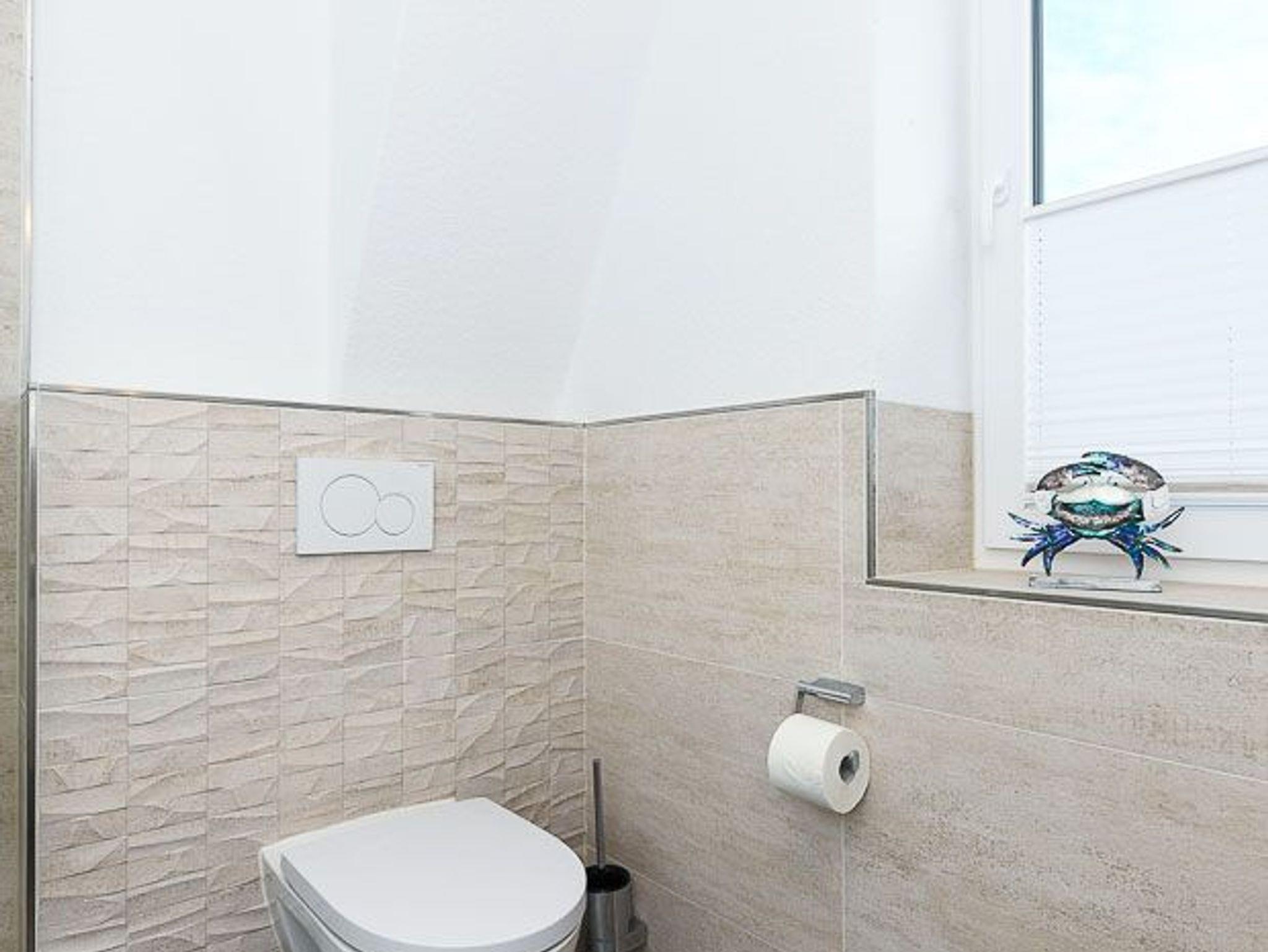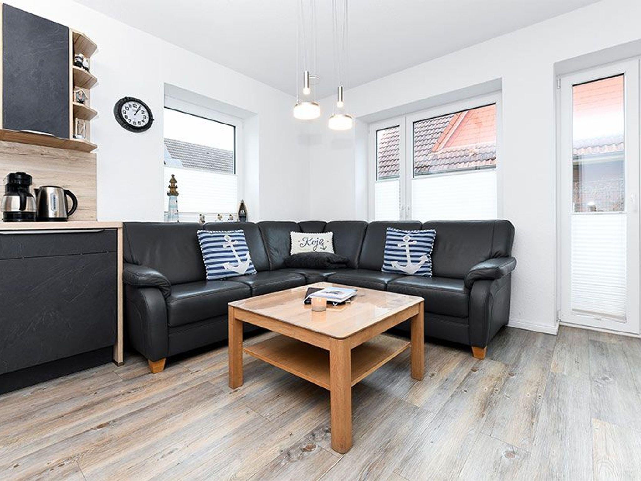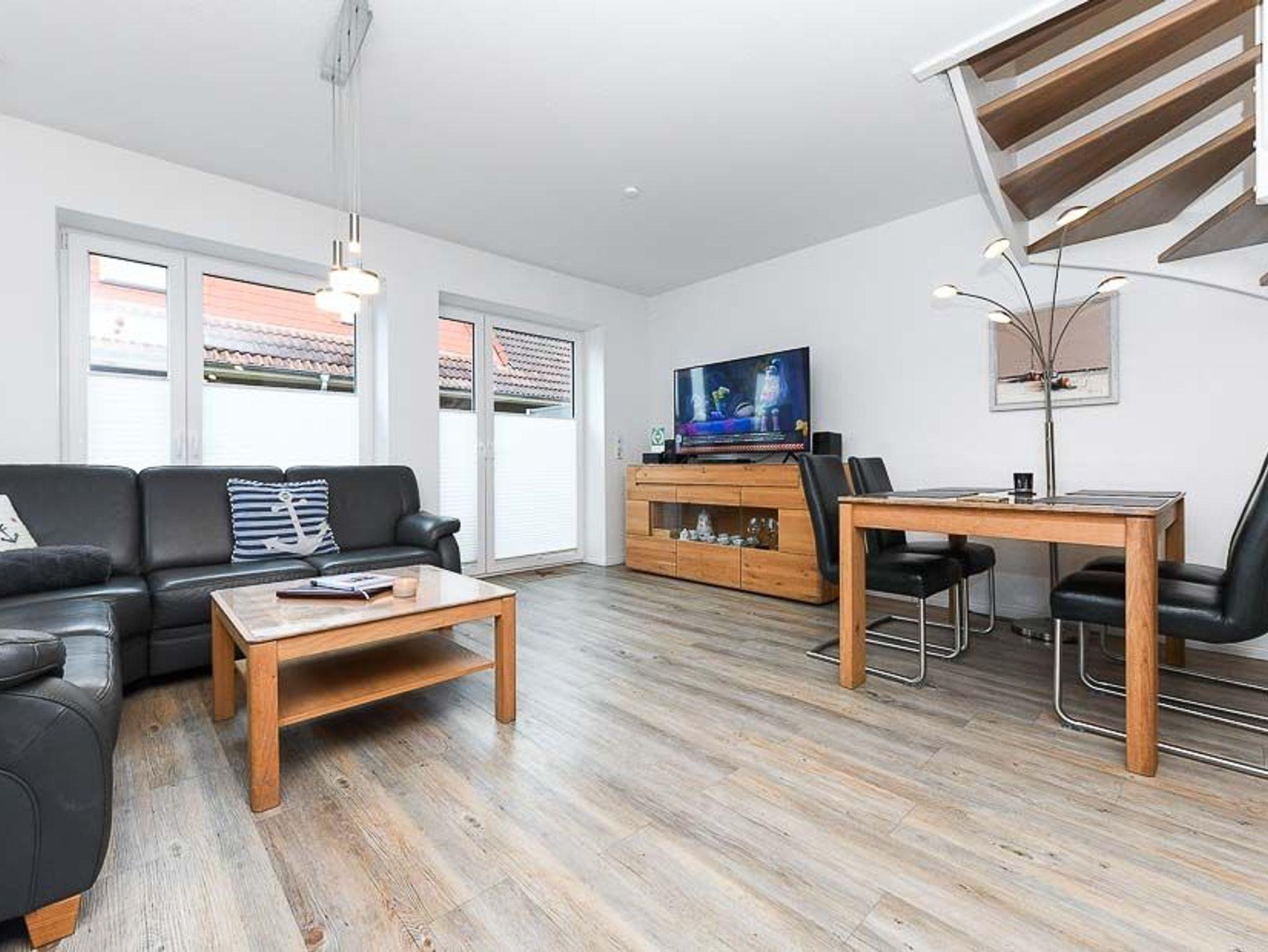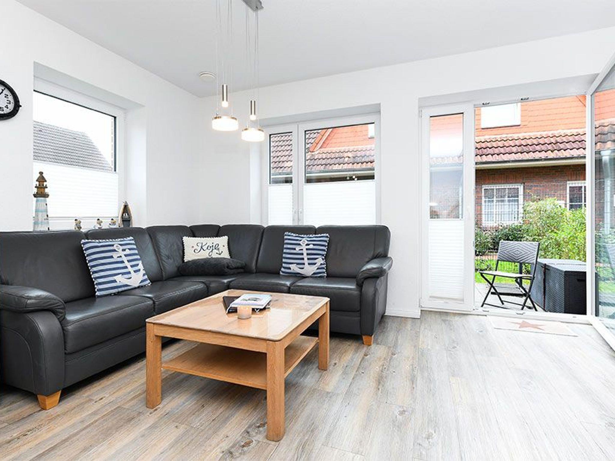 Modernes Ferienhaus Lüttje Krabbe in ruhiger Lage mit Terrasse und zwei Bädern, ideal für Familien und Haustiere.