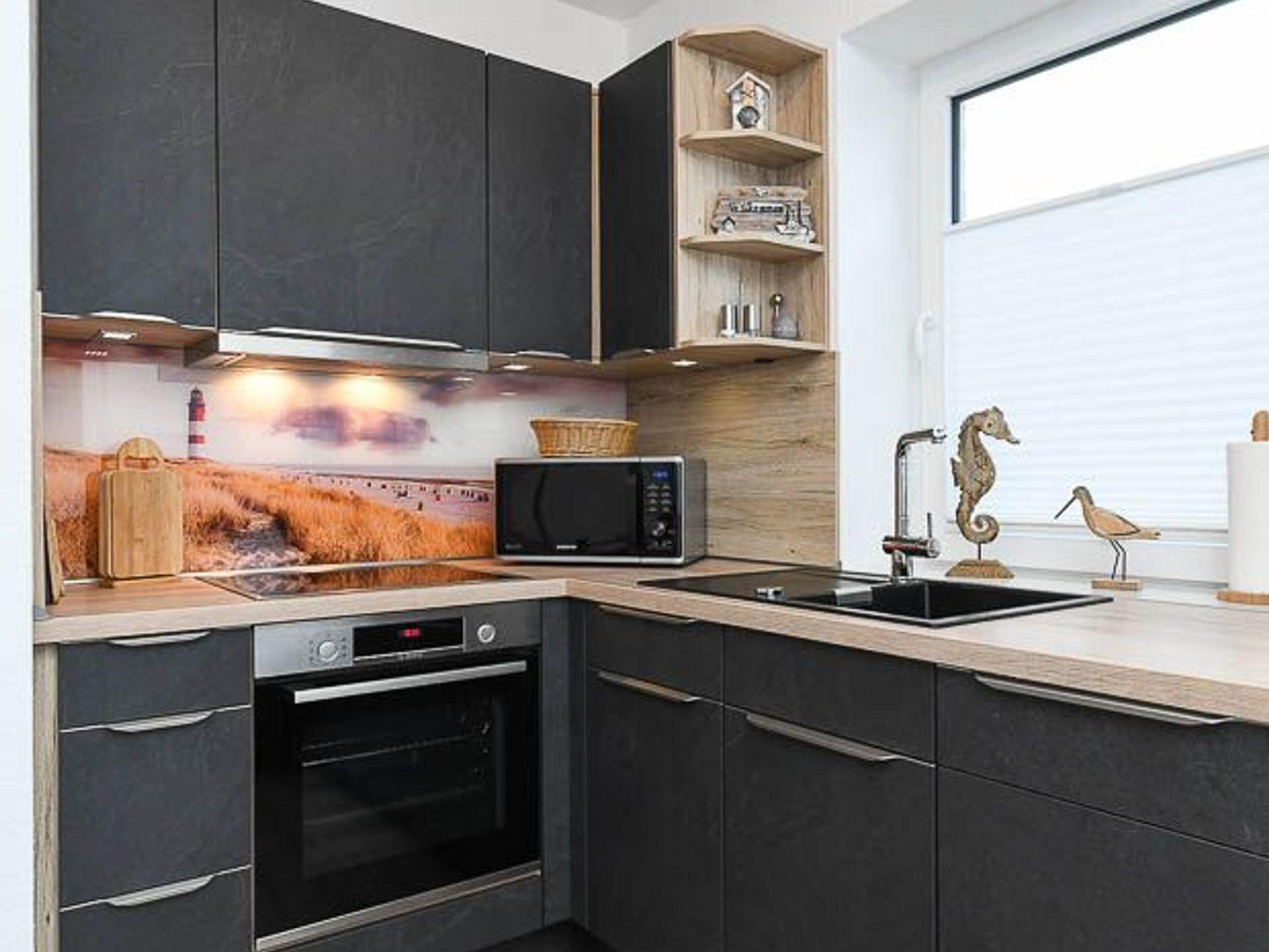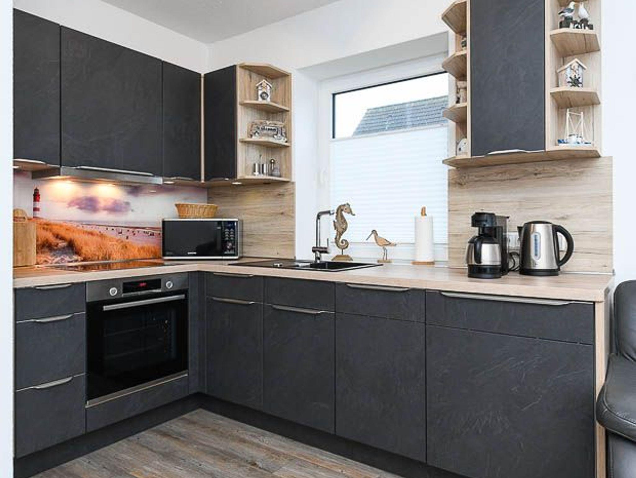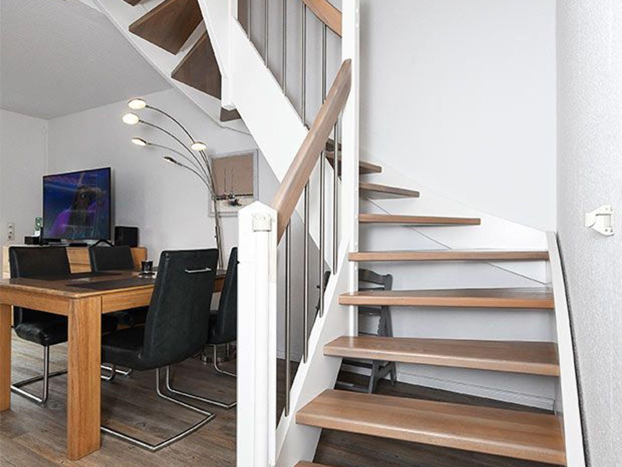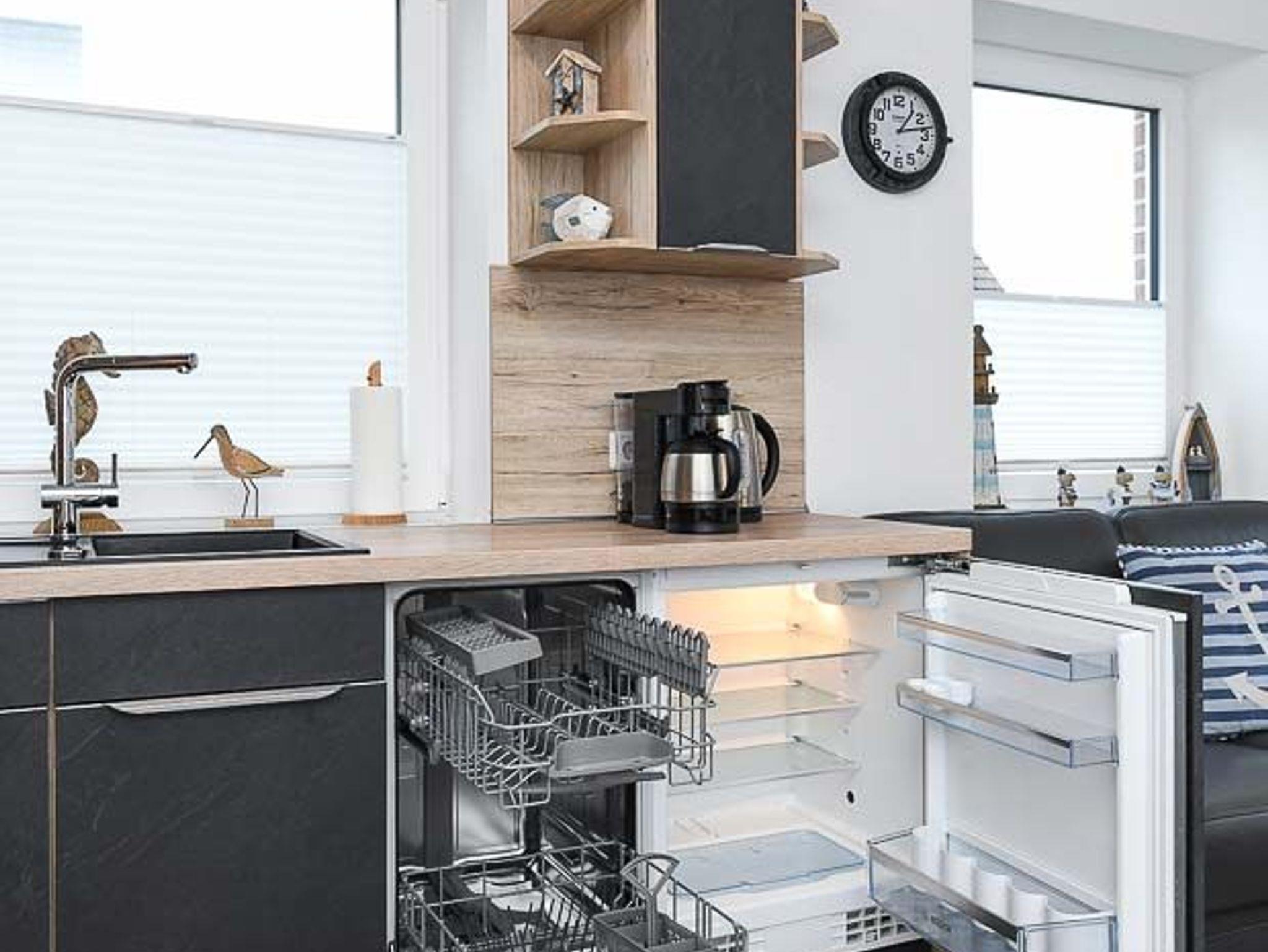 Modernes Ferienhaus Lüttje Krabbe in ruhiger Lage mit Terrasse und zwei Bädern, ideal für Familien und Haustiere.