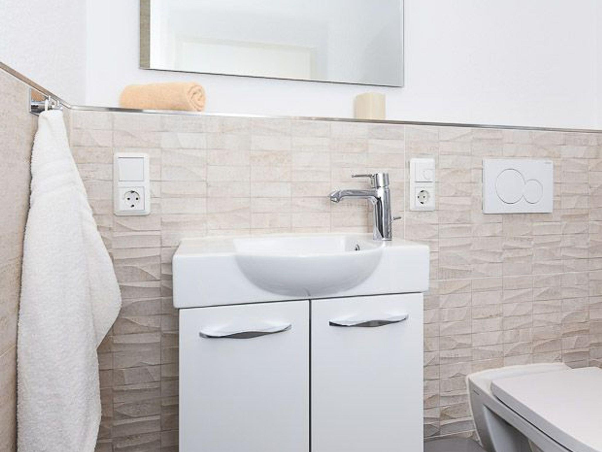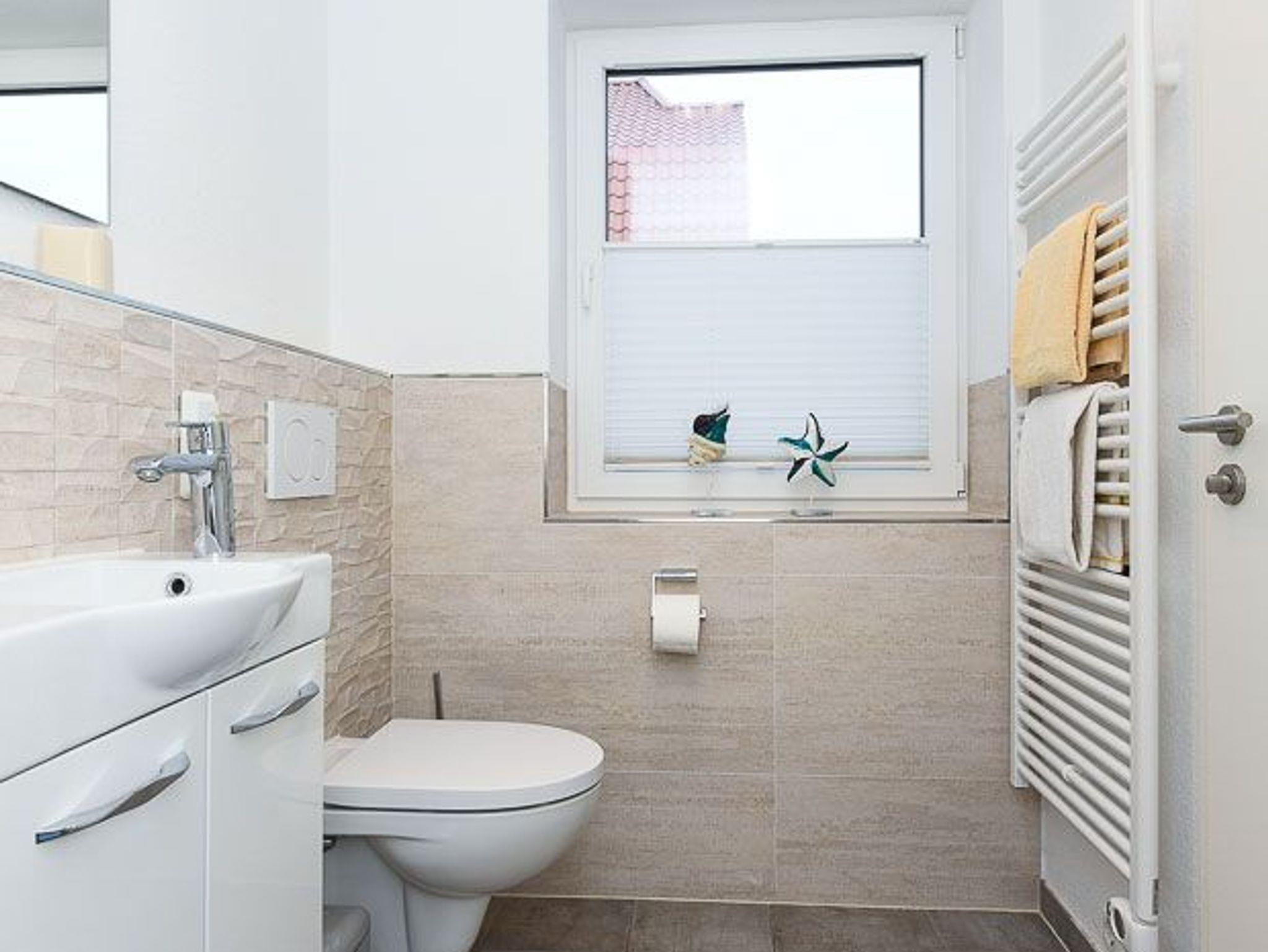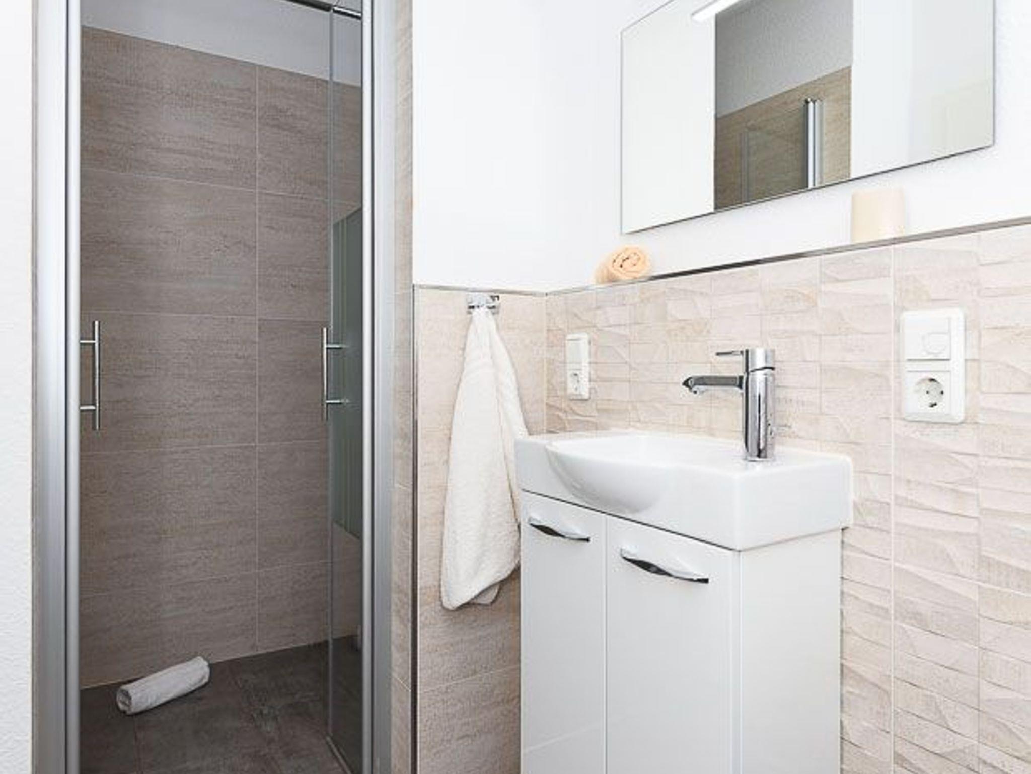 zweites Badezimmer mit Dusche, Waschtisch und WC