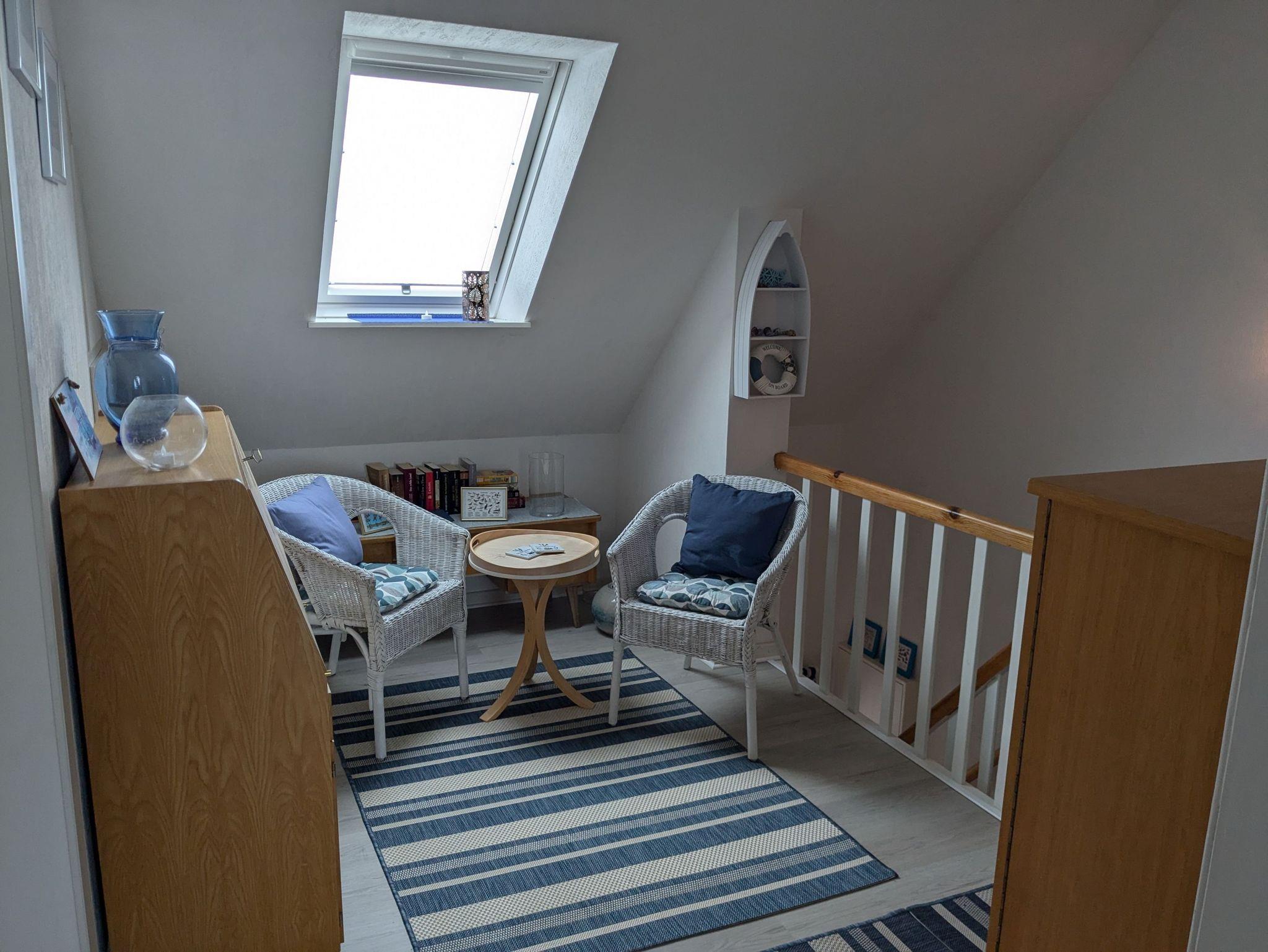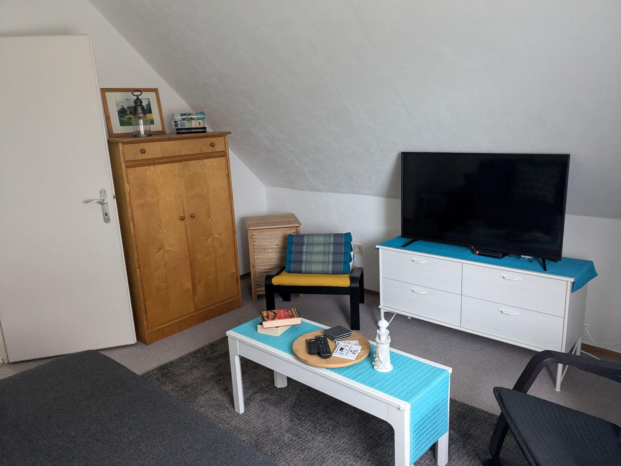 1-6 Personen finden auf rund 140 qm in 2 gemütlichen Zimmern mit Doppelbett (200cmx200cm) und 1 Zimmer mit Queensize-Doppelbett (160cm x 200cm) Platz. Zusätzlich steht noch 1 Zimmer mit bequemem Schlafsofa (140cm x 200cm) zur Verfügung. Ein Babybett sowie ein Hochstuhl für die kleinen Gäste sind ebenfalls vorhanden. Hunde sind herzlich willkommen. Unser Haus ist gemütlich im Mix and Match Stil eingerichtet, der alte und neue Möbelstücke vereint. Es ist voll ausgestattet, mit kostenlosem WLAN und viel Platz, Spülmaschine, Gefrierschrank, Heißluftfritteuse, Backofen, 2 x Flachbild-TV, Waschmaschine und Haartrockner. Der Wintergarten mit Blick in den Obstgarten lädt zum gemeinsamen Frühstück ein. Ein Strandkorb im Wintergarten sowie eine Leseecke im OG sind die perfekten Rückzugsorte zum Verweilen mit einem guten Buch. Im Wohnzimmer sorgt der Kachelofen für eine heimelige Atmosphäre. Der große Tisch im Essbereich ist hervorragend zum gemeinsamen Essen, für einen geselligen Spieleabend oder auch als Team-Arbeitsplatz geeignet. Das Haus verfügt über ein Gäste-WC und ein großes Badezimmer mit Dusche und Badewanne.