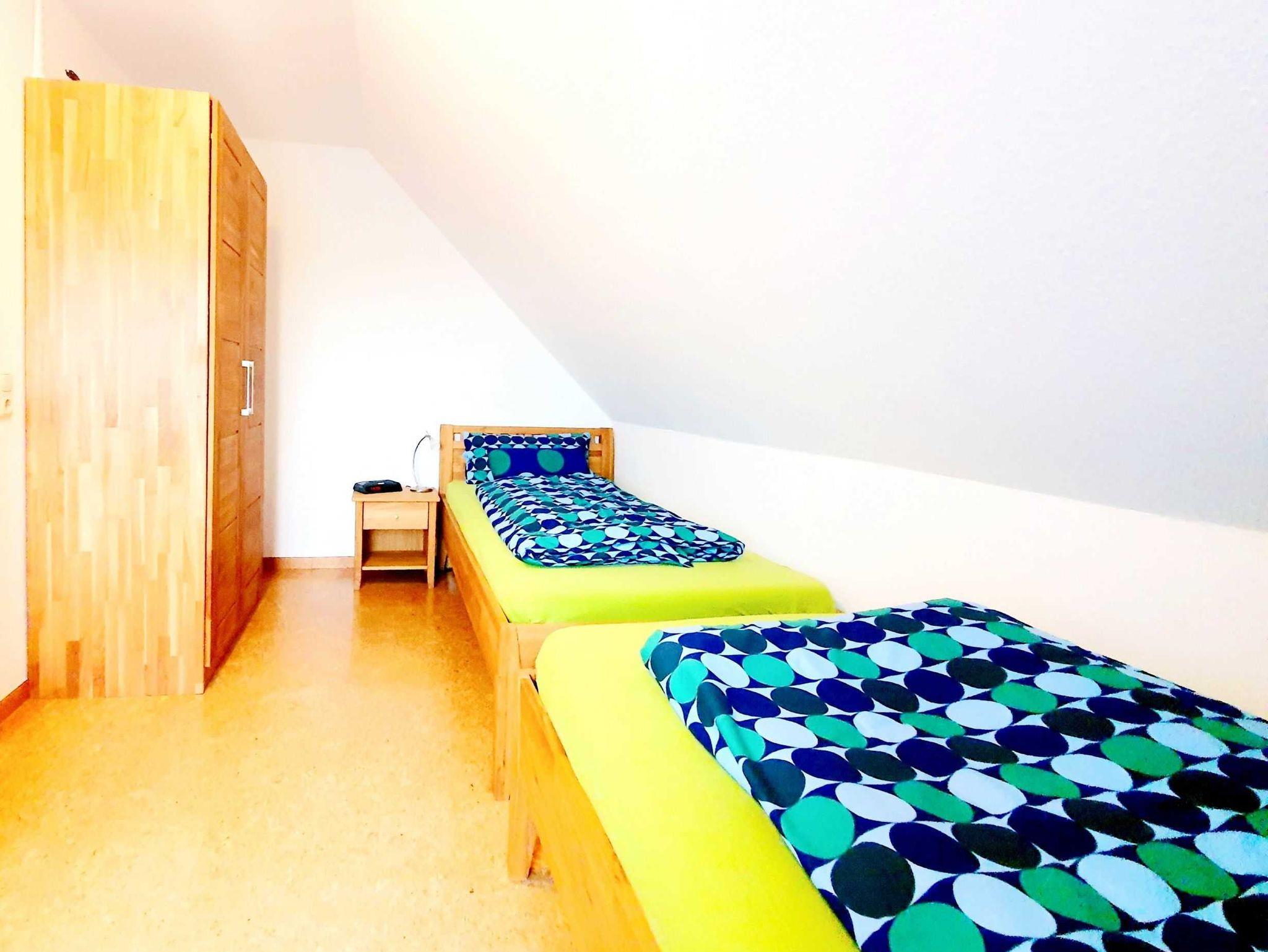 Dreas Huus ist geeignet für 2-6 Personen und mit fast 80 qm ausreichend groß für einen entspannten Ferienaufenthalt. Im Erdgeschoss empfängt sie ein Wohn- und Esszimmer mit integrierter Küche. Von hier aus haben sie den direkten Zugang zur Terrasse. Auch ein kleines WC findet sich im Eingangsbereich. Eine ausreichend große Treppe führt sie in die zwei Schlafräume und ein Badezimmer mit Dusche, Waschmaschine und Wäschetrockner. Ein fünfter Schlafplatz findet sich auf einer bequemen Schlafcouch im Wohnzimmer.