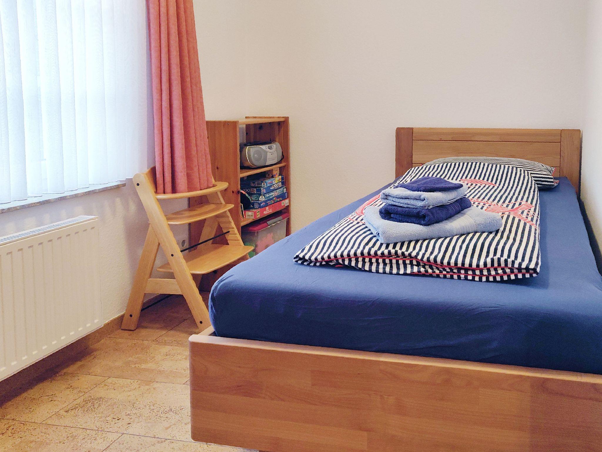 Die komfortabel eingerichtete Ferienwohnung für bis zu 3 Personen (auch 3 Erwachsene) mit zusätzlichem Kleinkind liegt im Erdgeschoss eines freistehenden Hauses mit nur 2 Wohnungen. Das 2. Schlafzimmer ist mit einem komfortablen Einzelbett ausgestattet, das auch perfekt für eine erwachsene Person geeignet ist. Die Wohnung verfügt über eine sonnige Terrasse und auch der Garten steht Ihnen zur Verfügung und lädt zur Erholung ein.