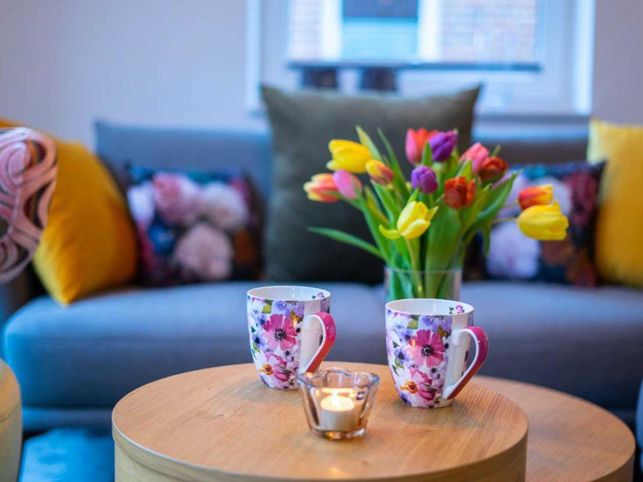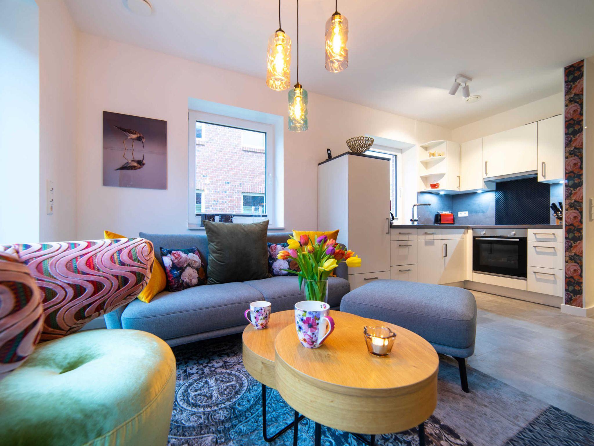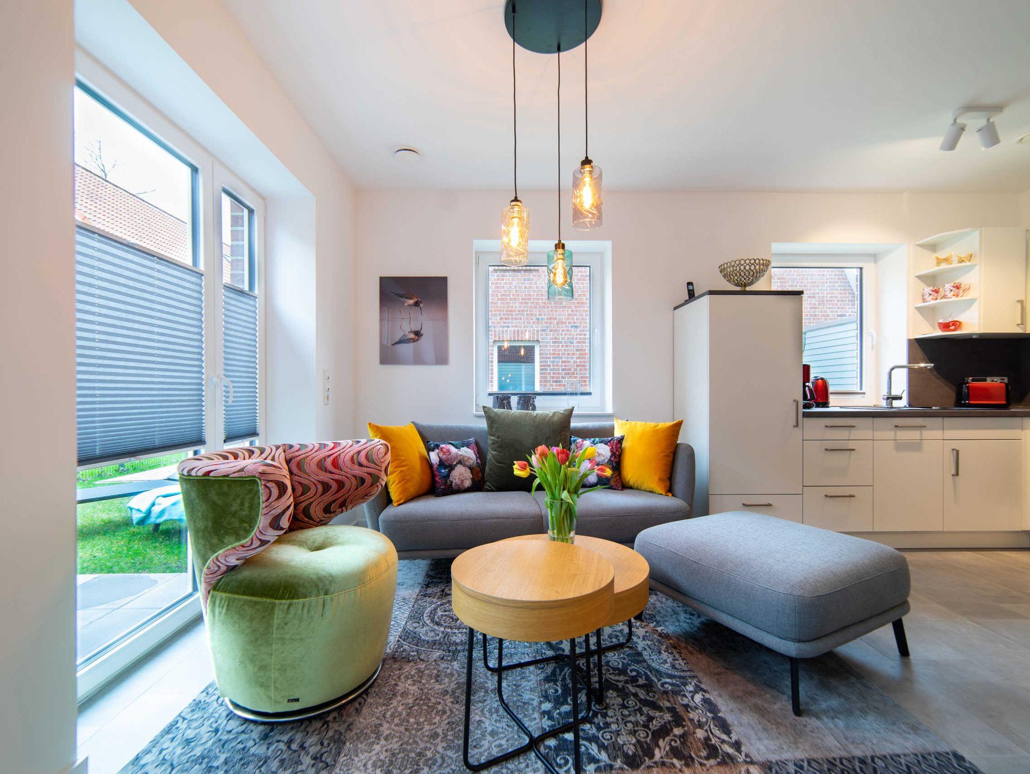 Im Wohnzimmer laden ein gemütliches Sofa und Sessel, ein ausziehbarer Esstisch sowie eine Auswahl an Spielen und Büchern zum Verweilen und zu geselligen (Familien) Abenden ein. Eine hochwertige Multimedia-Ausstattung mit diversen Anschlussmöglichkeiten und Smart TV sorgt im Wohn- und in den Schlafzimmern für zusätzliche Unterhaltung.