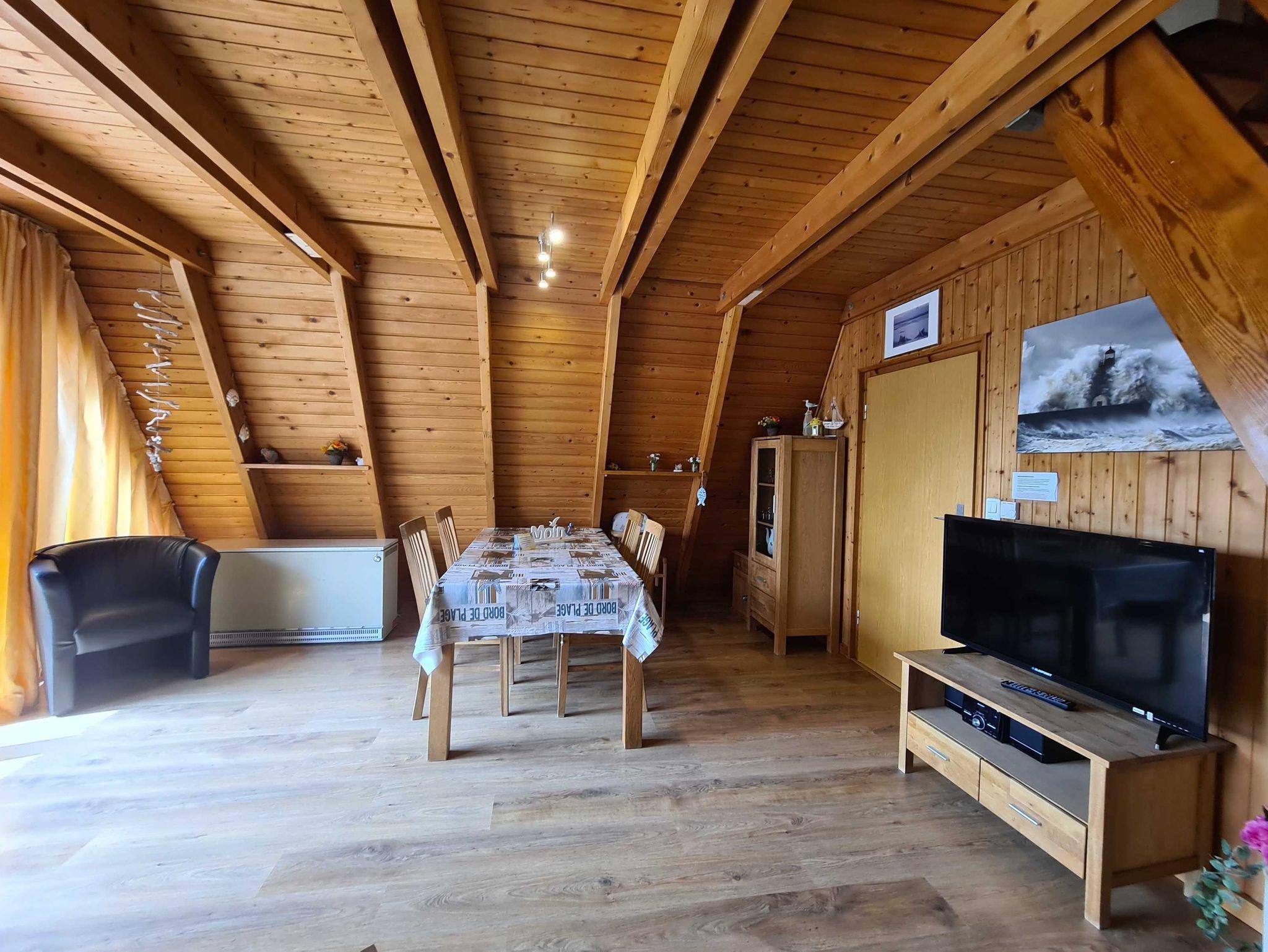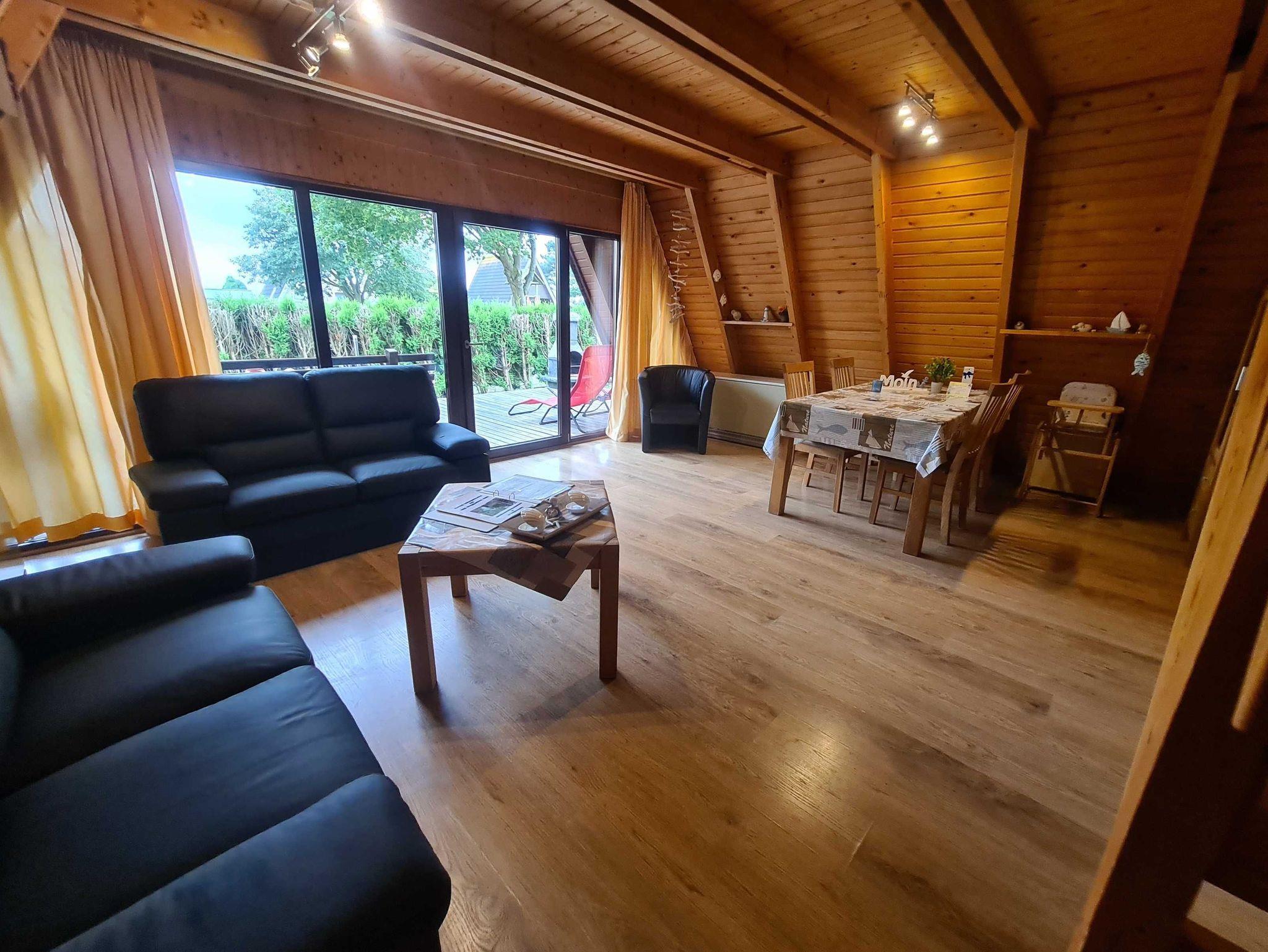 Das Ferienhaus Stern besitzt eine elegante Atmosphäre, einen stillvollen Wohn- Essbereich mit Ledergarnitur, Smart TV, Stereoanlage, Telefon, WLAN.