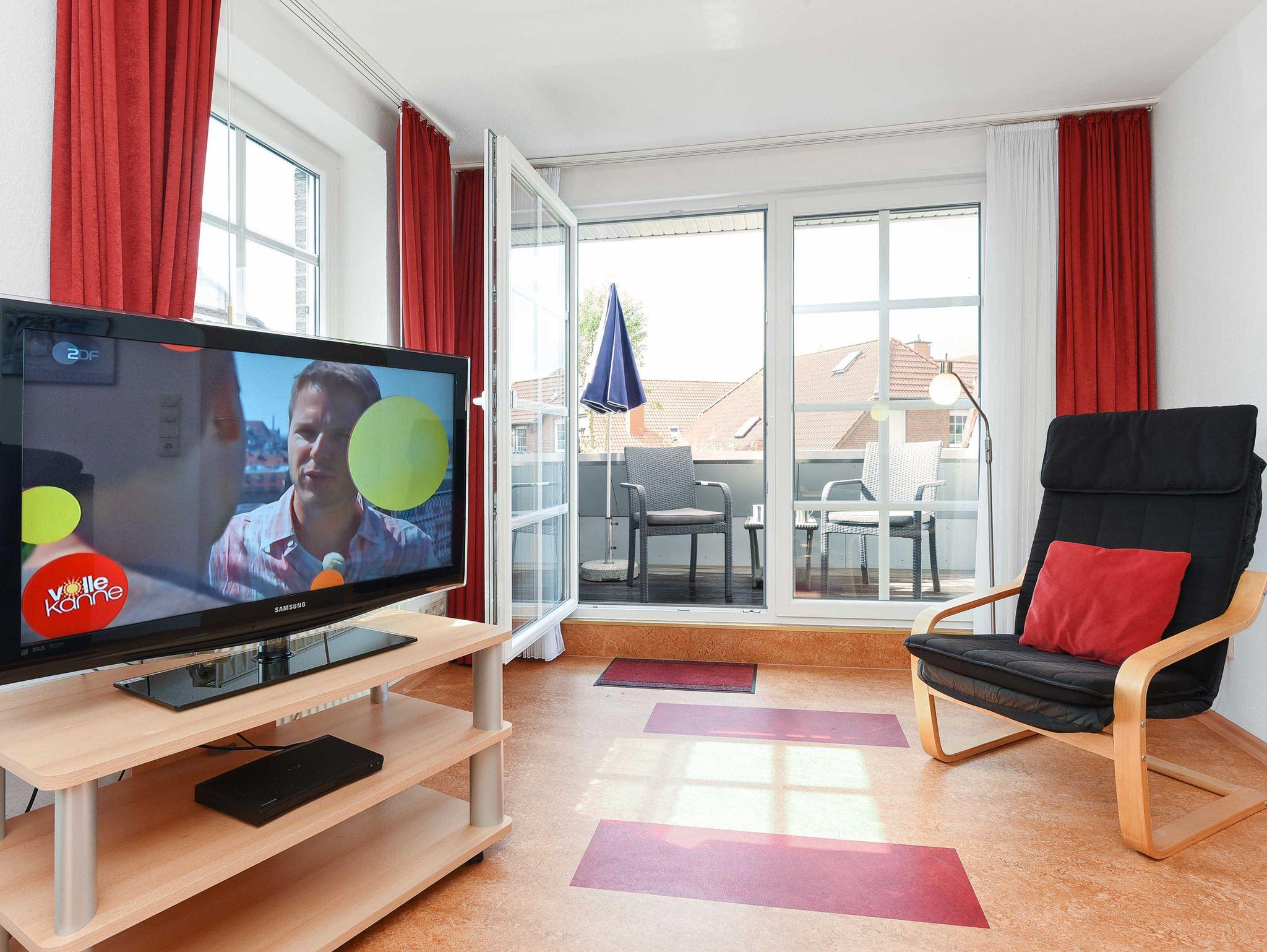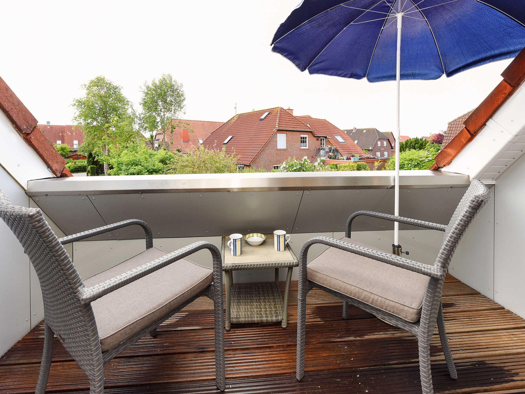 Die Ferienwohnung Watt und Weite ist hell und freundlich gestaltet, gemütlich eingerichtet sowie sehr gut ausgestattet, z. B. verfügt sie über einen kostenlosen WLAN Zugang, eine Waschmaschine, eine voll ausgestattete Küchen, sowie über einen möblierten Balkon.