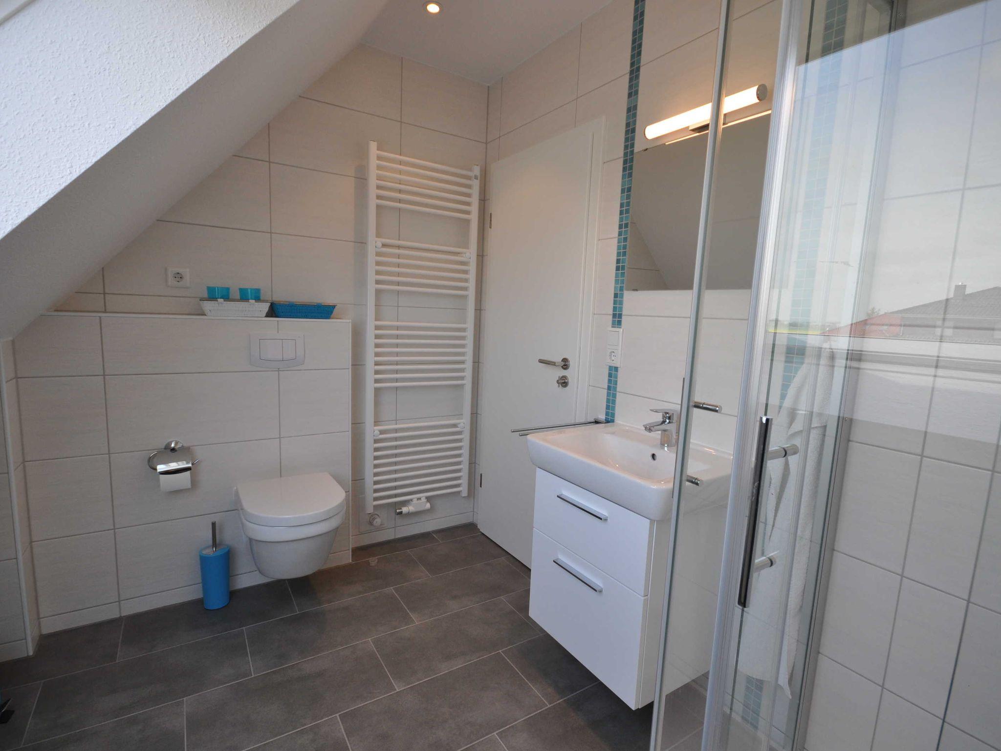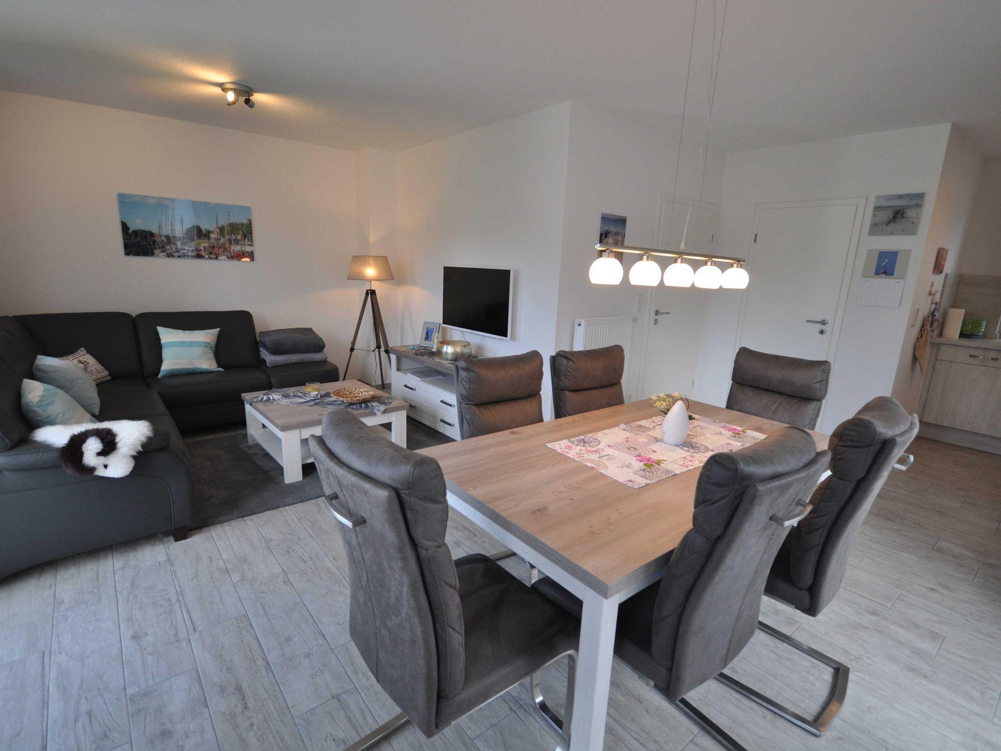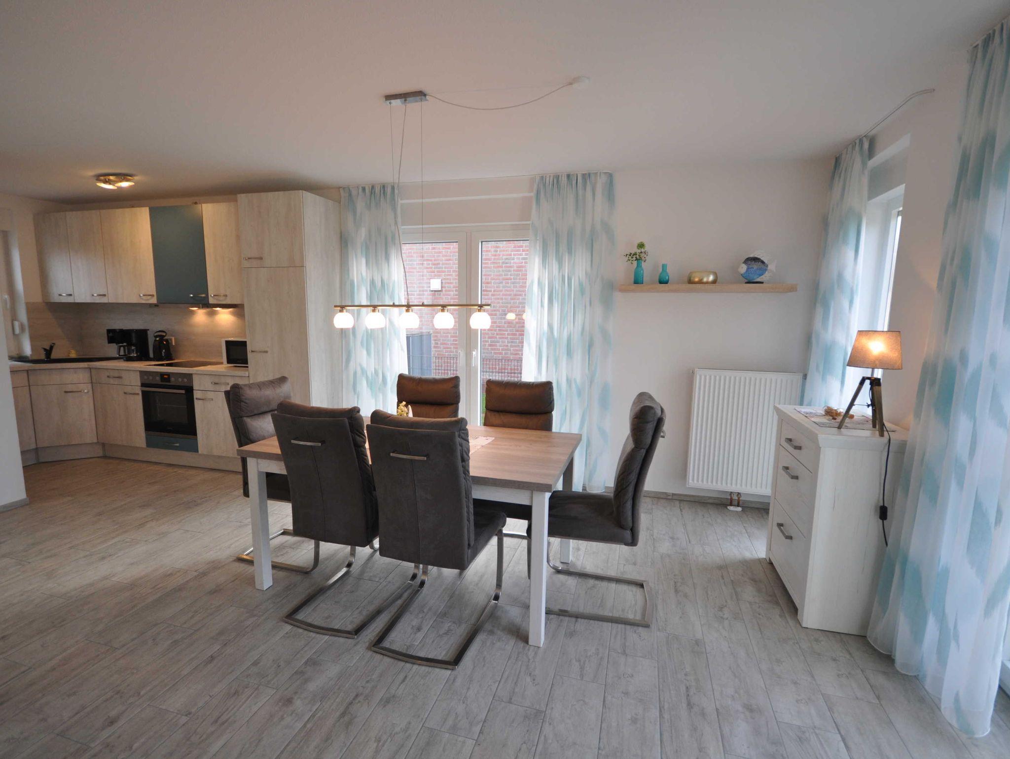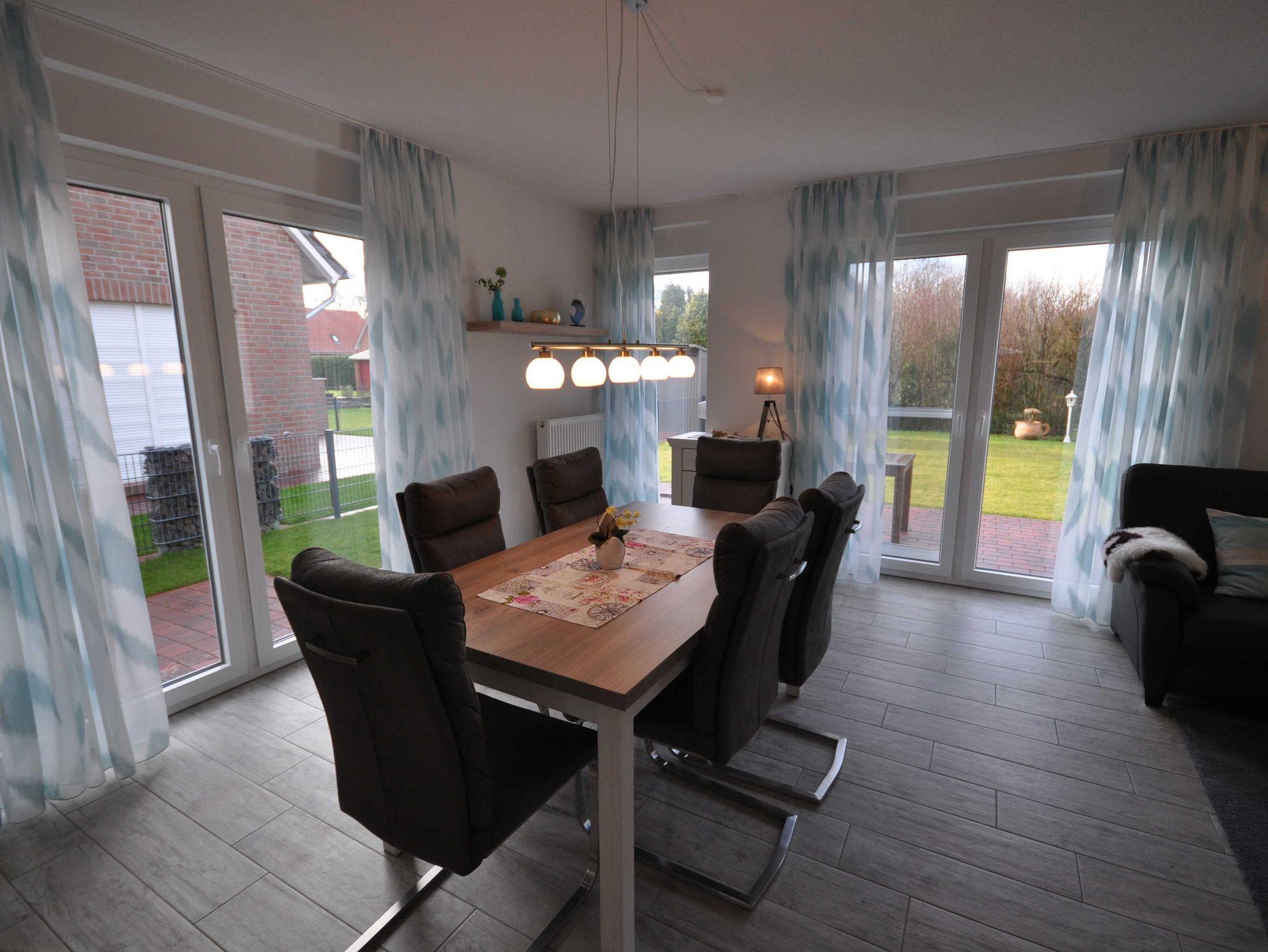 Im Erdgeschoss der ca. 76m² großen Doppelhaushälfte befindet sich ein großzügiger und freundlicher Bereich für Kochen, Essen und Wohnen. Zudem ist ein Gäste-WC vorhanden. Das Obergeschoss verfügt über drei Schlafzimmer (2 jeweils ein Doppelbett, ein Einzelbett) sowie über ein großzügiges Duschbad und bietet somit ausreichend Platz für die ganze Familie. Alle Fenster sind mit Rollläden ausgestattet und im gesamten Objekt sind Fliesen bzw. Laminat verlegt. WLAN steht Ihnen kostenfrei zur Verfügung. Eine hochwertige Ausstattung sorgt für entsprechenden Wohnkomfort.