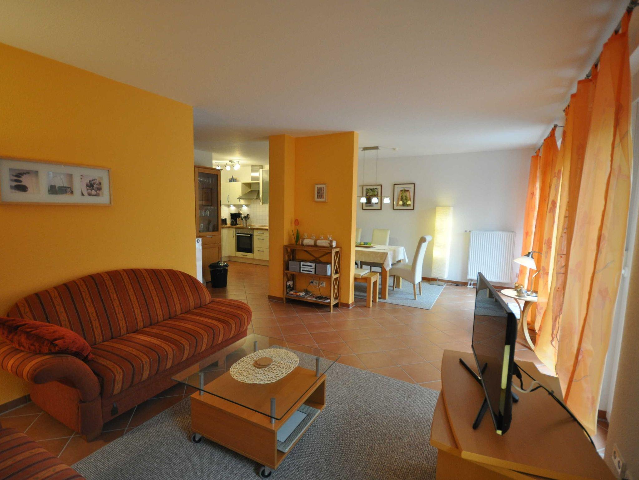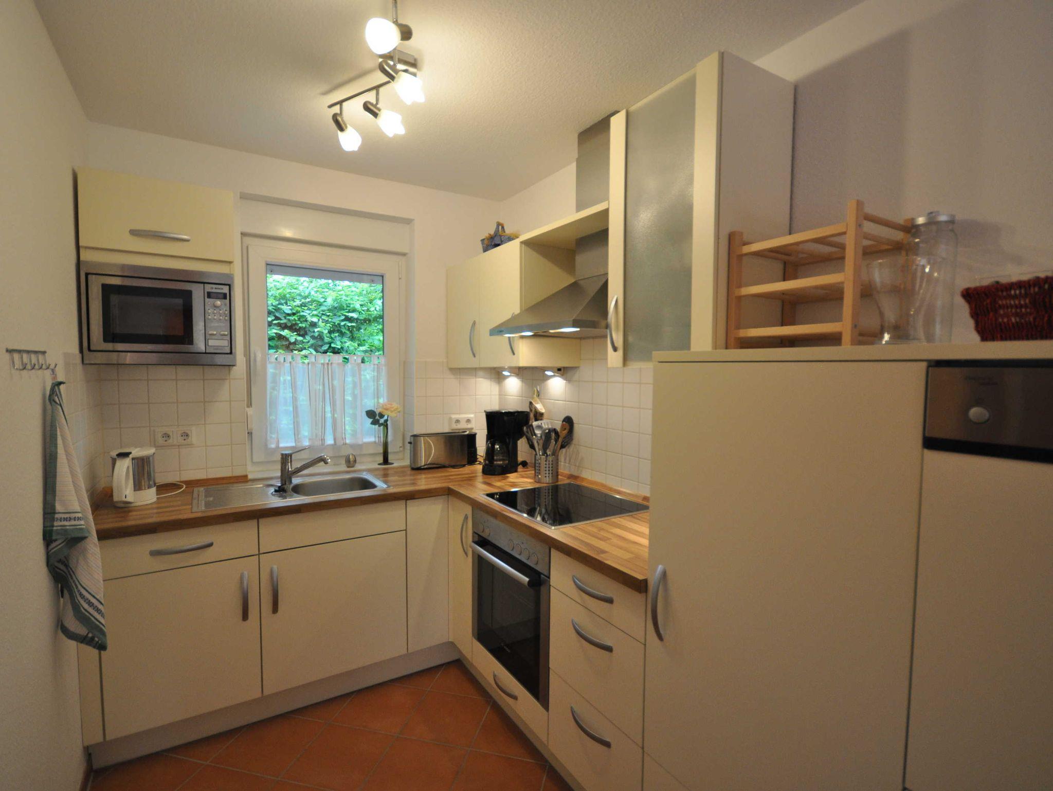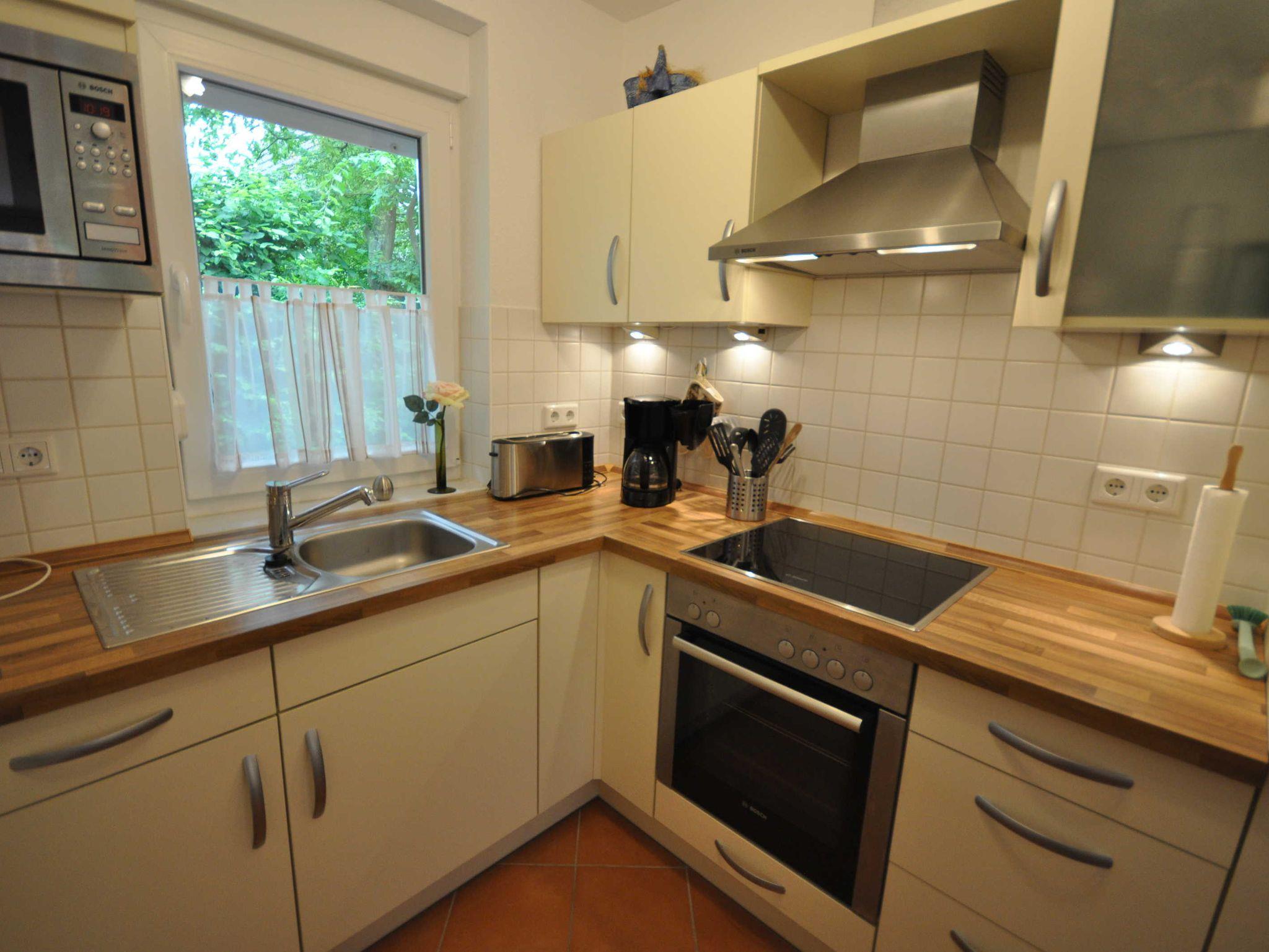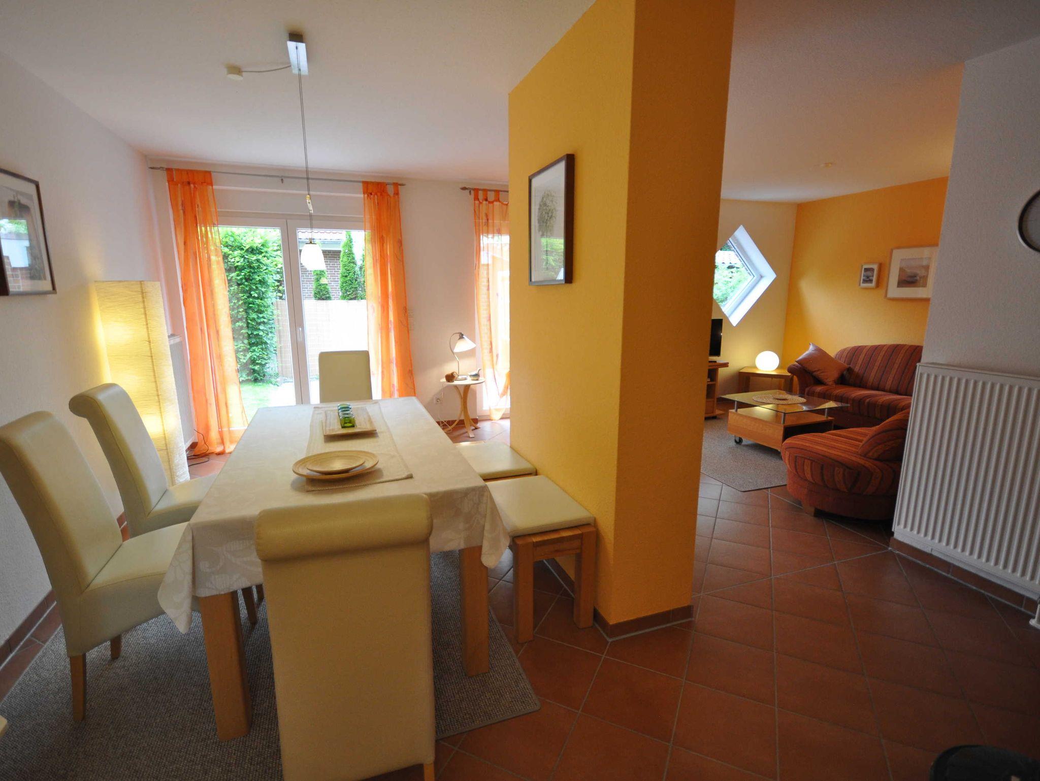 Das Reihenhaus verfügt im Erdgeschoss über einen großzügigen und hochwertig eingerichteten Wohn- und Essbereich mit offener Küche sowie über ein Gäste-WC. Eine offene Holztreppe führt vom Flur zum Obergeschoss. Hier befinden sich zwei Schlafzimmer (ein Schlafzimmer mit einem Doppelbett sowie ein Schlafzimmer mit zwei Einzelbetten) und ein Duschbad mit WC, Bodenerwärmung und Handtuchtrockner. Alle Fenster sind mit Rollläden, einige mit Insektenschutz ausgestattet. Eine hochwertige Ausführung und attraktive Ausstrahlung sorgen für Wohnqualität.