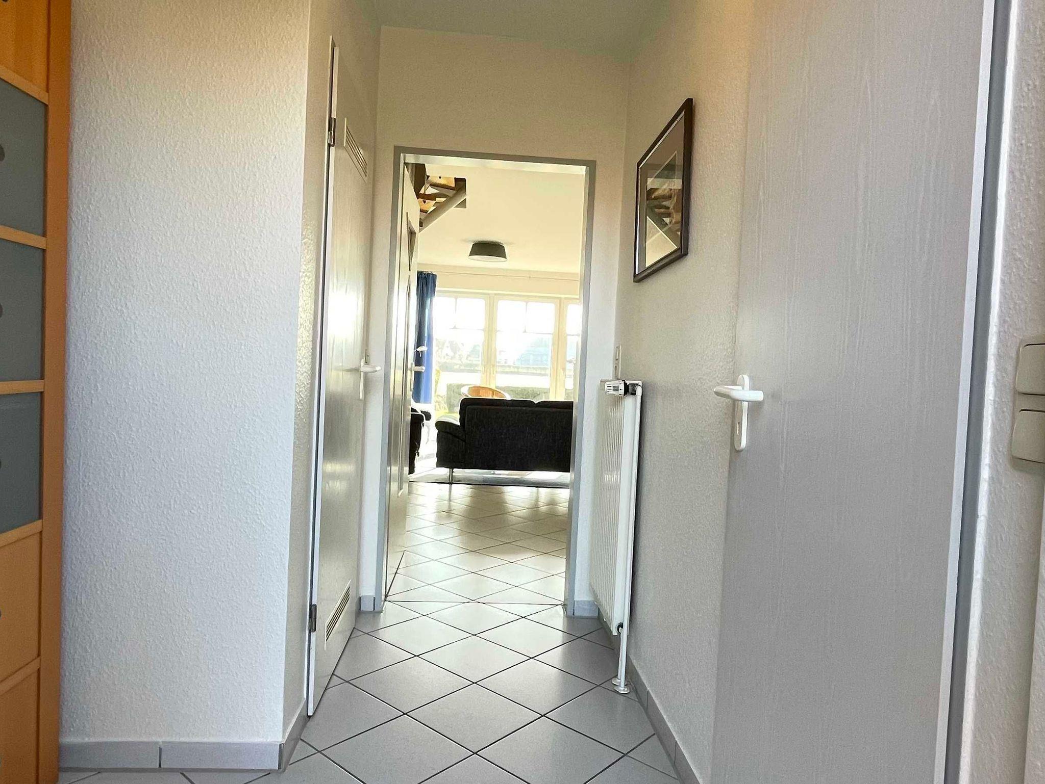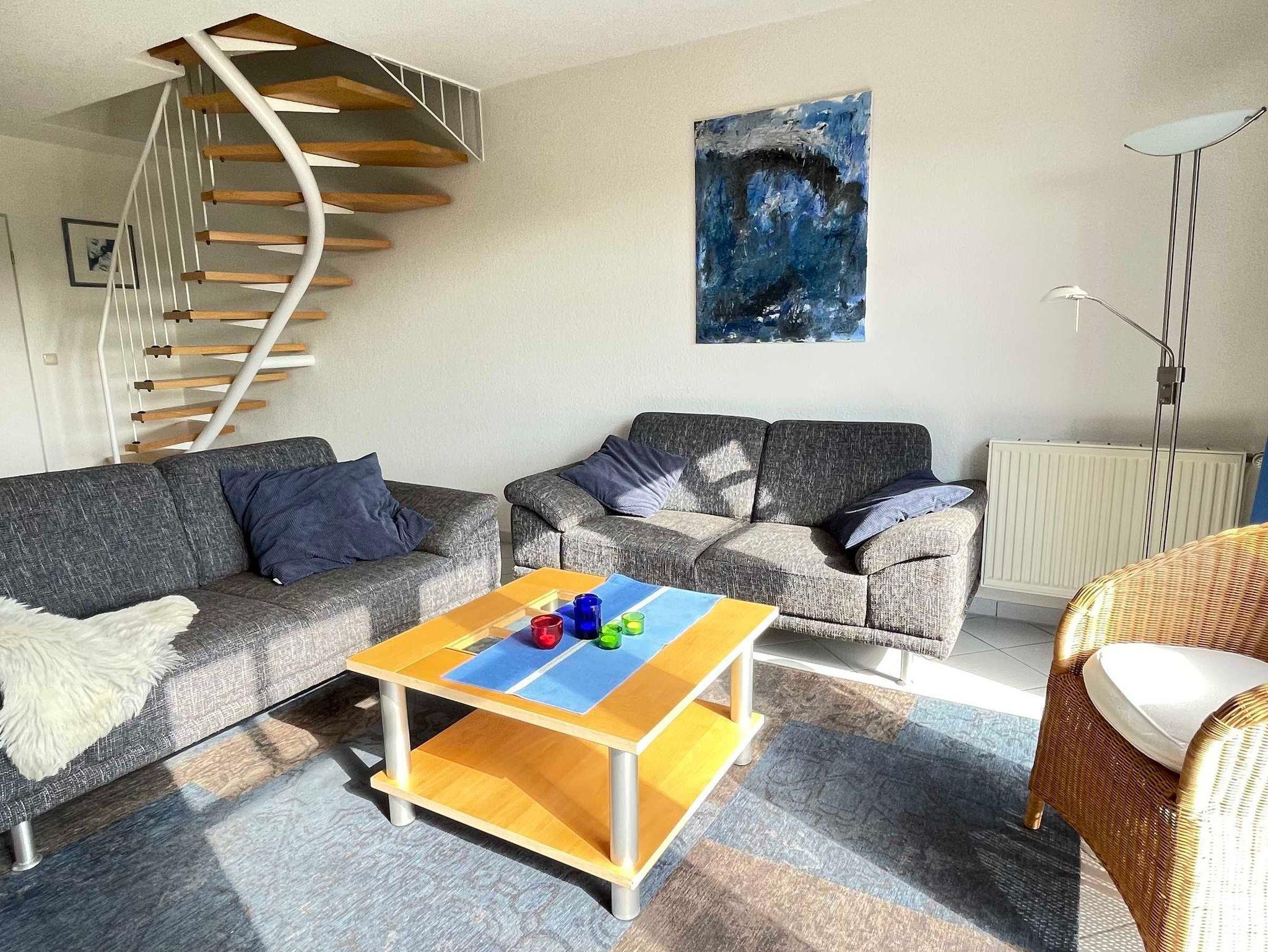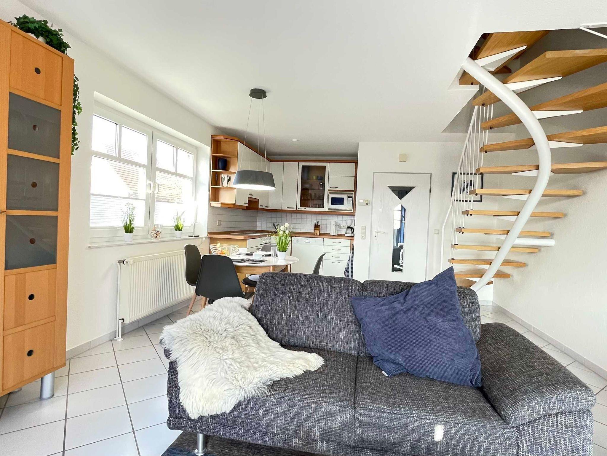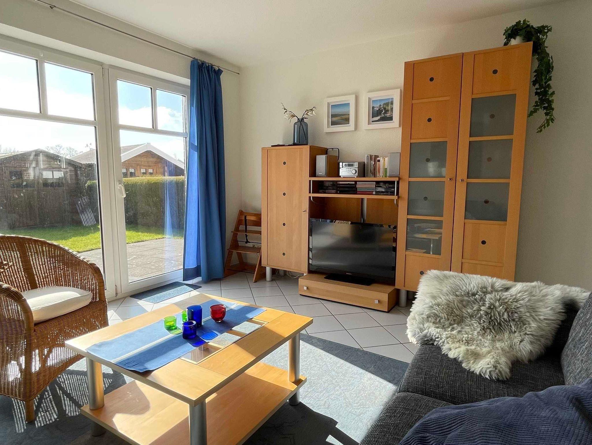 Im Erdgeschoss des ca. 70m² großen Reihenhauses befinden sich ein großzügiger und geschmackvoll eingerichteter Wohn- und Essbereich mit einer Küchenzeile sowie ein Gäste-WC. Vom Wohnraum führt eine offene Treppe ins Obergeschoss. Hier stehen ein Schlafzimmer mit einem Doppelbett, ein Schlafzimmer mit zwei Einzelbetten und ein Duschbad mit WC zur Verfügung. Die Böden im Erdgeschoss sind mit Fliesen ausgelegt.