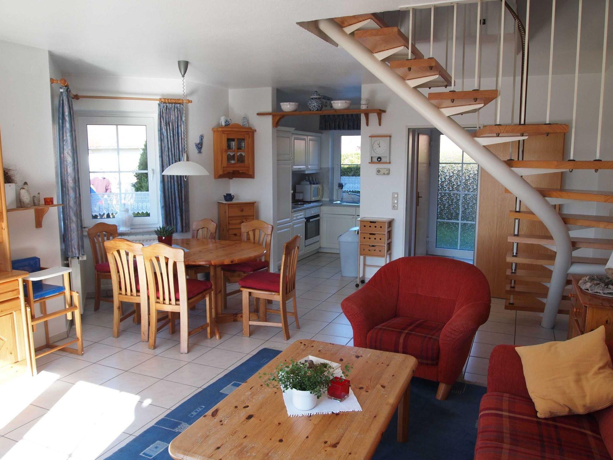 Das Haus liegt direkt am Feldrand mit freiem Blick auf den Deich. Der große Garten mit seiner Sonnenterasse lädt zum Ruhen und Erholen ein. Gartenmöbel und Sonnenschirm stehen zur Verfügung. Im Untergeschoss des Hauses finden Sie die gut ausgestattete Küche; Backofen, Mikrowelle, Kühlschrank mit Gefrierfach, Kaffeemaschine etc. Ein großzügiges kombiniertes Wohn- und Esszimmer mit schönem Mobiliar, ein Gäste-WC und einen Abstellraum. Im Obergeschoss des Hauses sind 2 Schlafzimmer mit 2 und 3 Betten sowie das Bad, Waschmaschine vorhanden. Der Parkplatz liegt direkt auf dem Grundstück. W-LAN ist selbstverständlich vorhanden. Bettwäsche auf Anfrage direkt beim Vermieter buchbar.