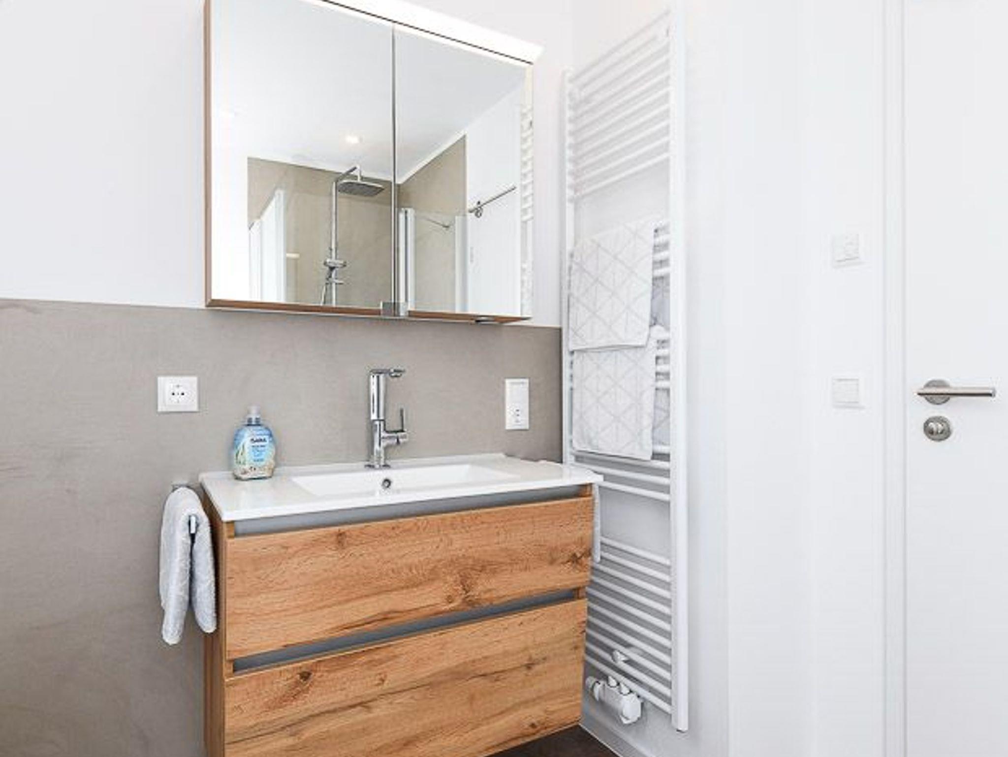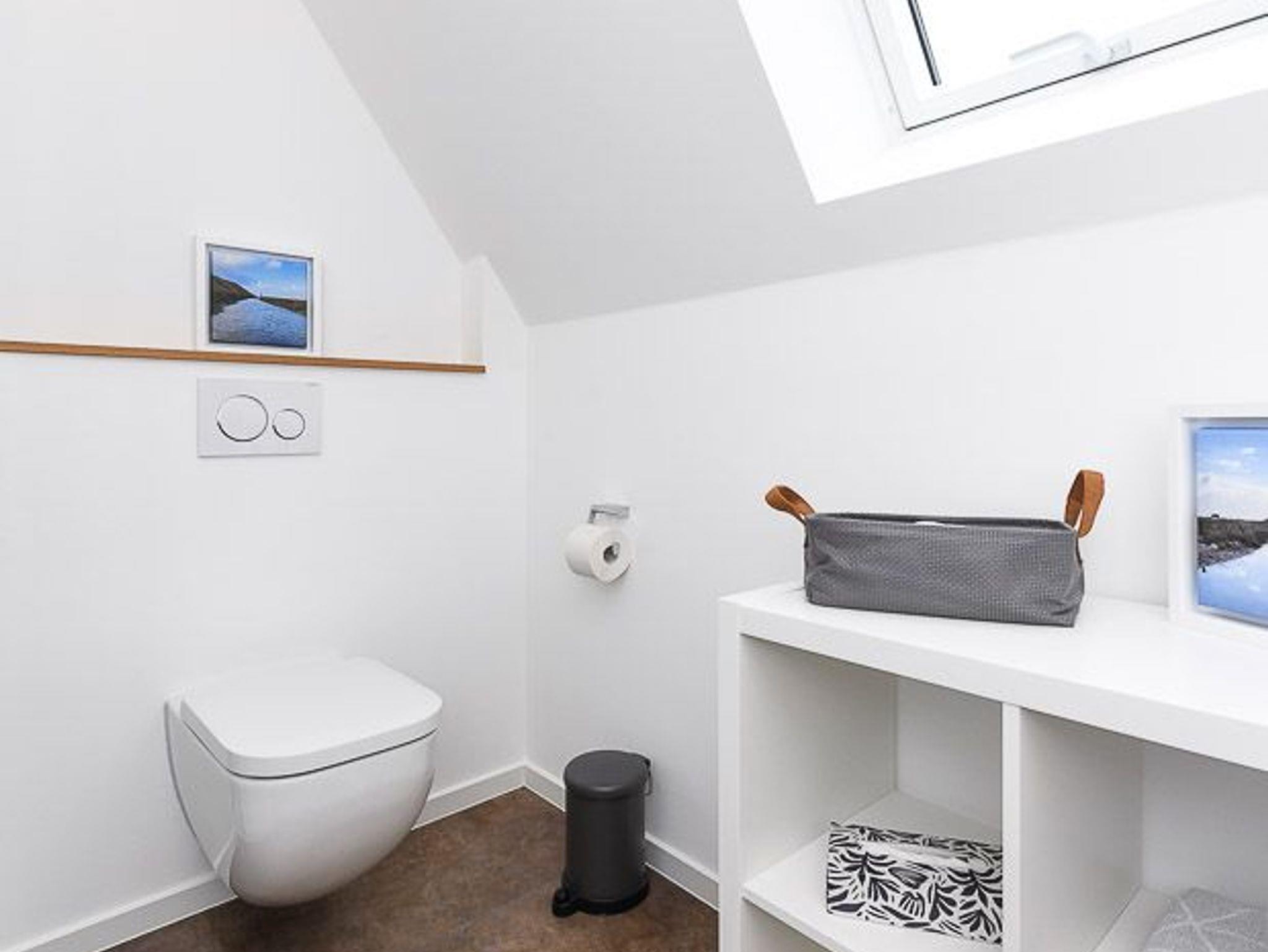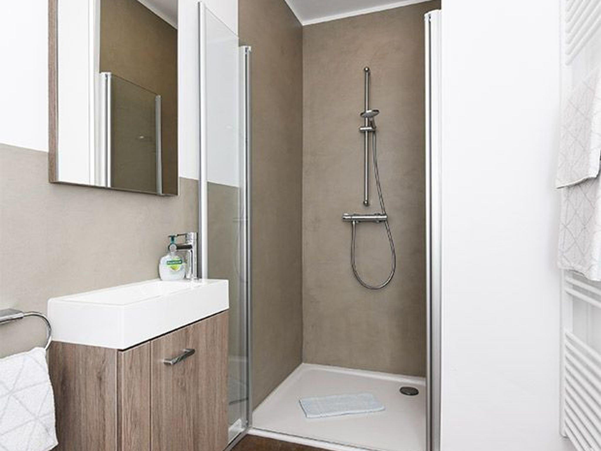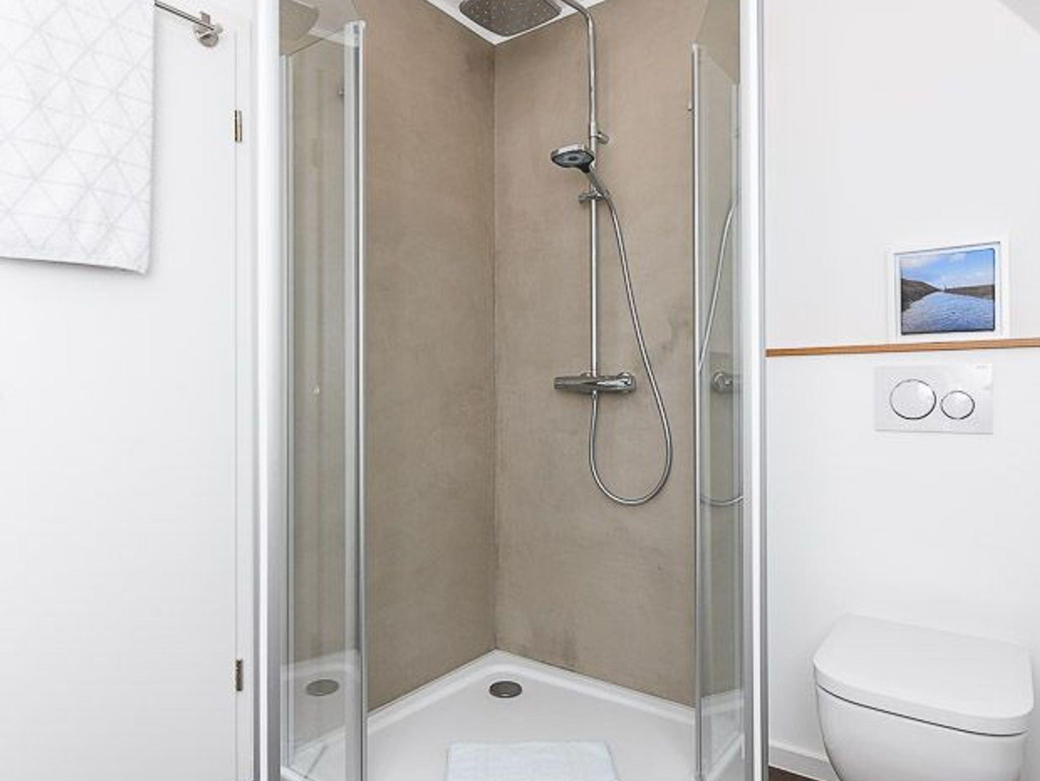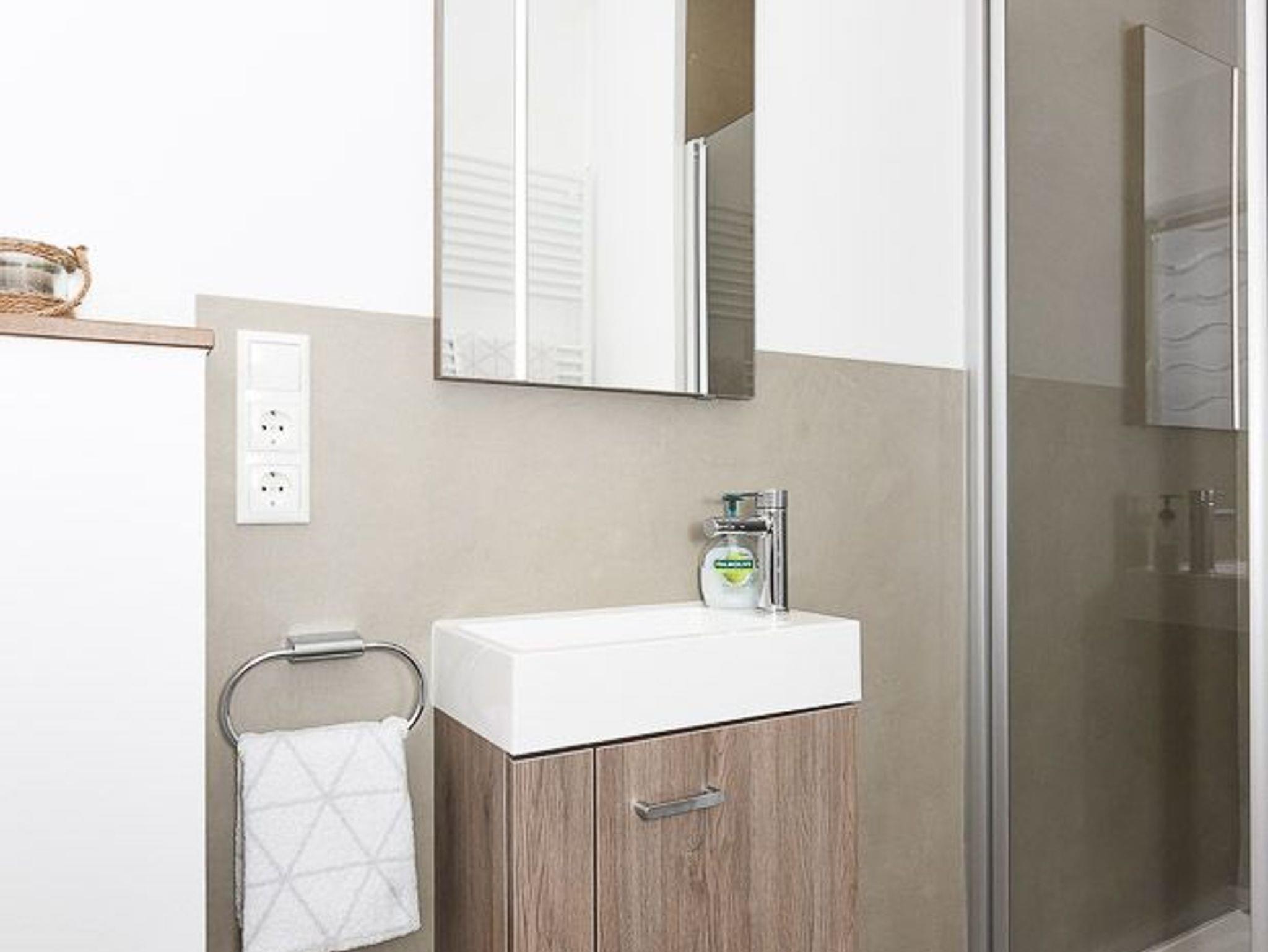 zweites Badezimmer mit Dusche, Waschtisch und WC