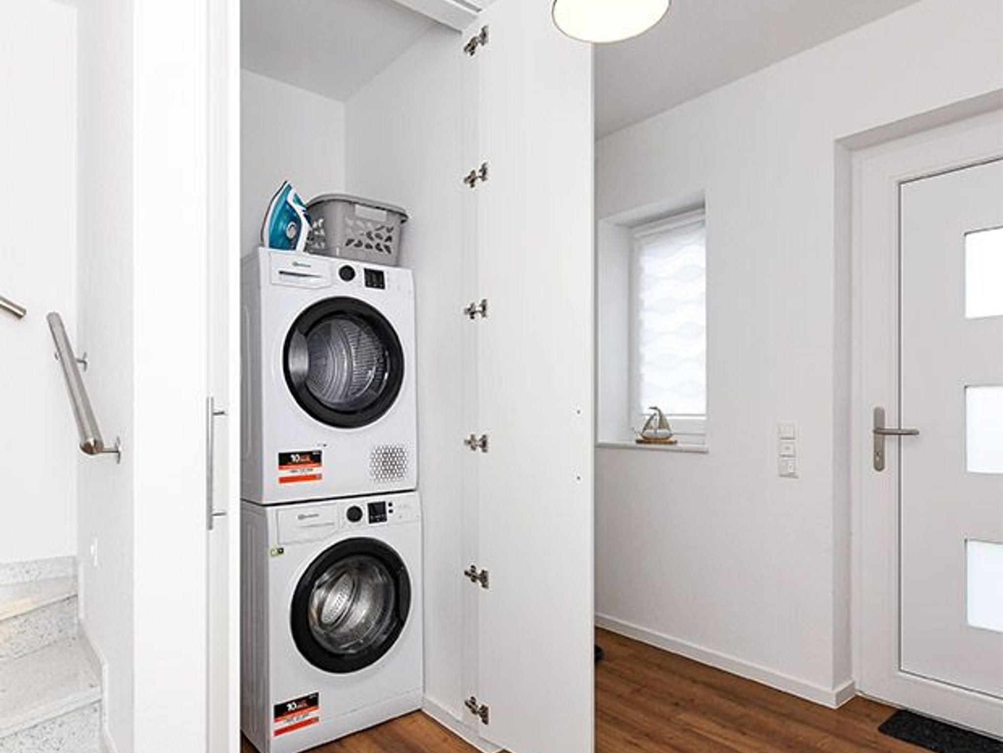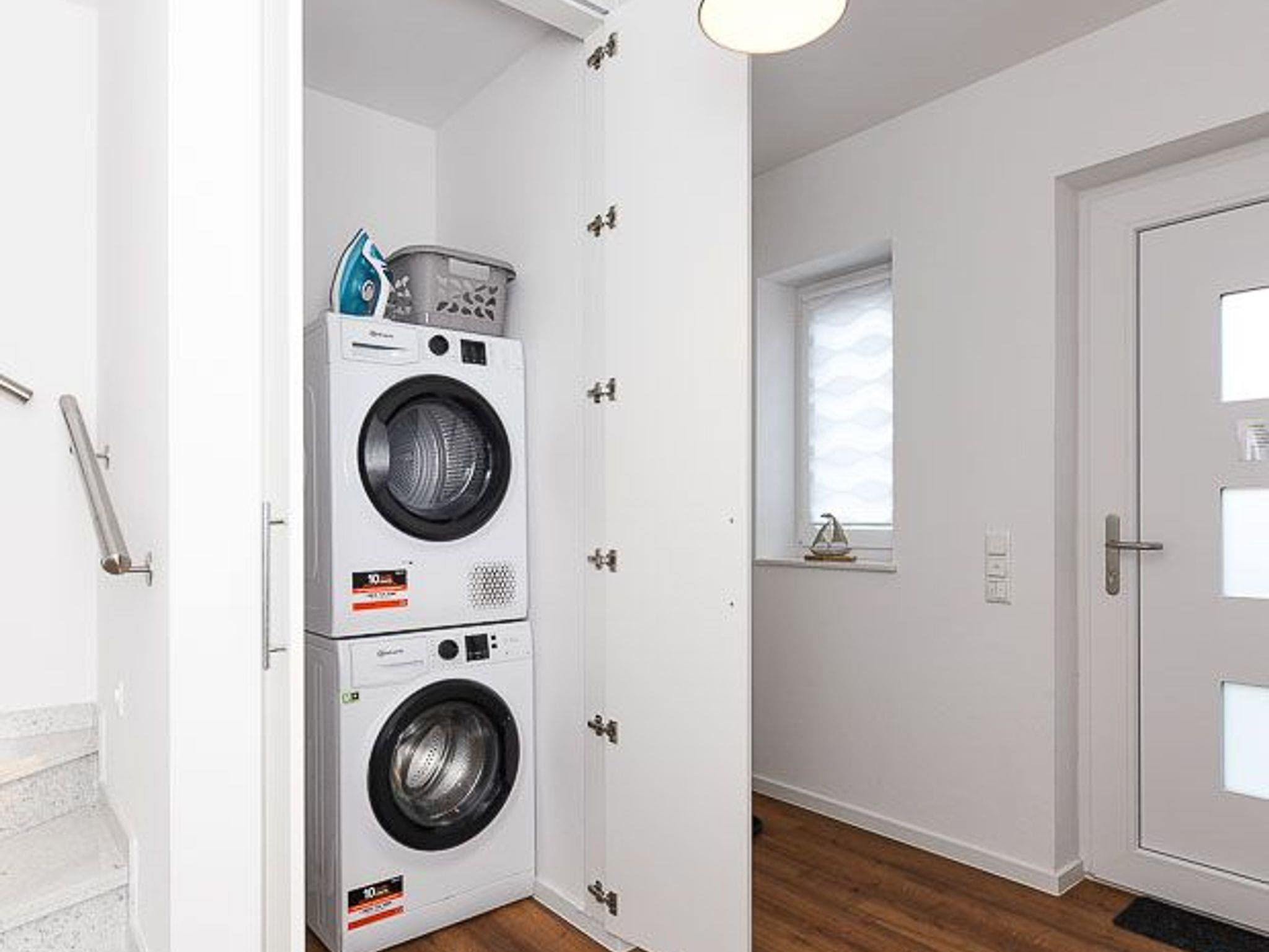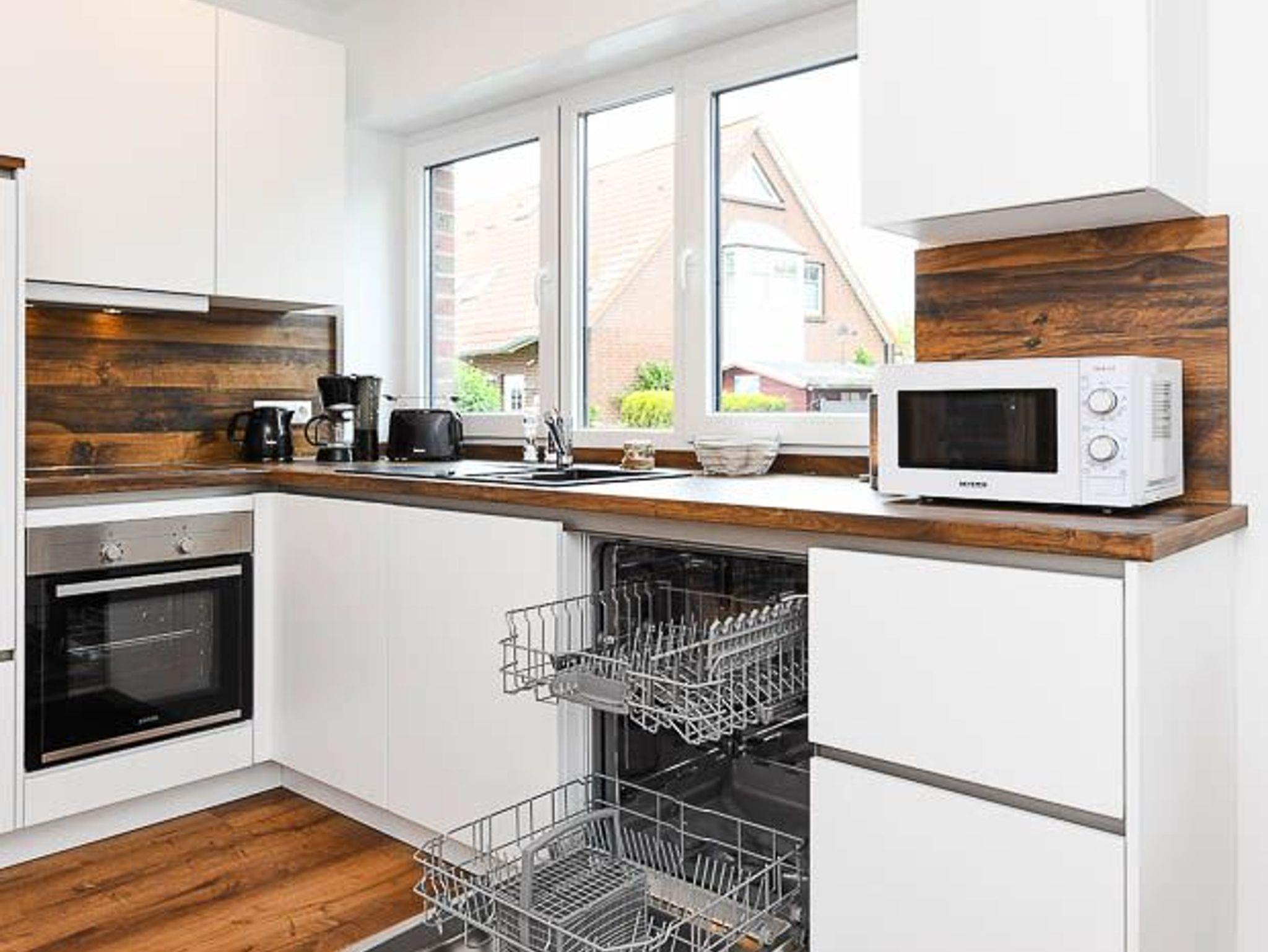 Das Ferienhaus ist modern-gemütlich, hell und freundlich gestaltet und eingerichtet sowie äußerst hochwertig mit viel Liebe zum Detail ausgestattet. Es verfügt zum Beispiel über eine Terrasse mit Strandkorb, über eine ausgestattete moderne Küche mit Geschirrspülmaschine und Mikrowelle, und es stehen Waschmaschine und Wäschetrockner zum Benutzen bereit.