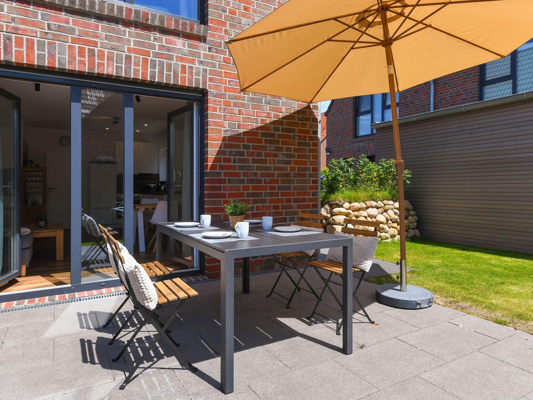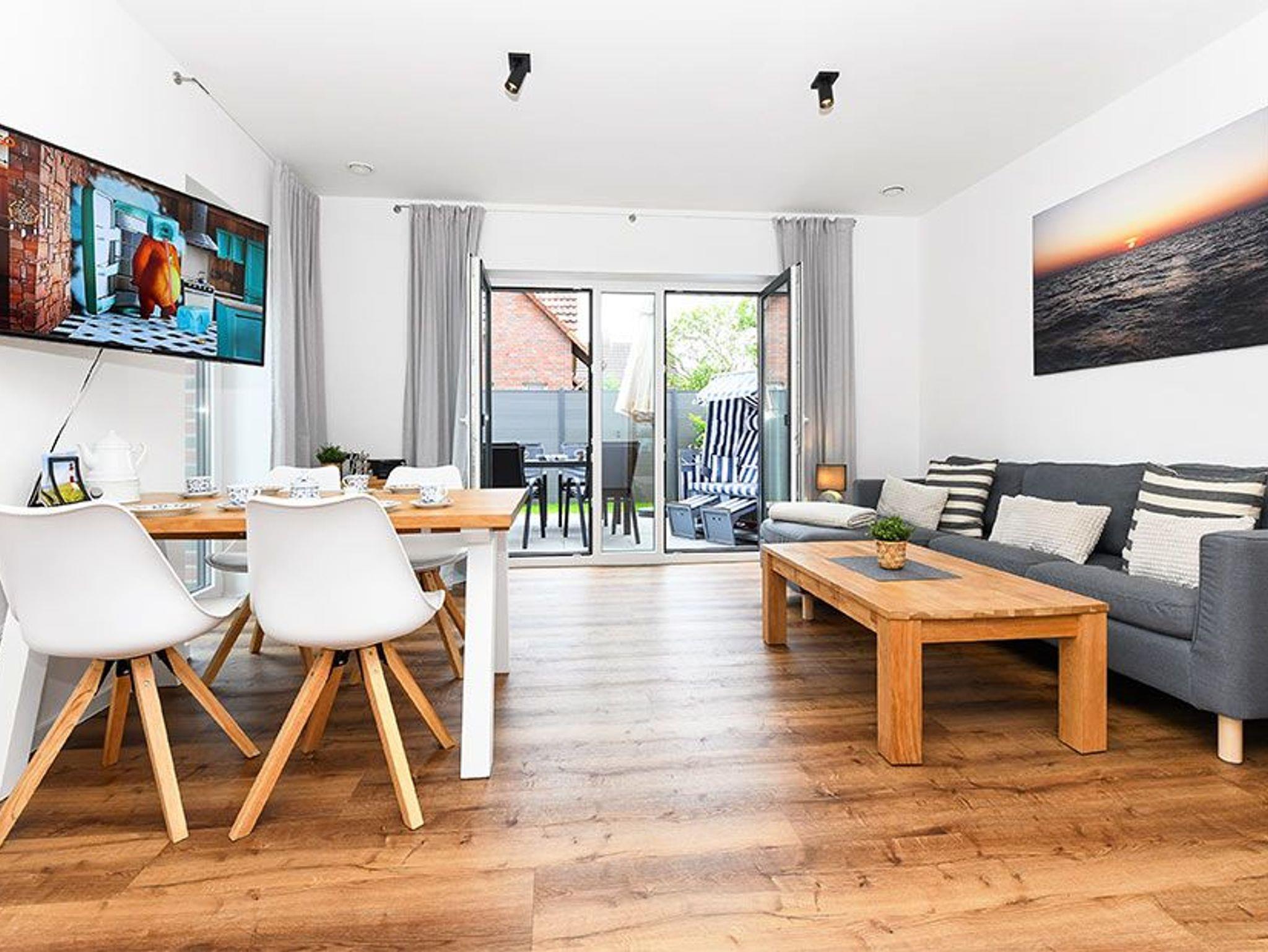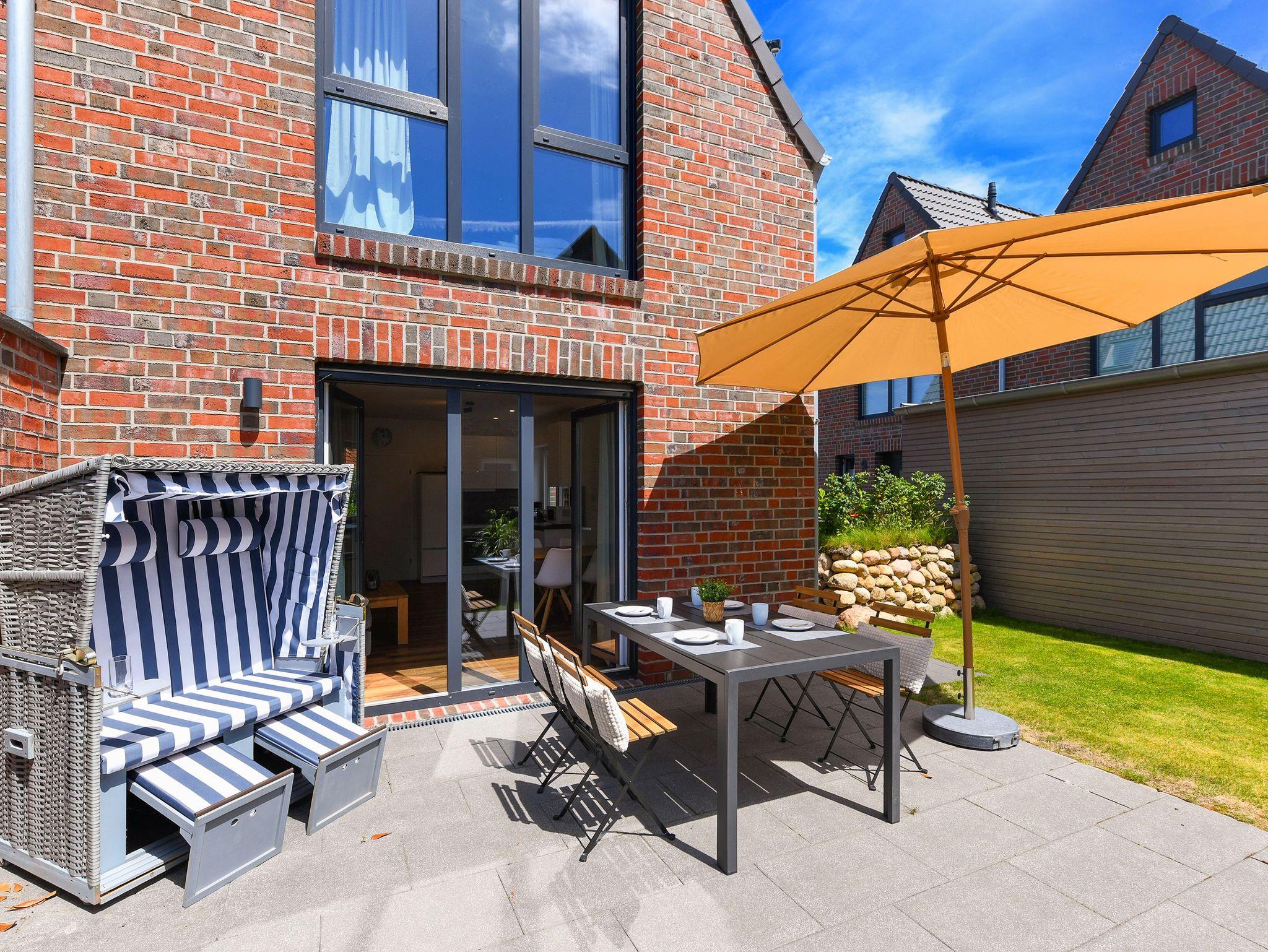 Modernes, gemütliches Ferienhaus Fischerstuuv in Carolinensiel-Harlesiel mit Terrasse und hochwertiger Ausstattung für einen entspannten Nordseeurlaub.