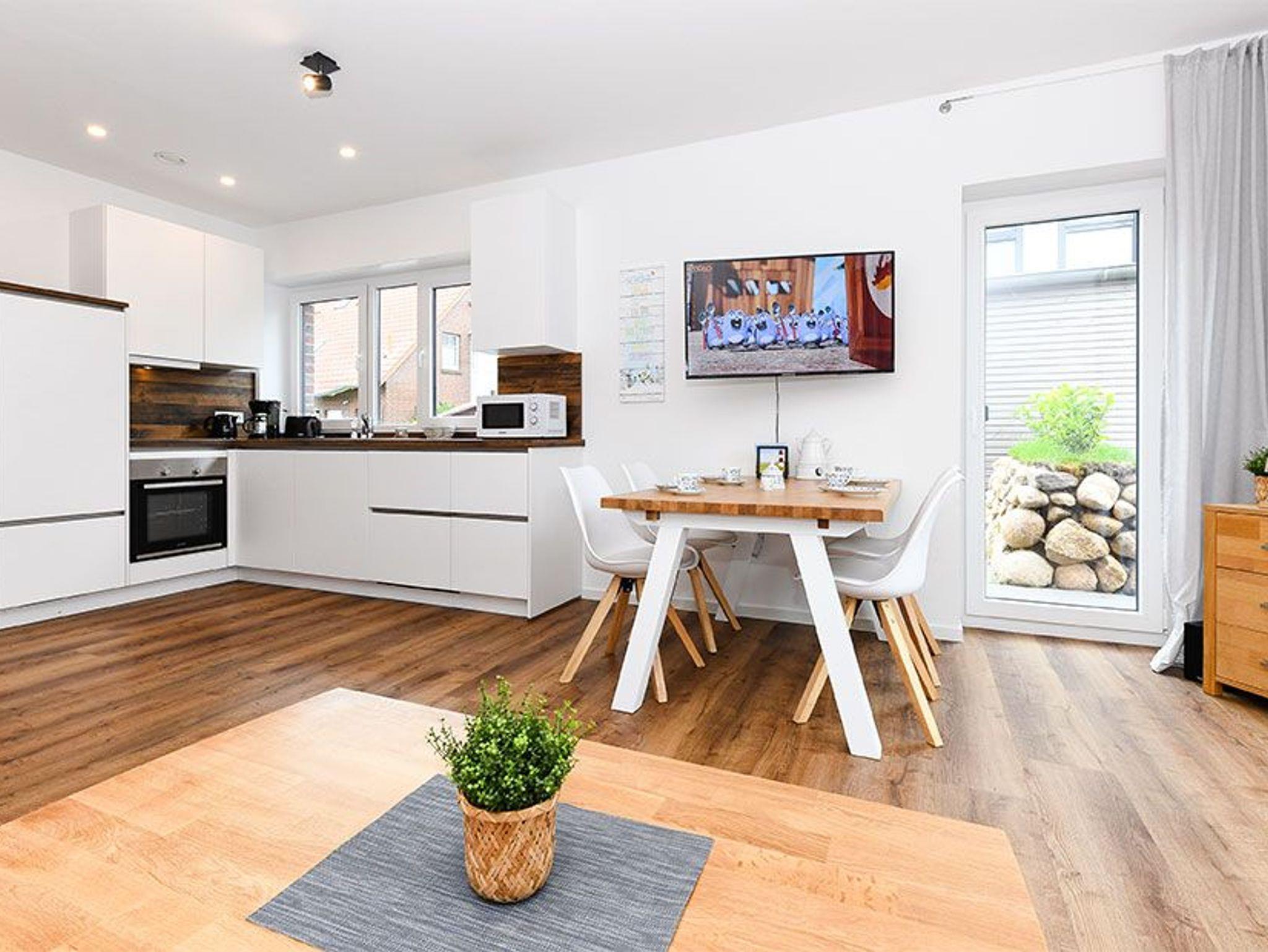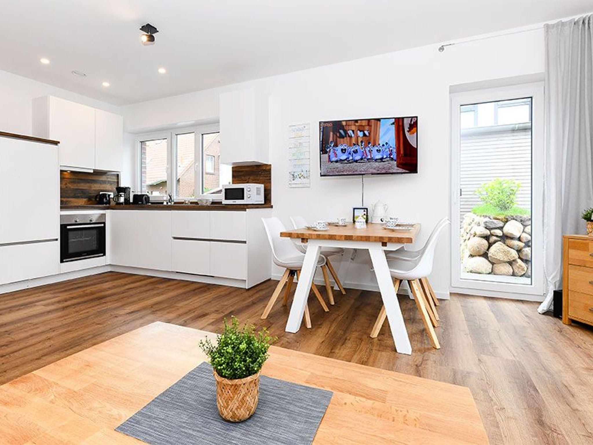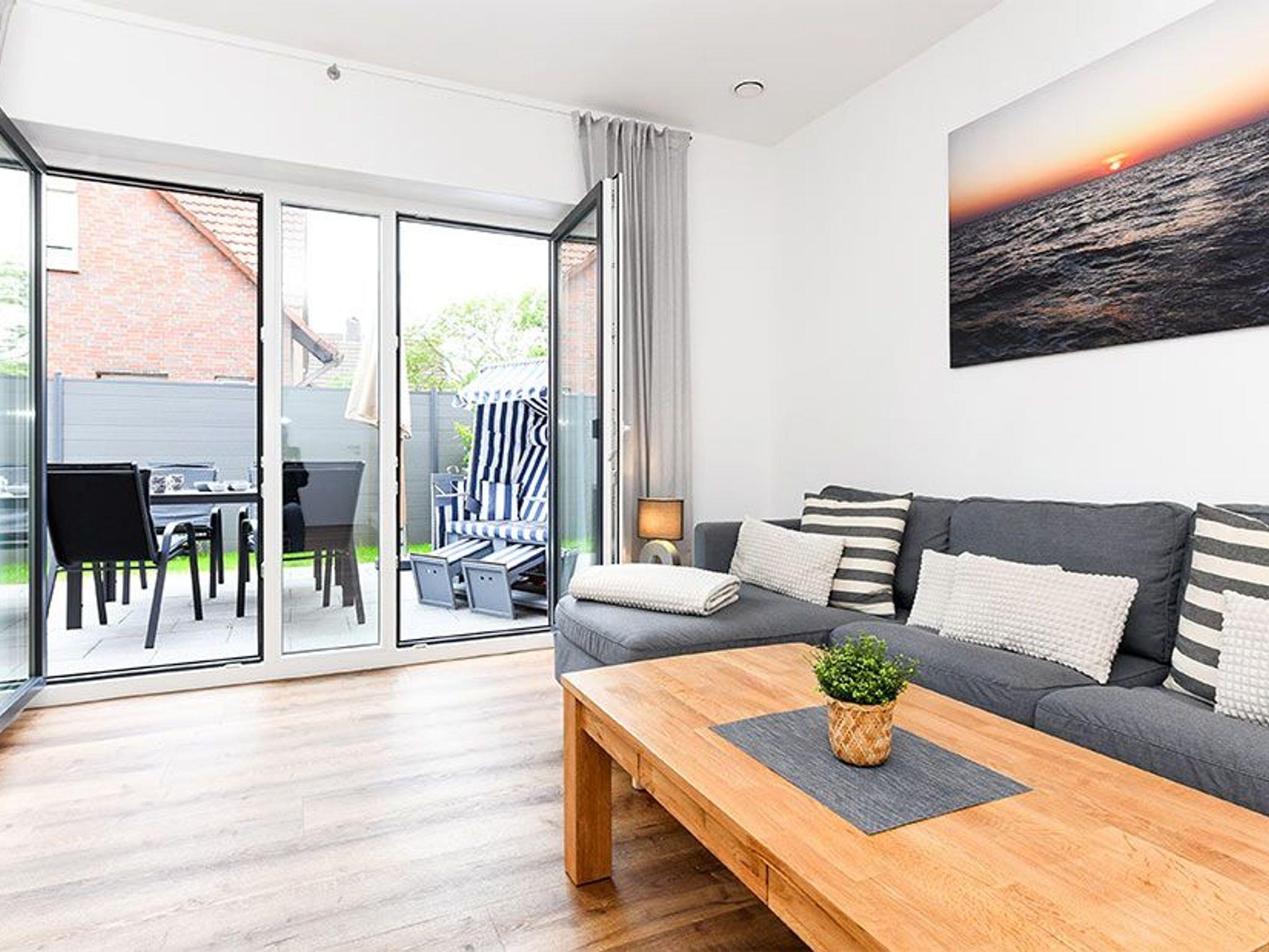 Modernes, gemütliches Ferienhaus Fischerstuuv in Carolinensiel-Harlesiel mit Terrasse und hochwertiger Ausstattung für einen entspannten Nordseeurlaub.