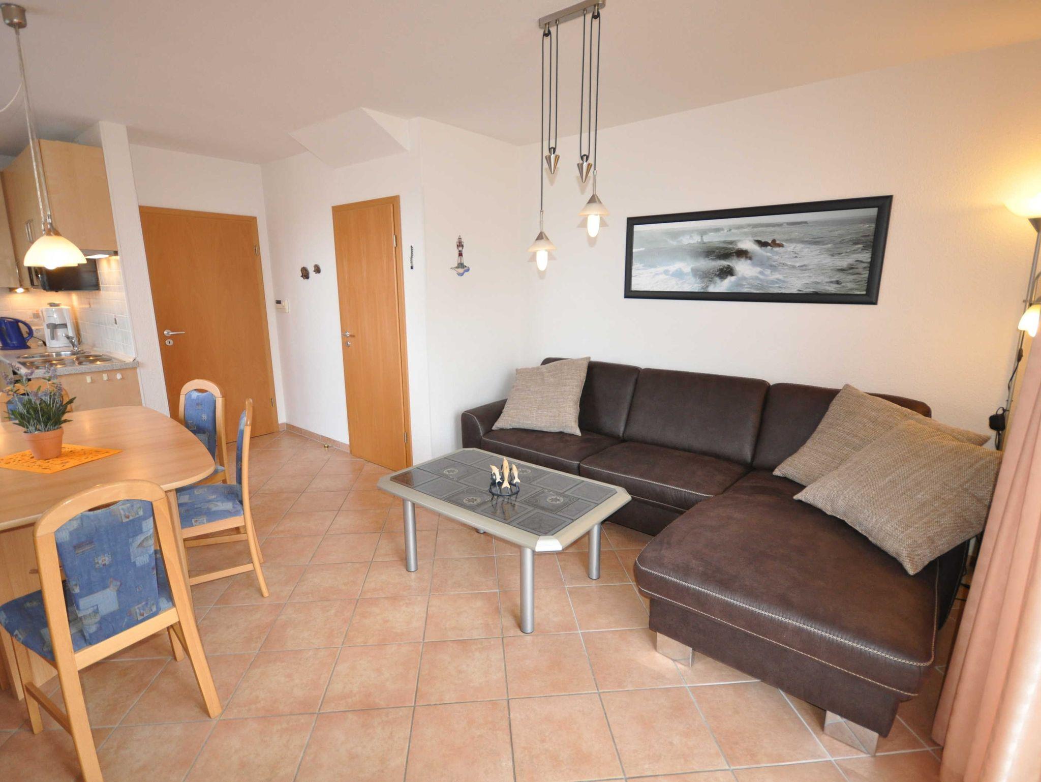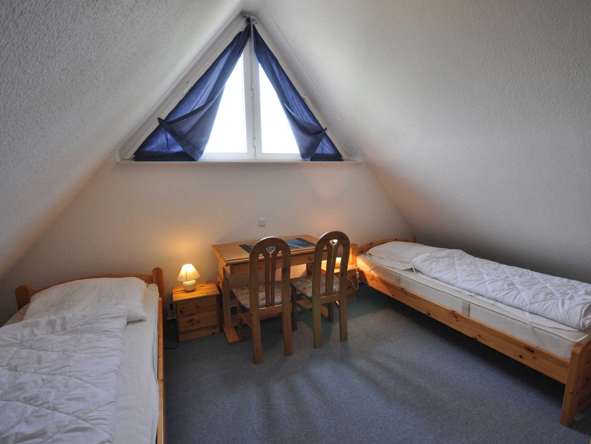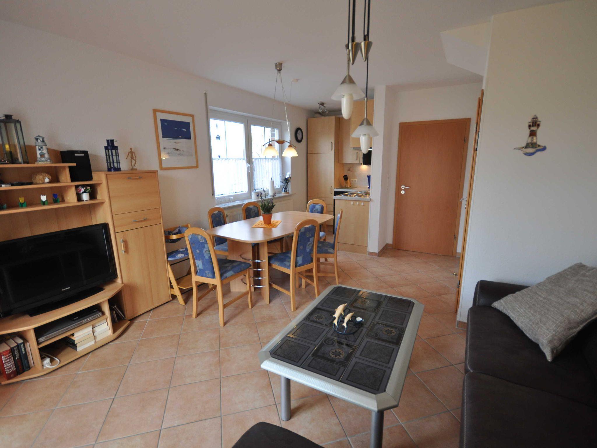Das gemütlich eingerichtete Reihenendhaus bietet Platz für bis zu 6 Personen und ein Baby/Kleinkind. Im Erdgeschoss des Ferienhauses befinden sich ein ansprechender Wohn- und Essbereich mit einer offenen Küche, sowie ein zusätzliches Dusch/WC. Das Obergeschoss verfügt über ein Schlafzimmer mit einem Doppelbett, ein Schlafzimmer mit zwei Einzelbetten und ein 2. Duschbad mit WC. Eine Treppe führt weiter ins ausgebaute offene Dachstudio, welches ebenfalls mit zwei Einzelbetten ausgestattet ist. Im Erd- und Obergeschoss sind Fliesen bzw. Laminat verlegt. An allen Fenstern sind Rollläden installiert.
