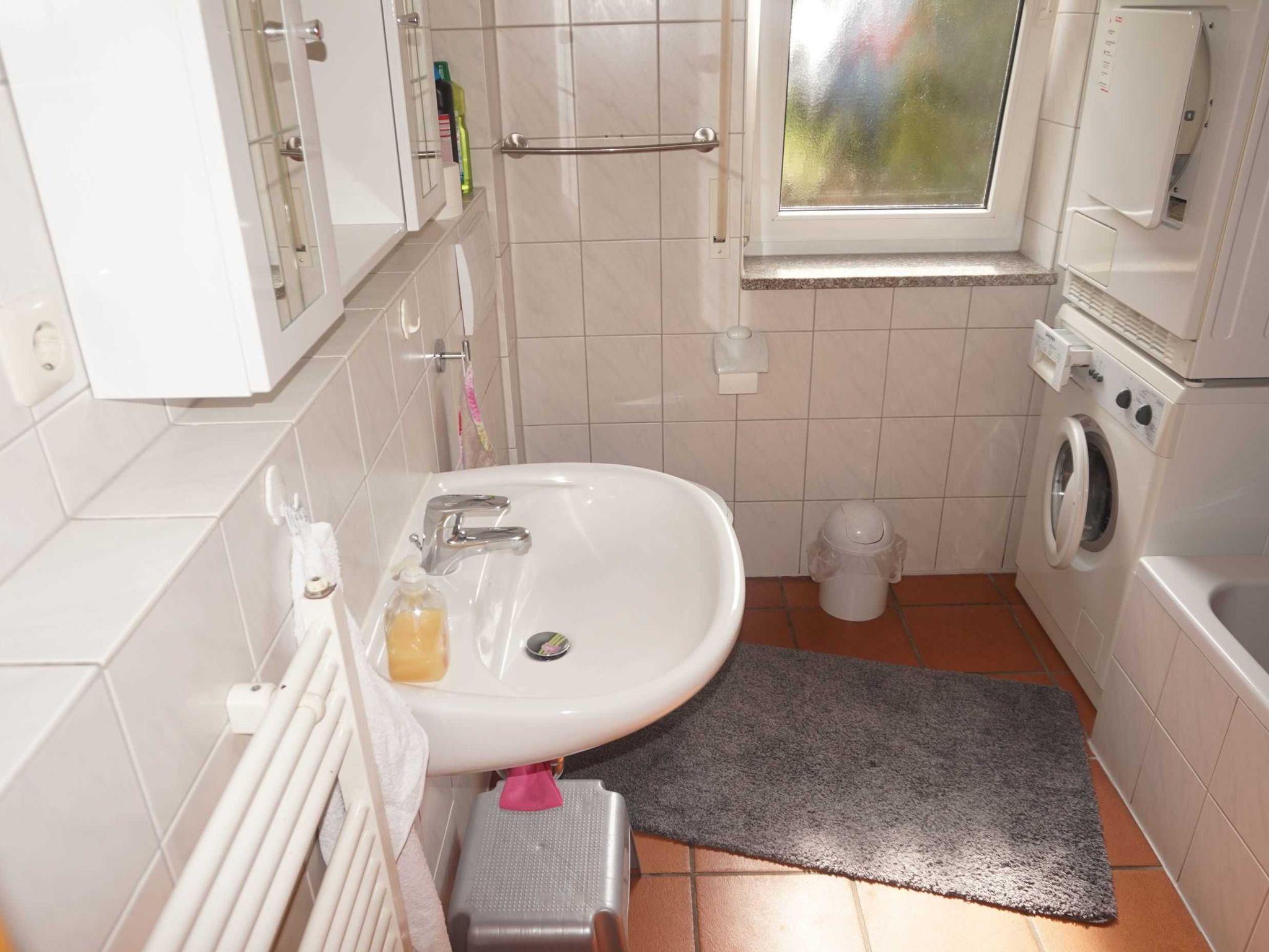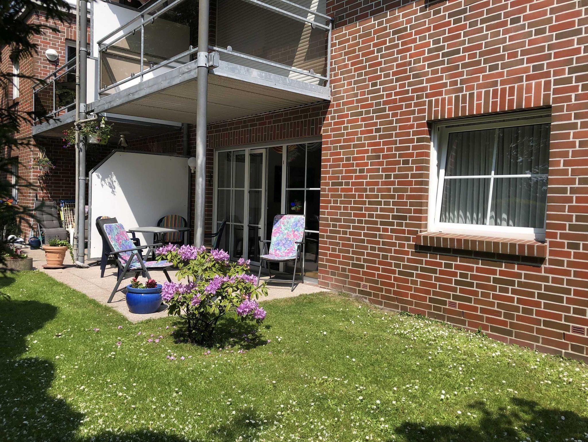Ferienwohnung im Ortskern nahe Museumshafen mit zwei Schlafzimmern mit Doppelbetten, einem großzügigen und hellen Wohn- und Essbereich, separater Einbauküche, Badezimmer mit Badewanne, Waschmaschine und Trockner, überdachter Terrasse in Südlage. 1 Hund erlaubt.