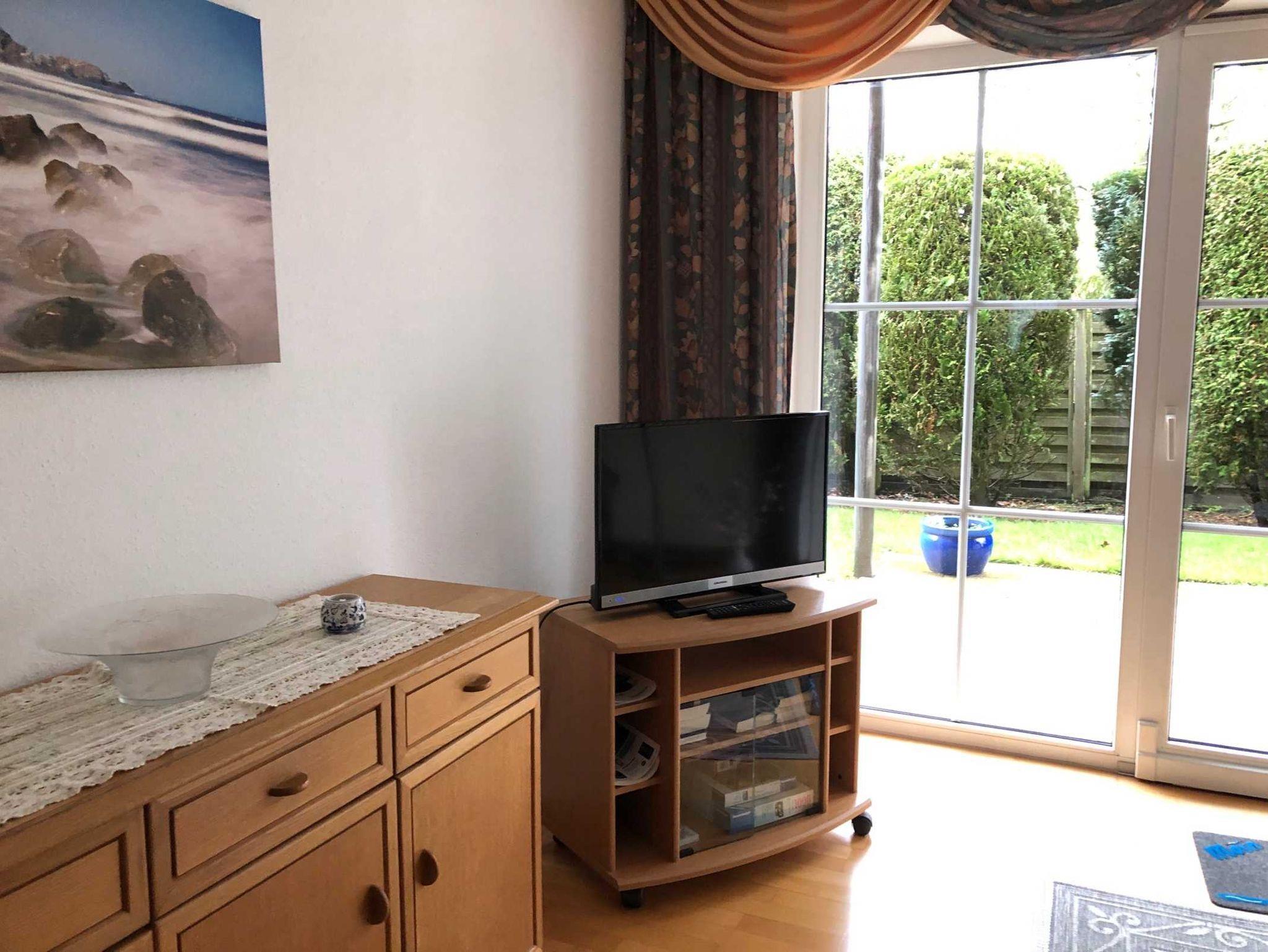 Ferienwohnung im Ortskern nahe Museumshafen mit zwei Schlafzimmern mit Doppelbetten, einem großzügigen und hellen Wohn- und Essbereich, separater Einbauküche, Badezimmer mit Badewanne, Waschmaschine und Trockner, überdachter Terrasse in Südlage. Nur 1 Hund erlaubt.