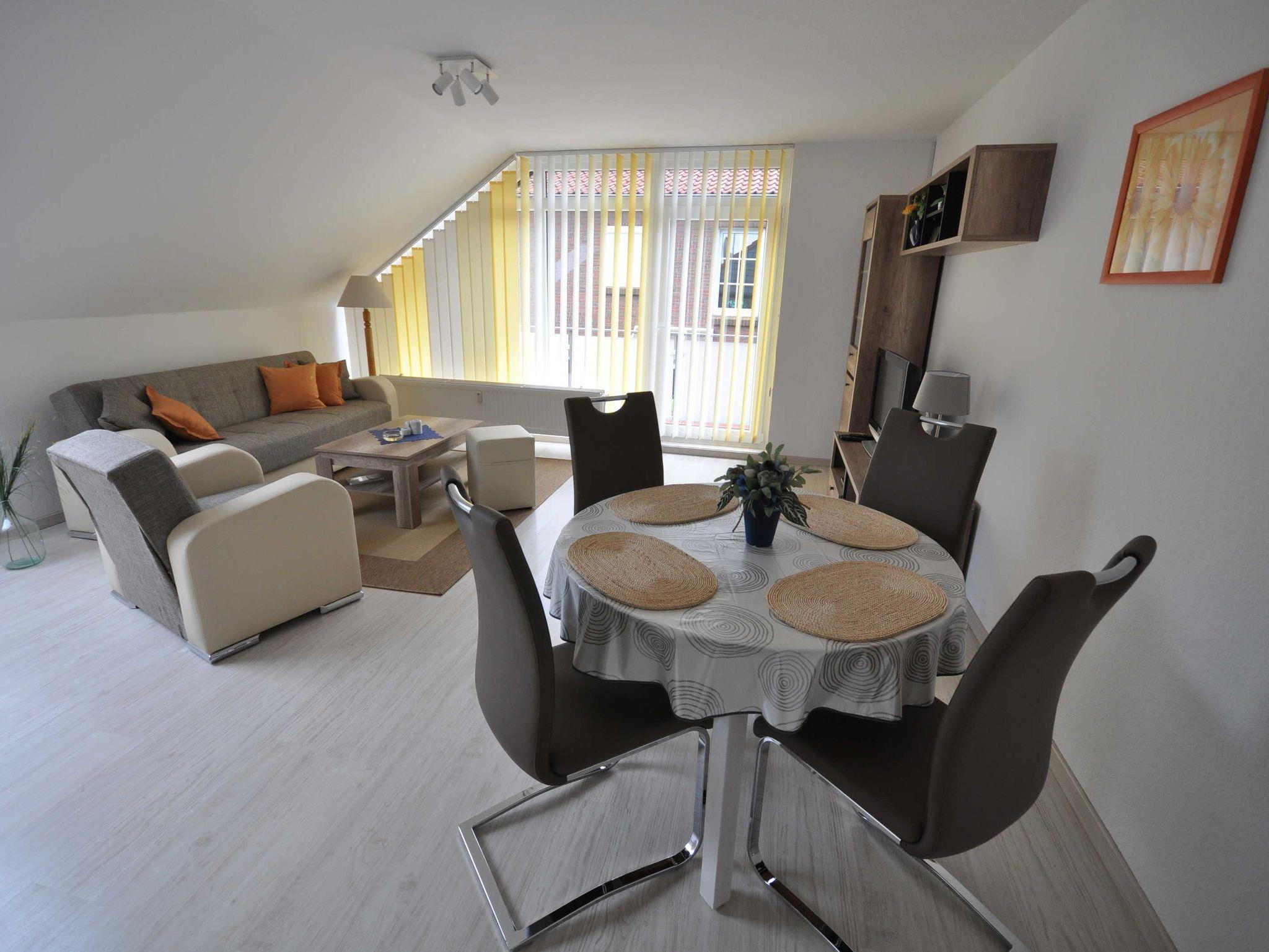 Helle Obergeschosswohnung mit Balkon nahe Strand, Yachthafen und Kurzentrum in Carolinensiel-Harlesiel.