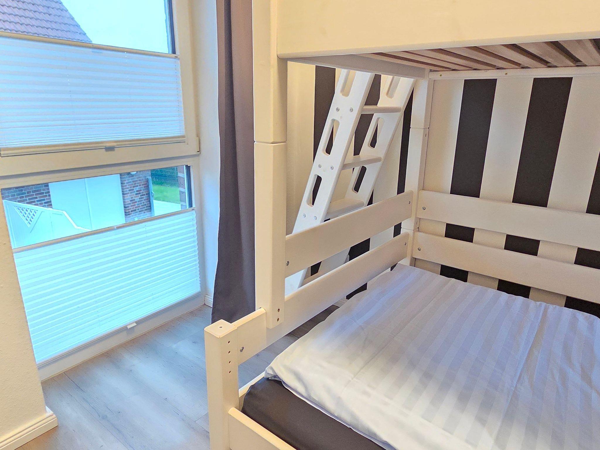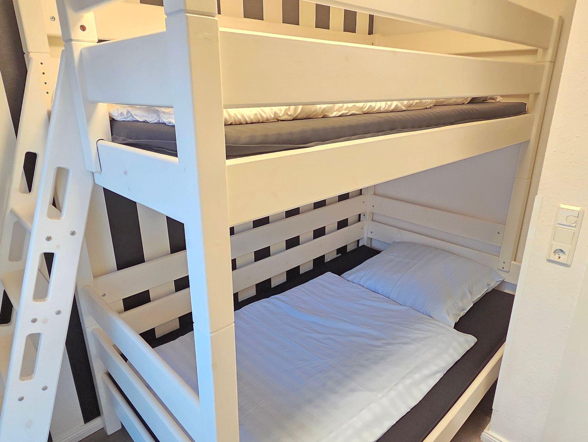 Das Ferienhaus Muschelhus bietet auf ca. 86 m² Platz für bis zu 6 Personen und vereint modernen Komfort mit durchdachter Ausstattung. Zwei gemütliche Boxspringbetten (180 x 200 cm + 160 x 200 cm), ein Etagenbett mit extrabreiter Liegefläche unten (120cm), zwei barrierefreie Bäder mit Regendusche mit WLAN-Badradios sowie eine private Sauna sorgen für pure Erholung.