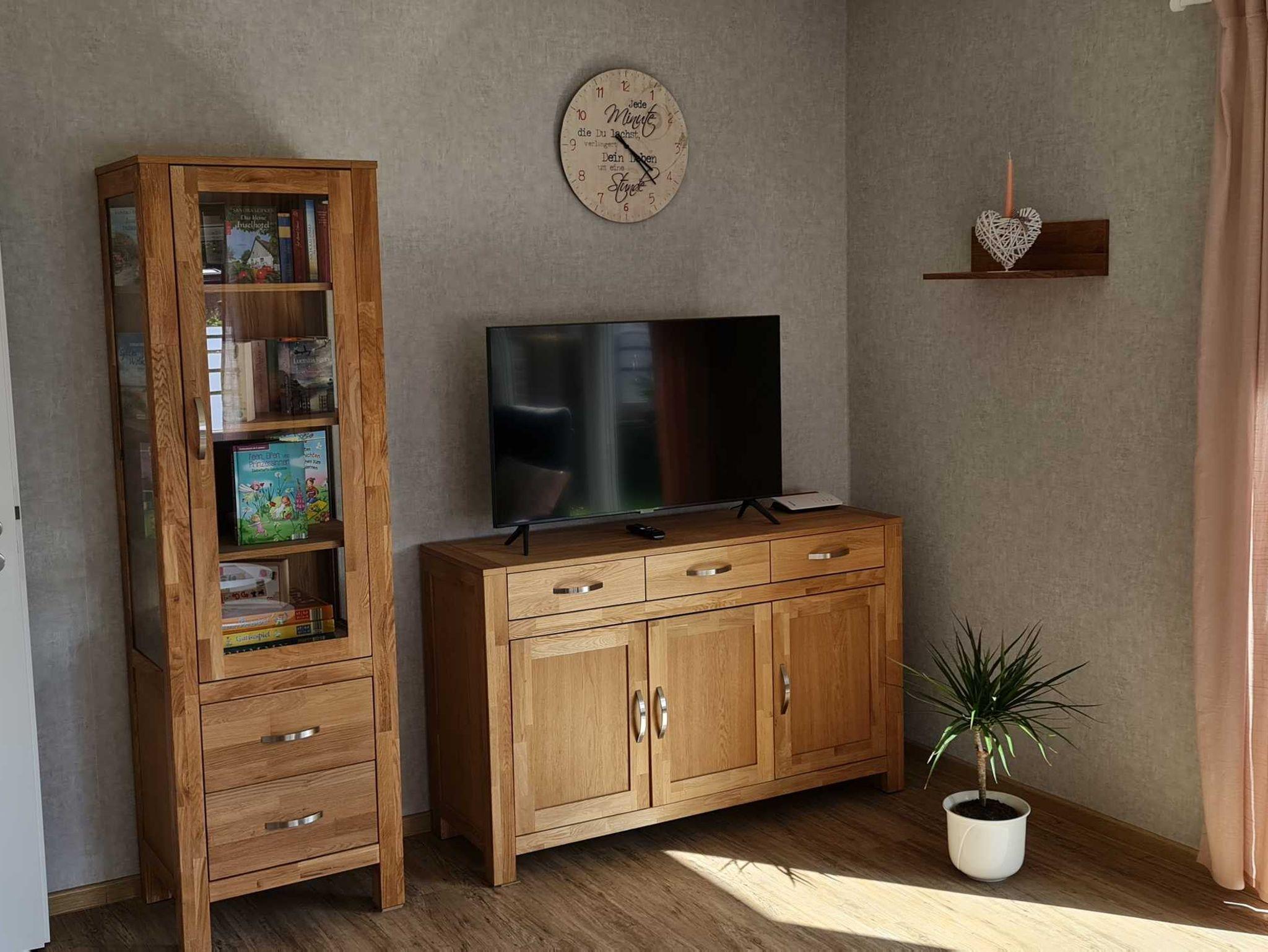 Ausgestattet mit jeweils einem Smart-TV im Wohnzimmer, sowie im Schlafzimmer besitzt die Wohnung eine komplett neue Einrichtung.