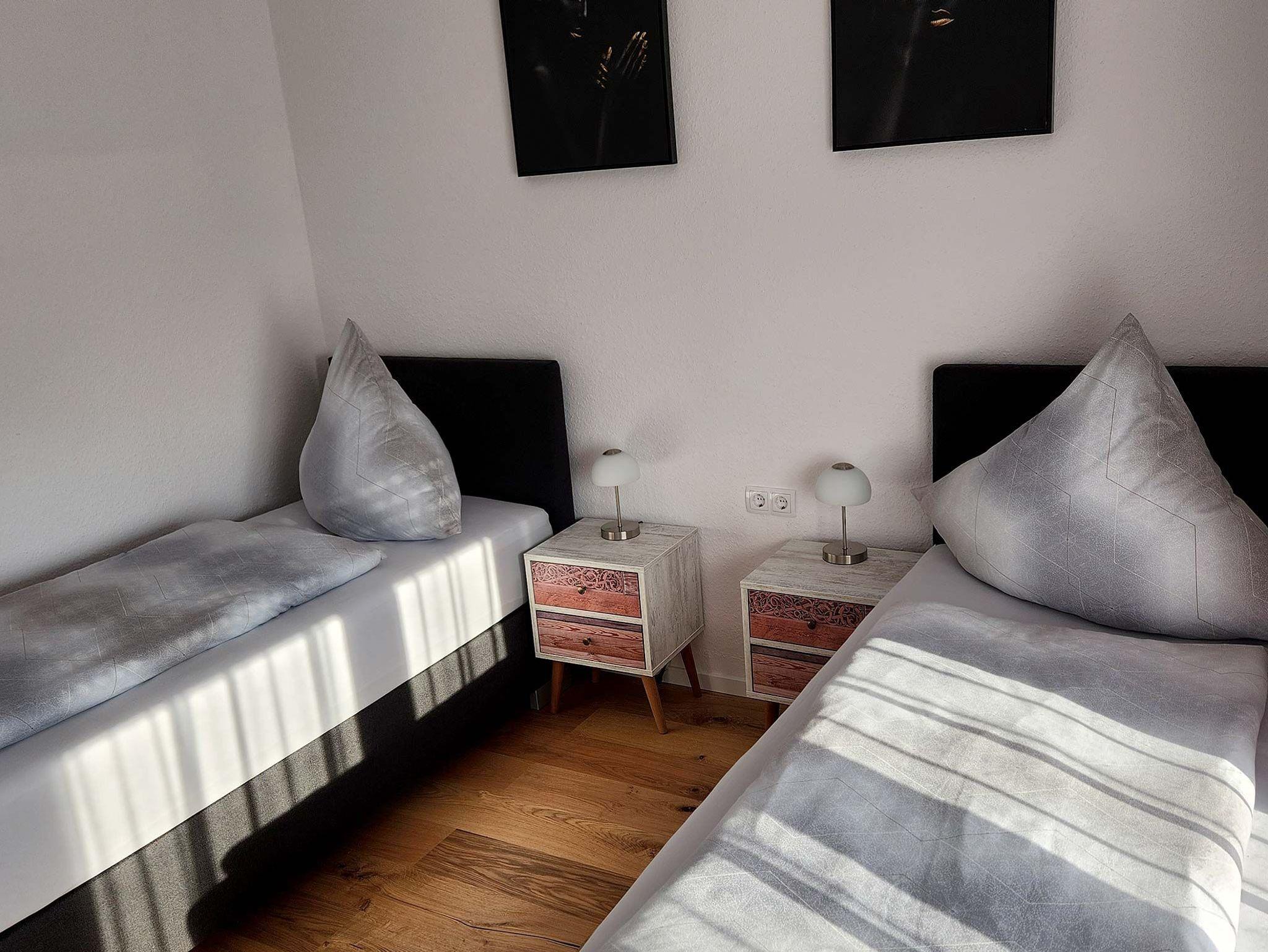 Die Wohnungen bieten jeweils zwei Schlafzimmer mit Doppel- und Einzelbetten (Boxspringbetten) und liegen ganz in der Nähe des Hafen-Zentrums und der historischen Windmühle, einem Wahrzeichen von Carolinensiel.