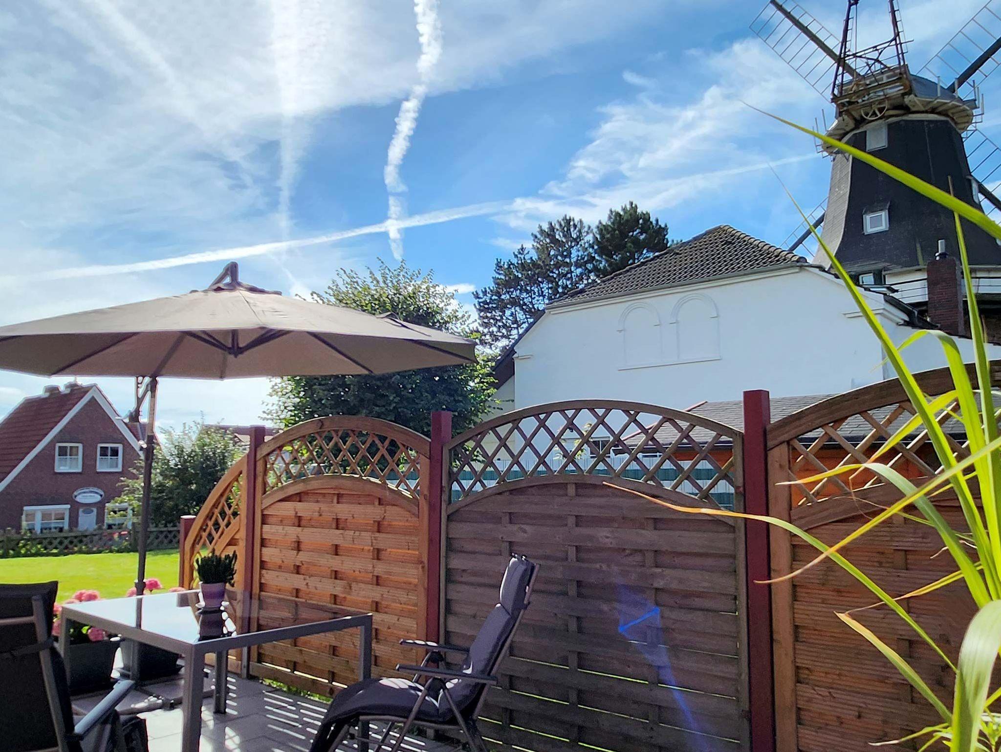 Unsere beiden Ferienwohnungen Deichperle und Wattenwind bieten Platz für 4-6 Personen und liegen in der Nähe des Hafen-Zentrums und der historischen Windmühle von Carolinensiel.