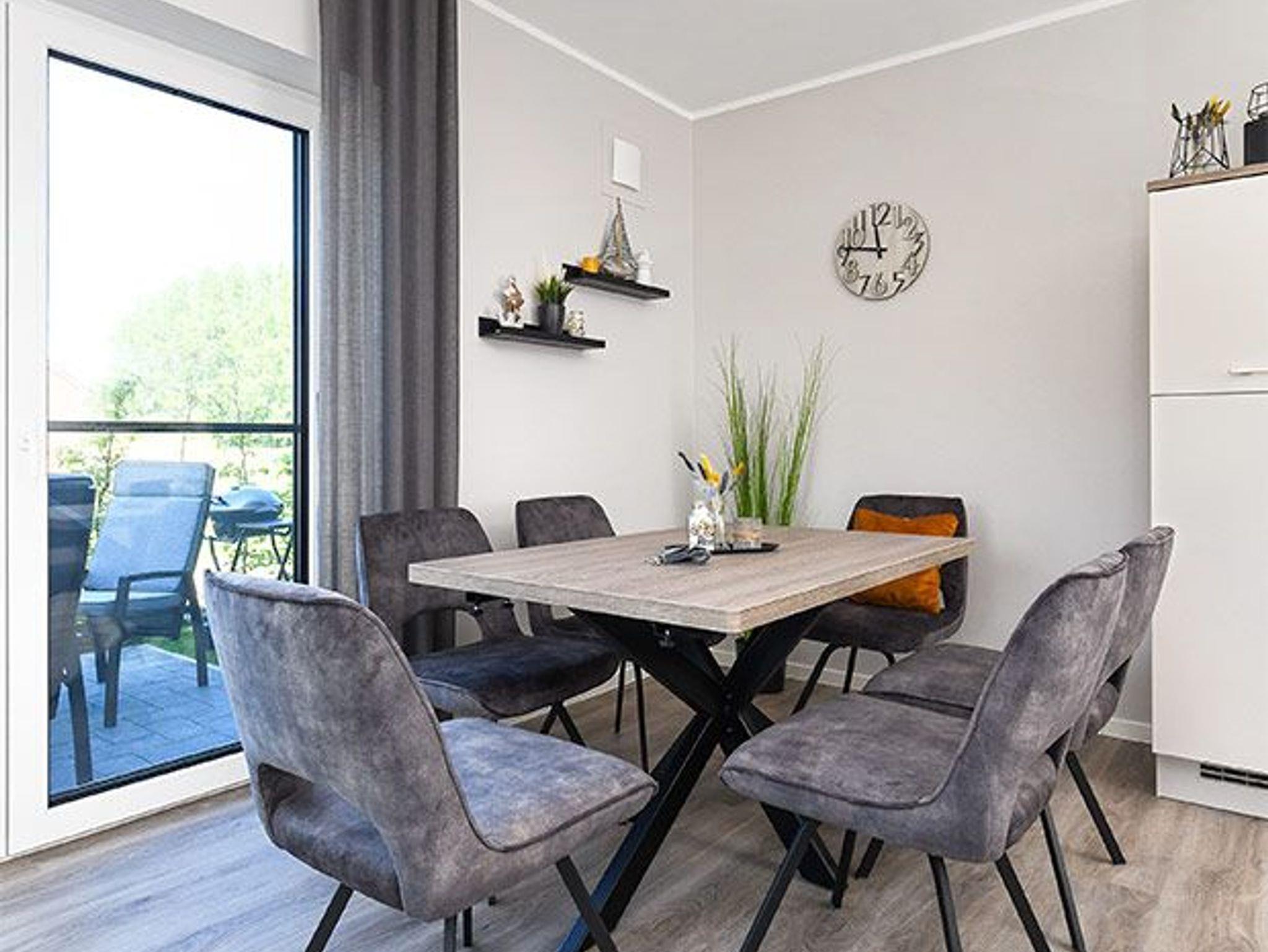 Größe ca. 85 Quadratmeter, Wohnzimmer mit integrierter Küche, Schlafzimmer, zweites separates Schlafzimmer/Kinderzimmer, drittes separates Schlafzimmer, Badezimmer mit Doppel-Waschbecken, Dusche und WC, separates zweites WC mit Waschtisch, Erdgeschoss, Terrasse, Koffer-/Abstellraum, optimal für 2 bis 6 Personen.