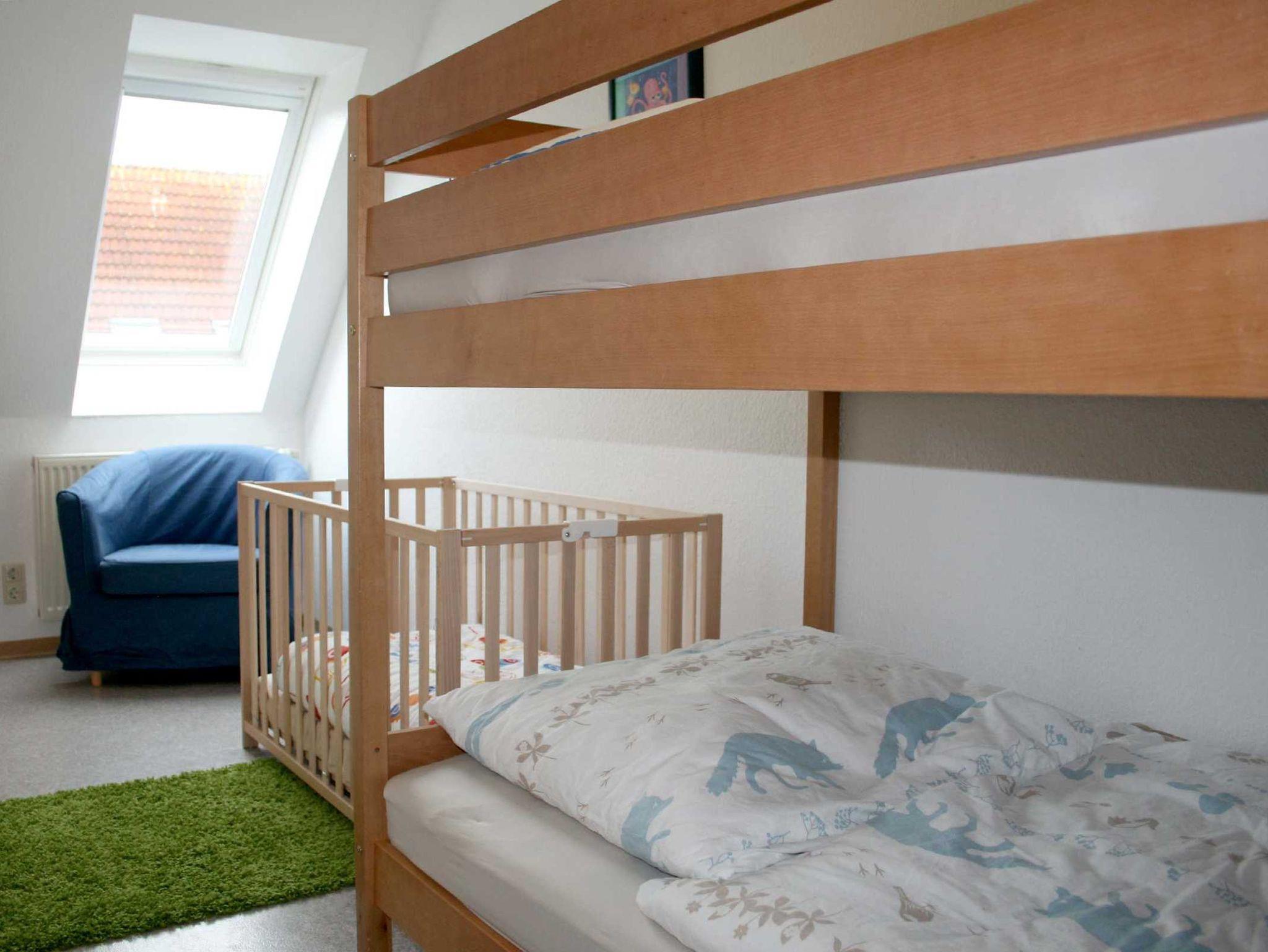 OG: 3 sep. Schlafräume: 2x mit Doppelbett, 1x mit Etagenbett, Kinderreisebett, zusätzliches Bettgitter; Bad mit Du/WC, Badewanne und Fön.