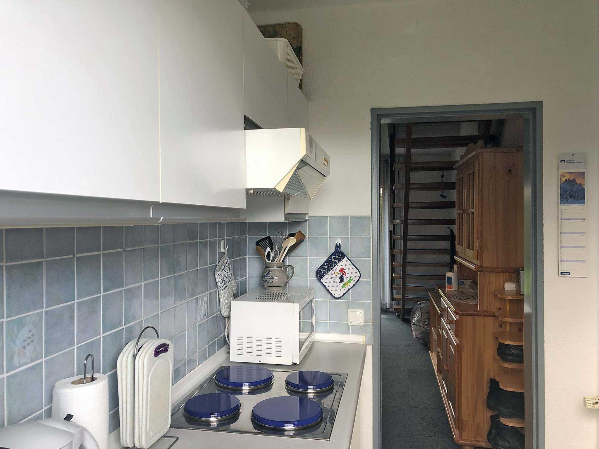 Separate Küche mit Kaffeemaschine, zusätzlichem Kapselautomat, Mikrowelle und allen Annehmlichkeiten.