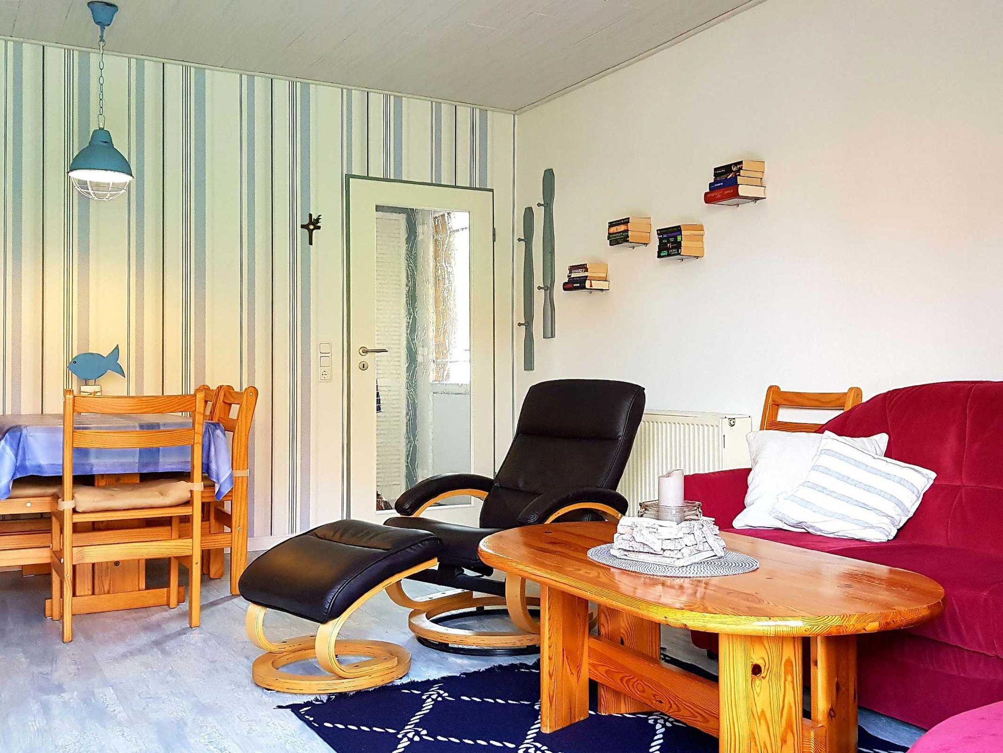 Wohn-/Essbereich mit SAT-TV, Stereoanlage, kostenfreiem Gäste-WLAN, Büchern, Brettspielen und reichlich Infomaterial zu Unternehmungen entlang der Nordseeküste.