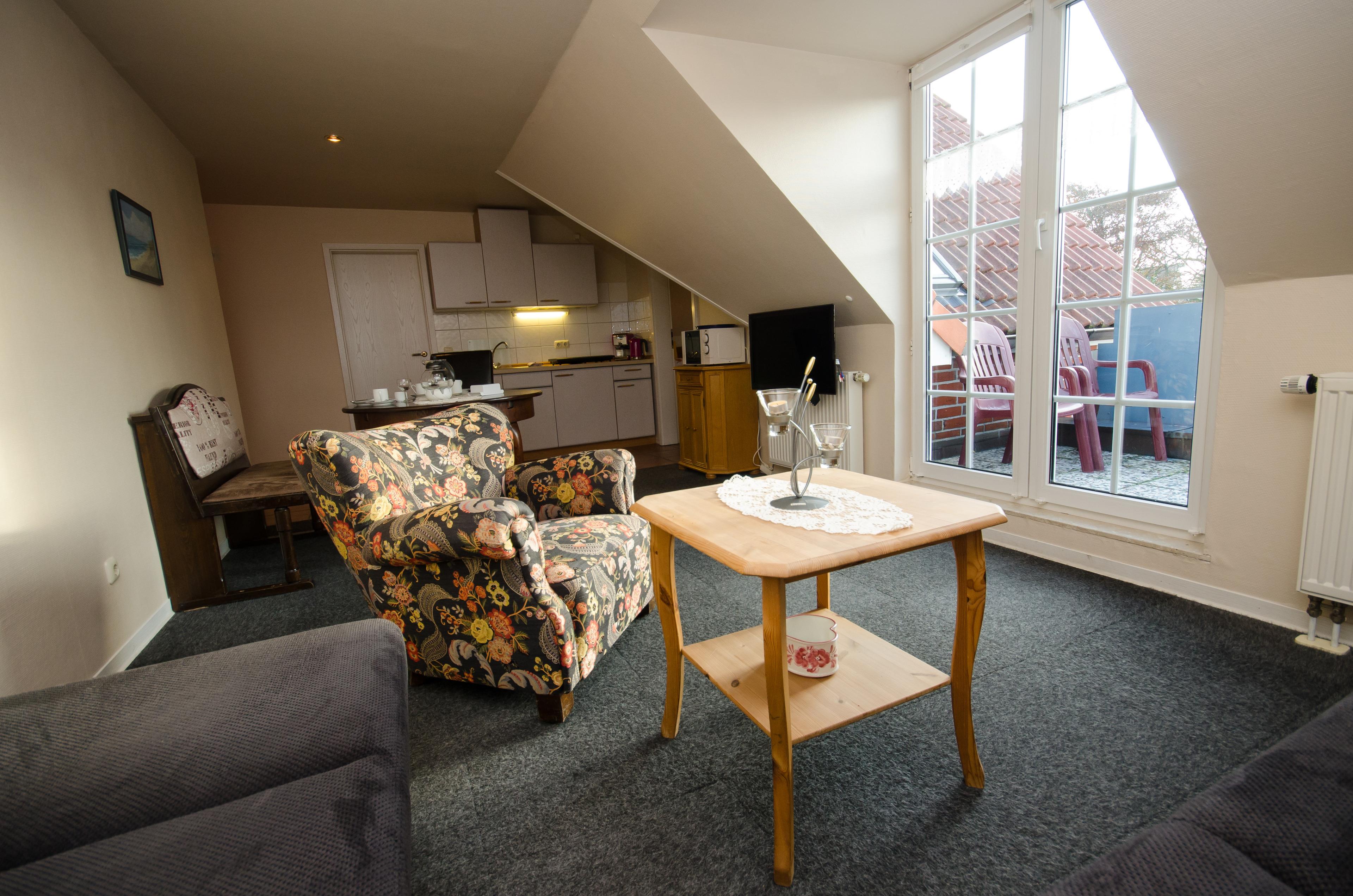 Unser Haus besitz 10 Wohnungen im Haupthaus sowie 2 Wohnungen im Nebenhaus und liegt direkt an der Harle! Die Wohnungen befinden sich sowohl im Erdgeschoss ( davon eine Rollstuhlgerecht, eine Gehbhindertengerecht), sowie in der 1 oder 2 Etage. Die Wohnungen im Haupthaus (1 u. 2 Etage) besitzen 2 Balkone (Ost + West) einmal mit Blick auf die Harle und den etwa 200 m entfernten Museumshafen im Ortskern, den anderen über Wiesen und Felder und unserer schönen maritimen Innenhof. Eine Wohnung im Nebenhaus besitzt einen Südbalkon. Alle anderen Wohnungen haben entweder eine Terasse oder Sitzgelegenheit (Strandkorb, Bänke Tische) in unserer Lohne.